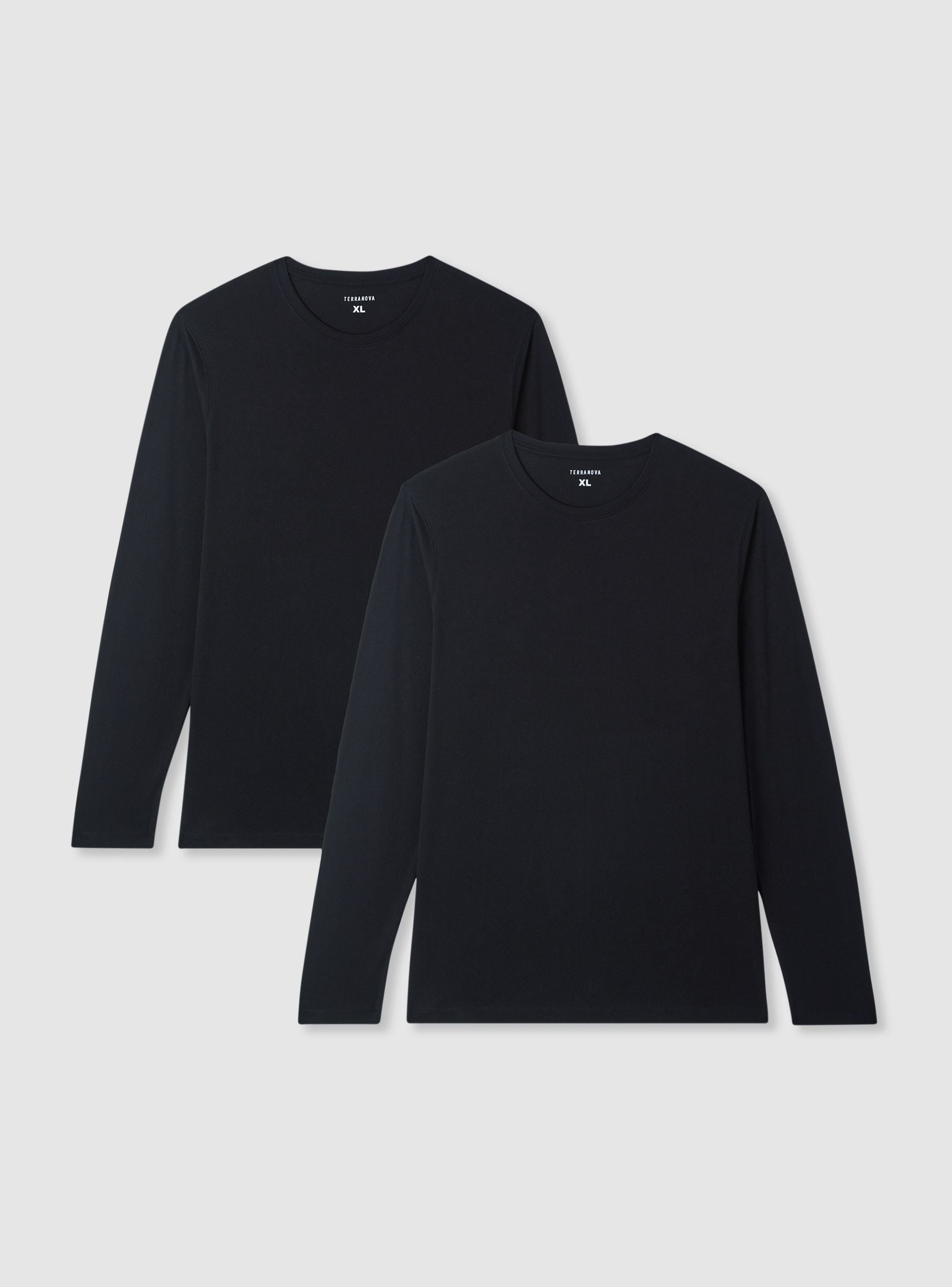 Conjunto compuesto por dos camisetas de hombre, ambas caracterizadas por un diseño de cuello redondo con mangas largas. Realizadas en suave tejido de jersey de algodón de un solo color, estas camisetas ofrecen un ajuste cómodo y transpirable, ideal para ser usadas en cualquier temporada. Perfectas para un look casual y versátil, estas camisetas se pueden llevar solas o como capa base debajo de una chaqueta o un suéter. Ideales para días de relax, actividades al aire libre o encuentros informales, se combinan fácilmente con jeans, pantalones chinos o pantalones deportivos, ofreciendo un estilo sencillo pero cuidado.Detalles