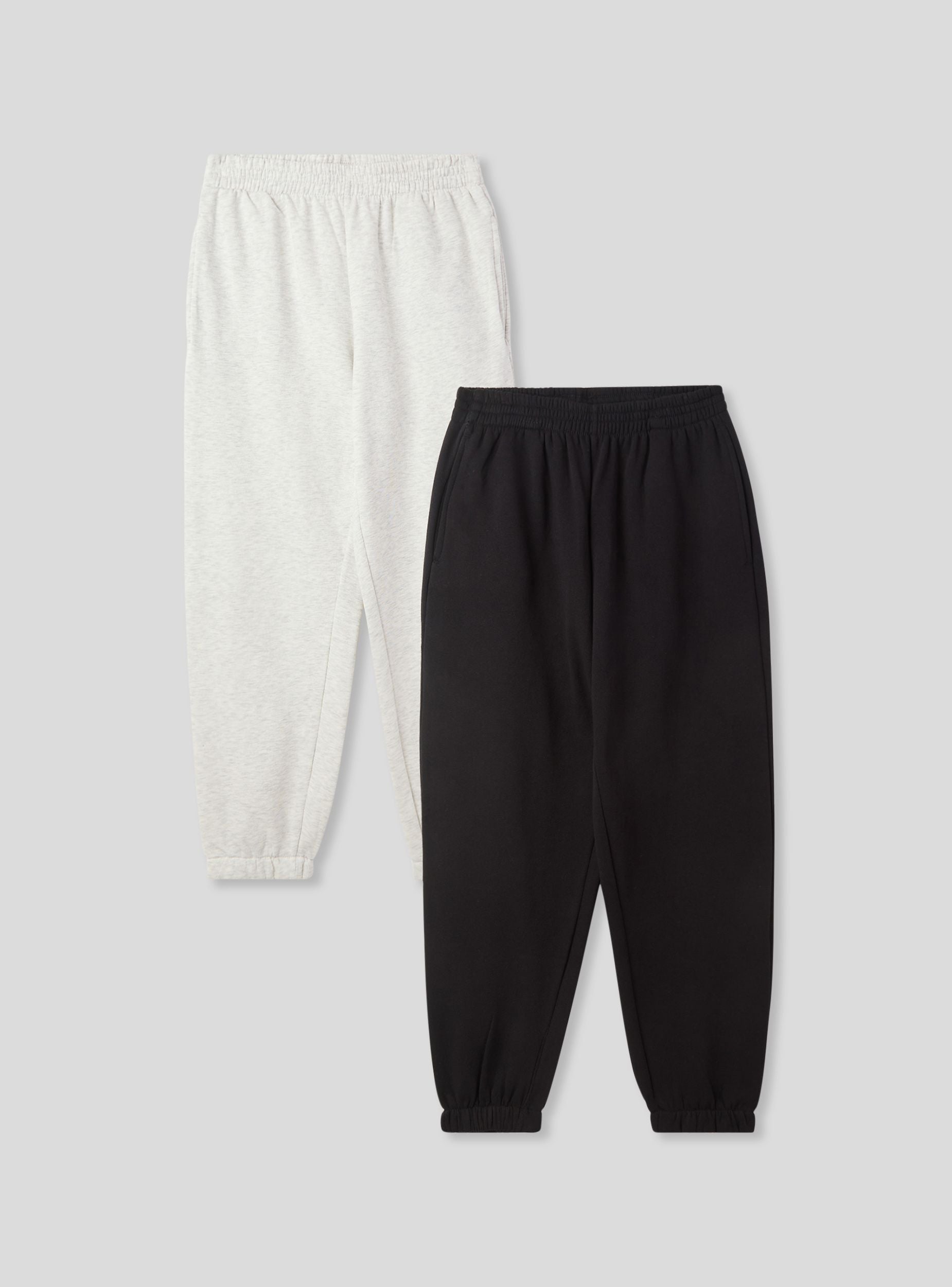 Pack compuesto por dos pantalones de chándal de mujer de cintura alta en tejido pesado de un solo color, con bolsillos laterales. Tienen un ajuste cómodo con elástico en la cintura y en los tobillos, garantizando el máximo confort durante su uso. El color sólido hace que estos pantalones sean versátiles y fáciles de combinar con diferentes outfits. Ideales para actividades deportivas, días casuales o momentos de relax en casa, estos pantalones de chándal son perfectos para mantener un estilo cómodo y a la moda en cualquier ocasión.