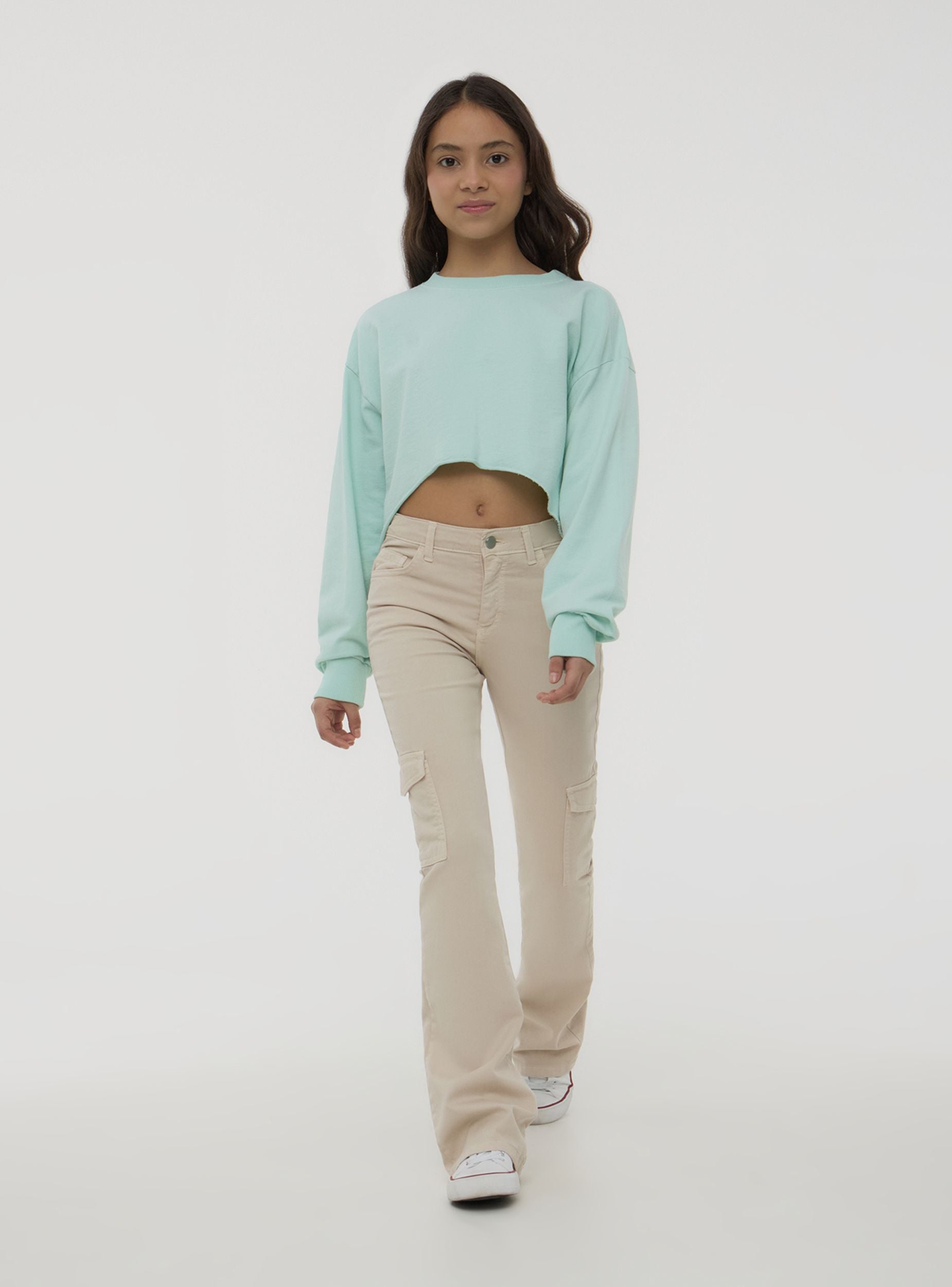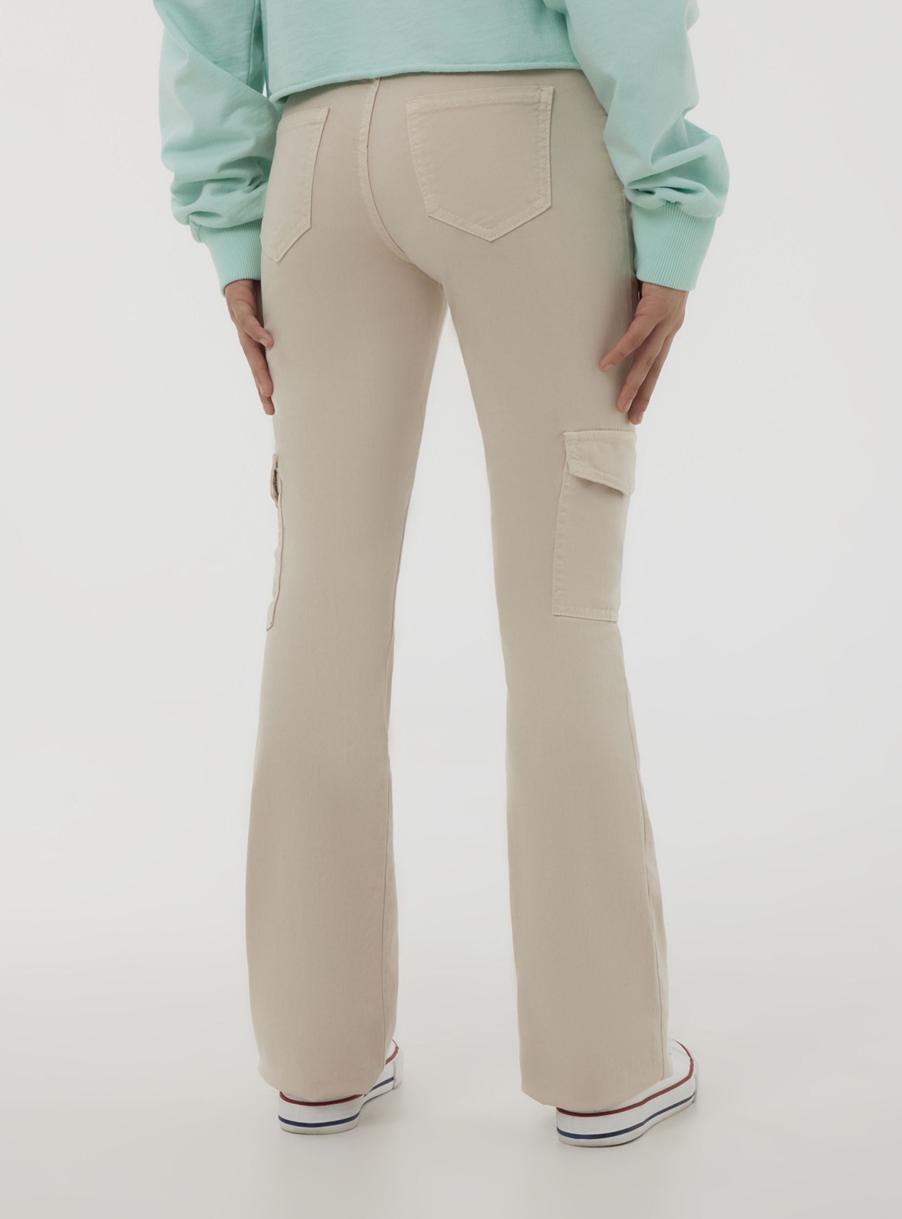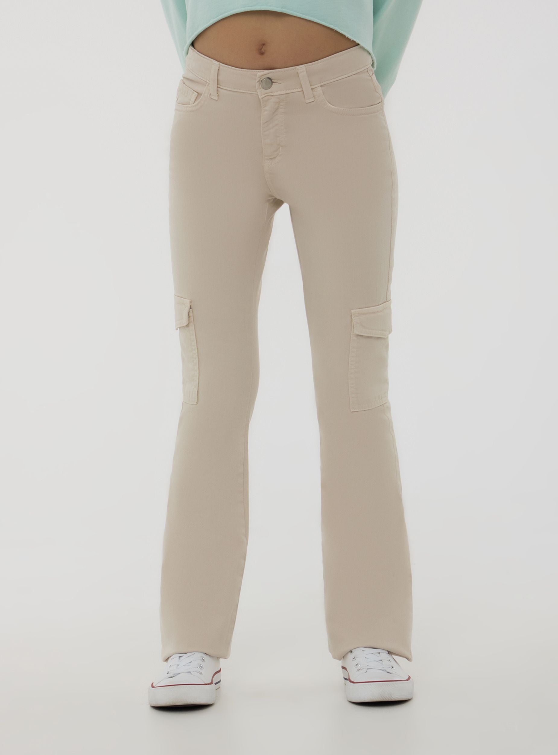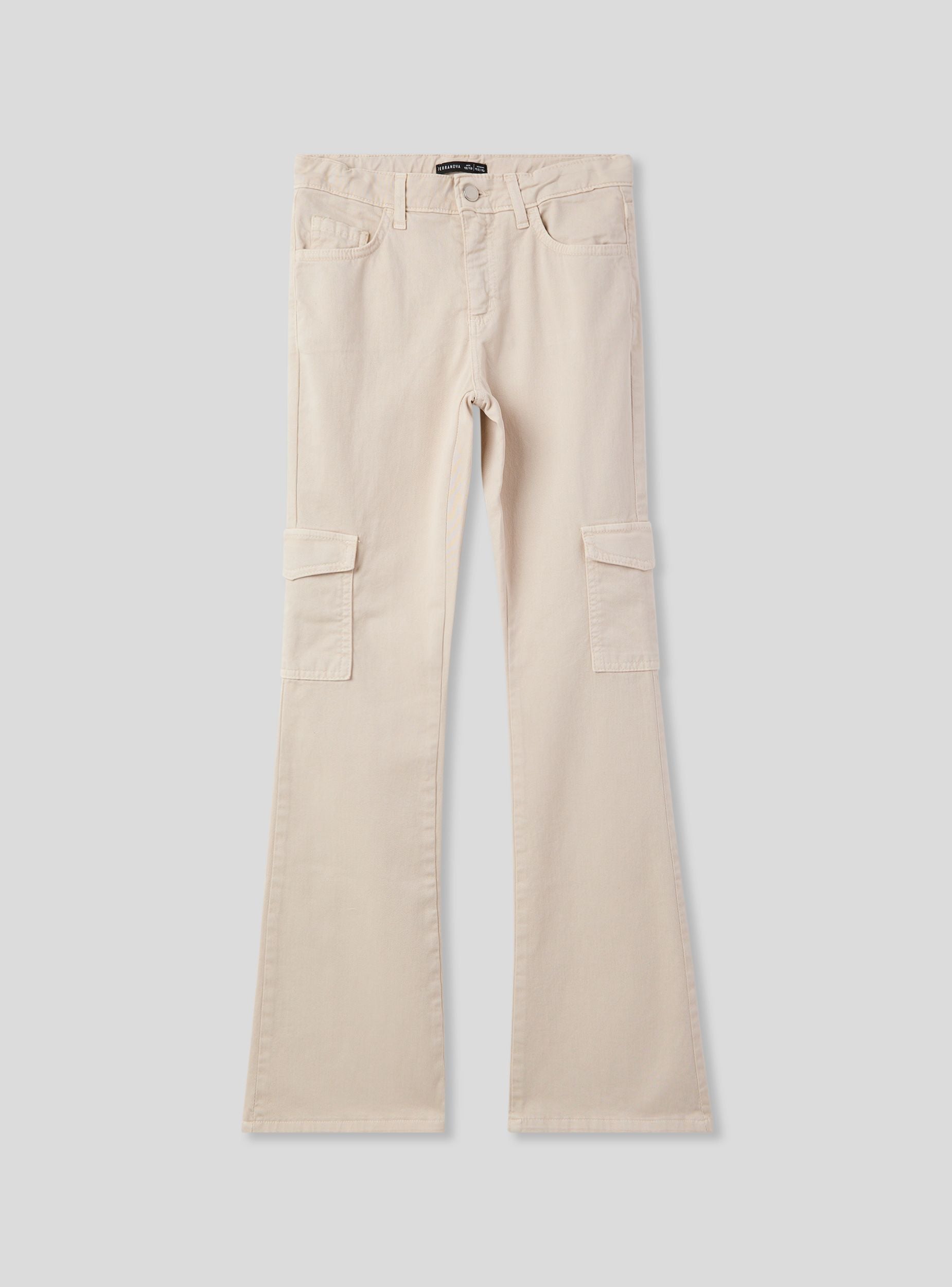 Pantalones de niña con un estilo trendy y versátil, perfectos para quienes aman un look casual pero original. El modelo de campana aporta un toque retro muy de moda, mientras que el diseño cargo con bolsillos añade practicidad y carácter. El color sólido los hace fáciles de combinar con camisetas y sudaderas para un atuendo dinámico. Con trabillas en la cintura y cierre con botón, son ideales para el tiempo libre y ocasiones informales.Detalles