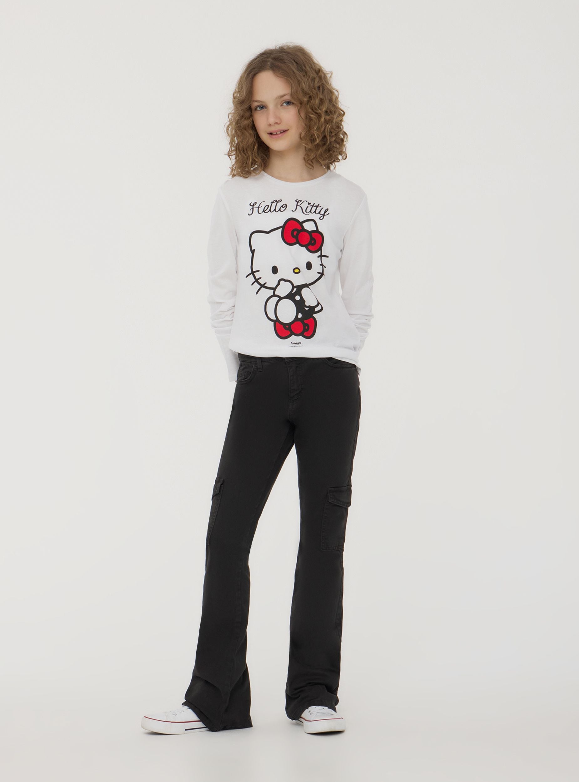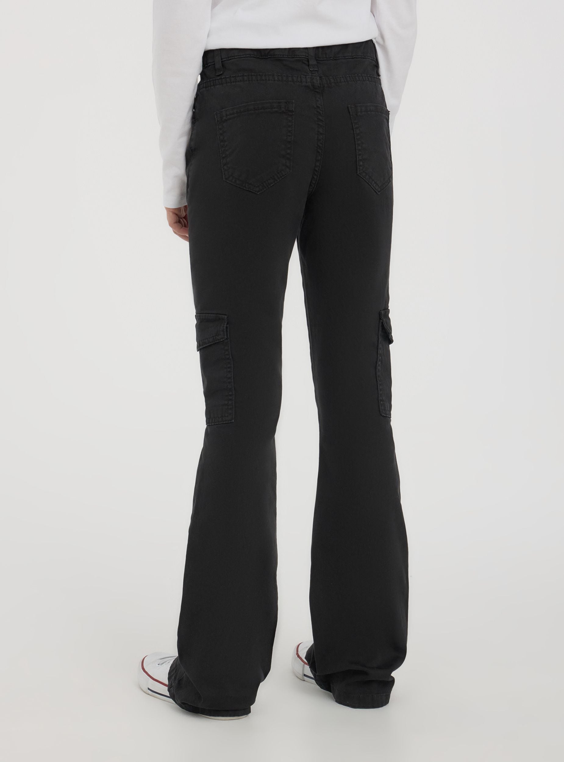 Pantalones de niña con un estilo trendy y versátil, perfectos para quienes aman un look casual pero original. El modelo acampanado aporta un toque retro muy de moda, mientras que el diseño cargo con bolsillos añade practicidad y carácter. El color sólido los hace fáciles de combinar con camisetas y sudaderas para un atuendo dinámico. Equipados con trabillas en la cintura y cierre con botón, son ideales para el tiempo libre y las ocasiones informales.Detalles