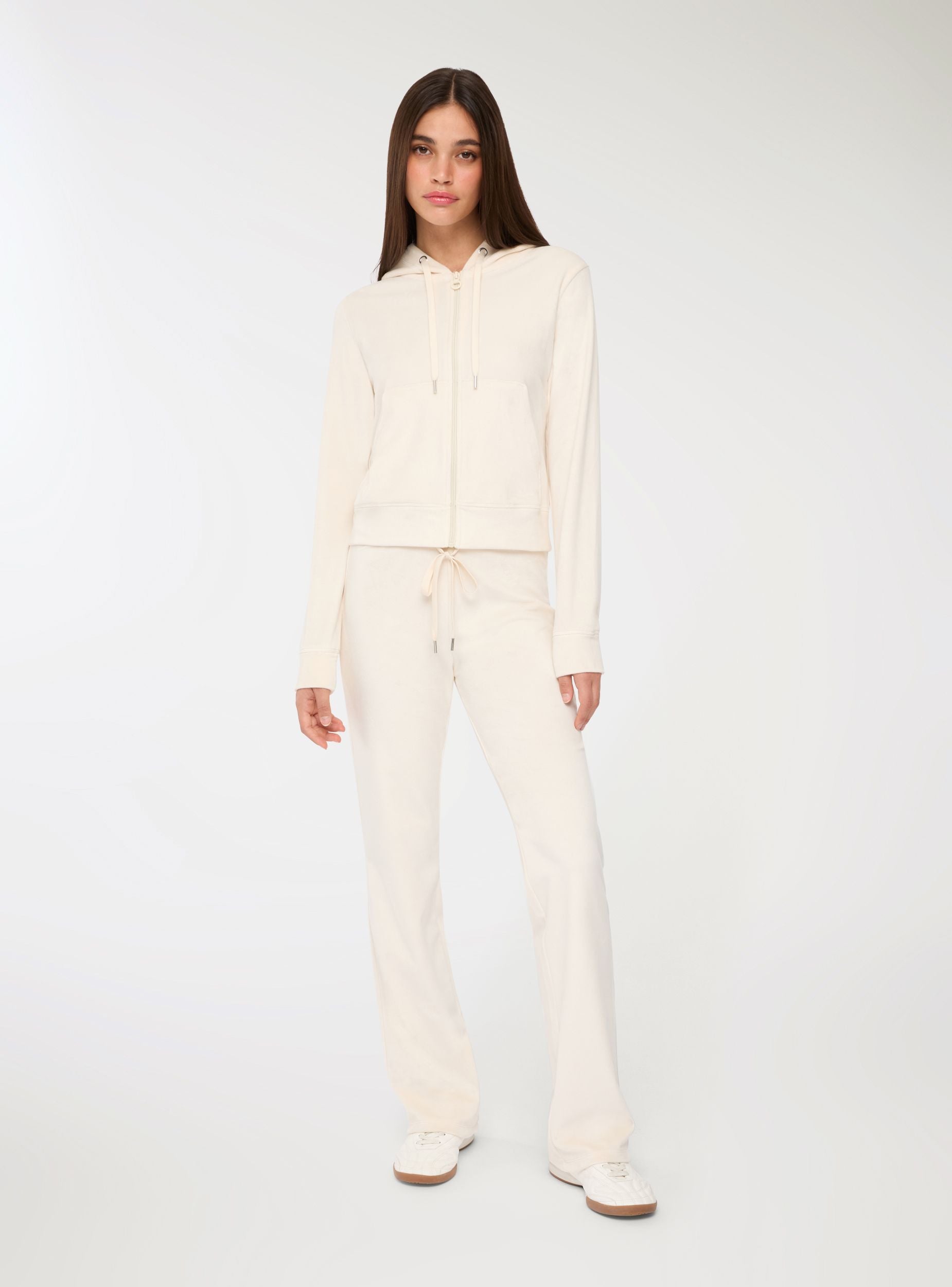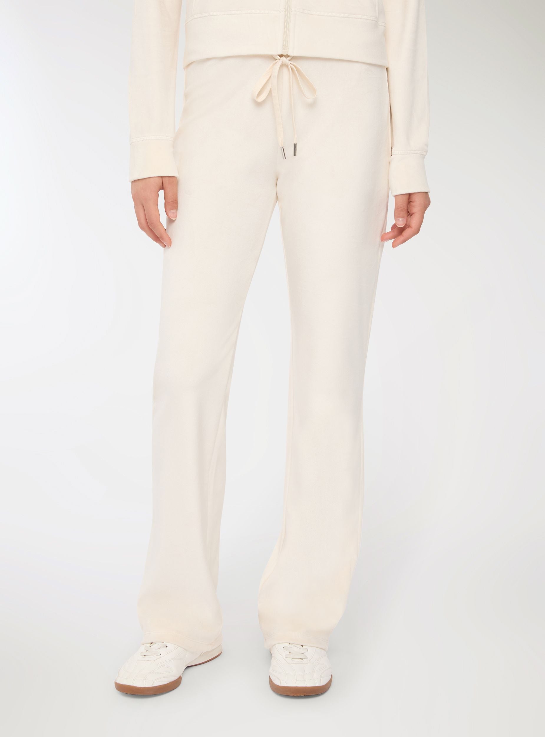 Pantalones de chándal de mujer en chenilla con ajuste acampanado y diseño liso. Ideales para un look casual y cómodo, son perfectos para el tiempo libre o actividades relajantes. Cuentan con cierre de cordón para un ajuste personalizado y están hechos de un tejido suave que garantiza comodidad. Se combinan fácilmente con camisetas y zapatillas para un conjunto moderno y práctico.Detalles