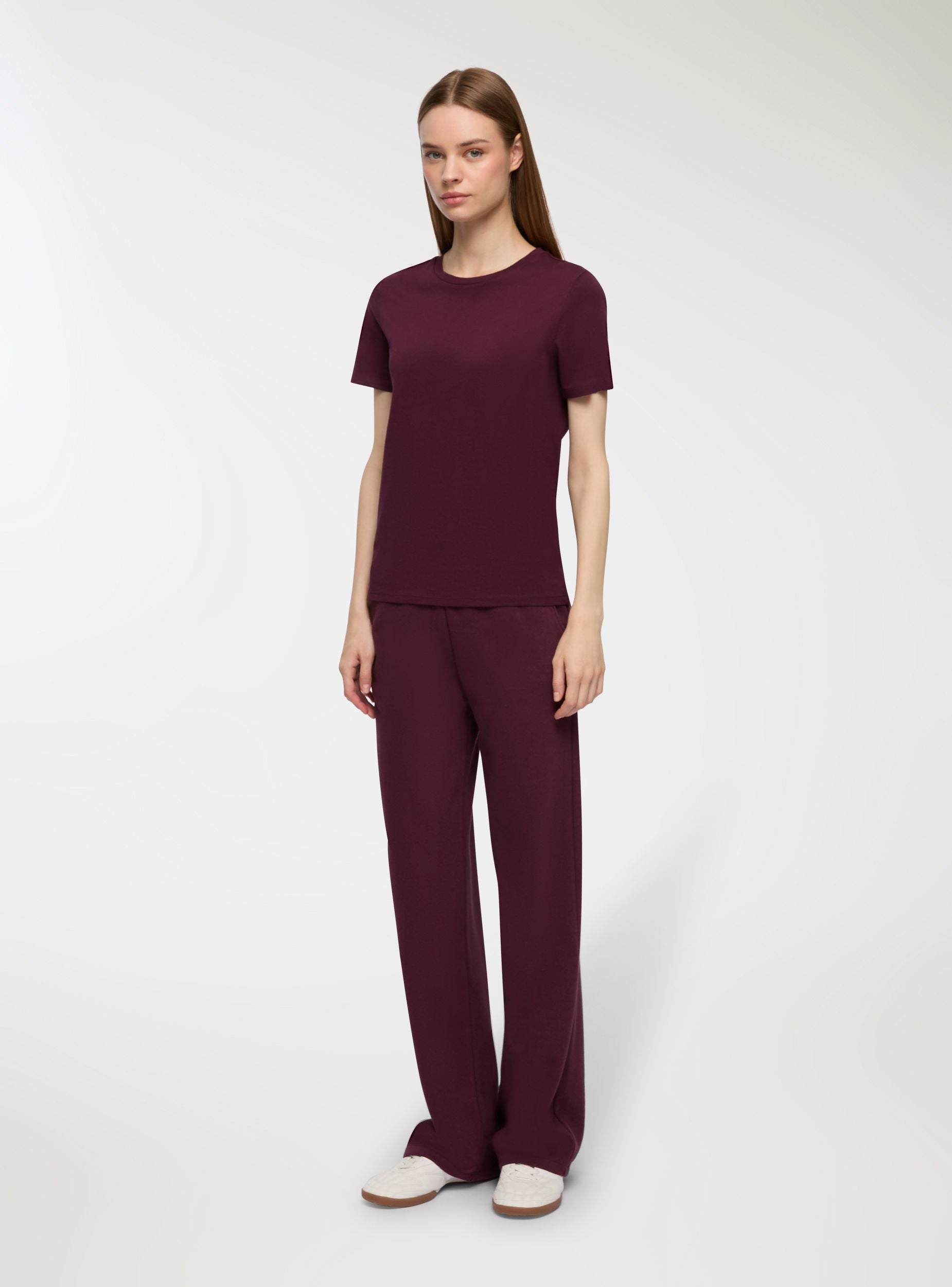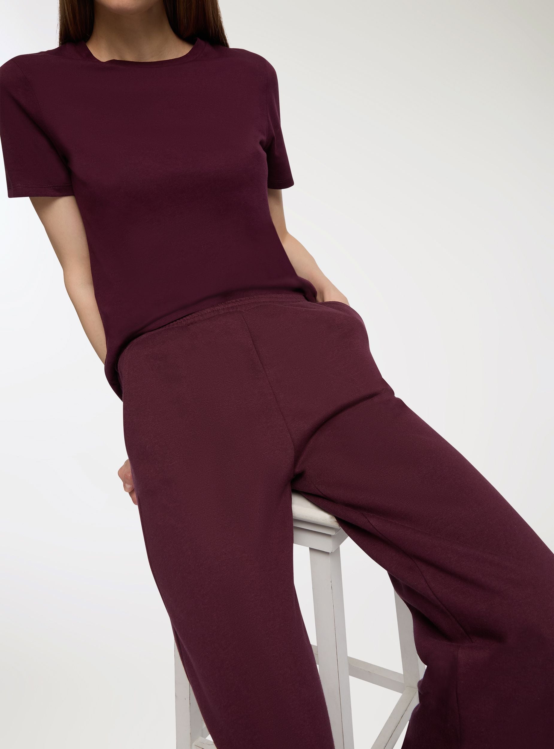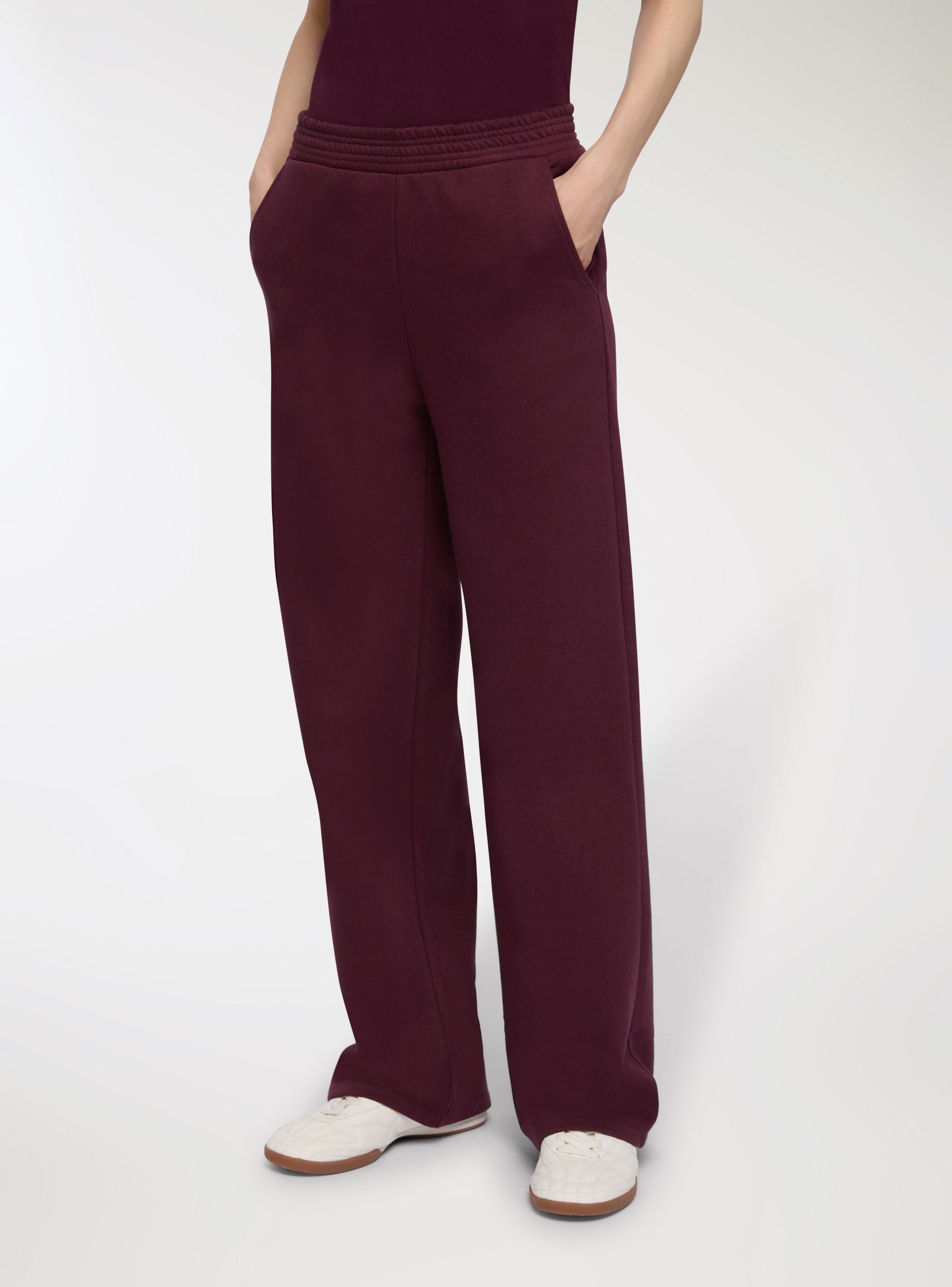 Pantalones de chándal de mujer en felpa gruesa, modelo de pierna ancha en color sólido. Equipados con práctico elástico en la cintura y cómodos bolsillos laterales, combinan confort y estilo en una prenda perfecta para el tiempo libre. Ideales para la temporada fría, son un must-have relajado y contemporáneo.Detalles
