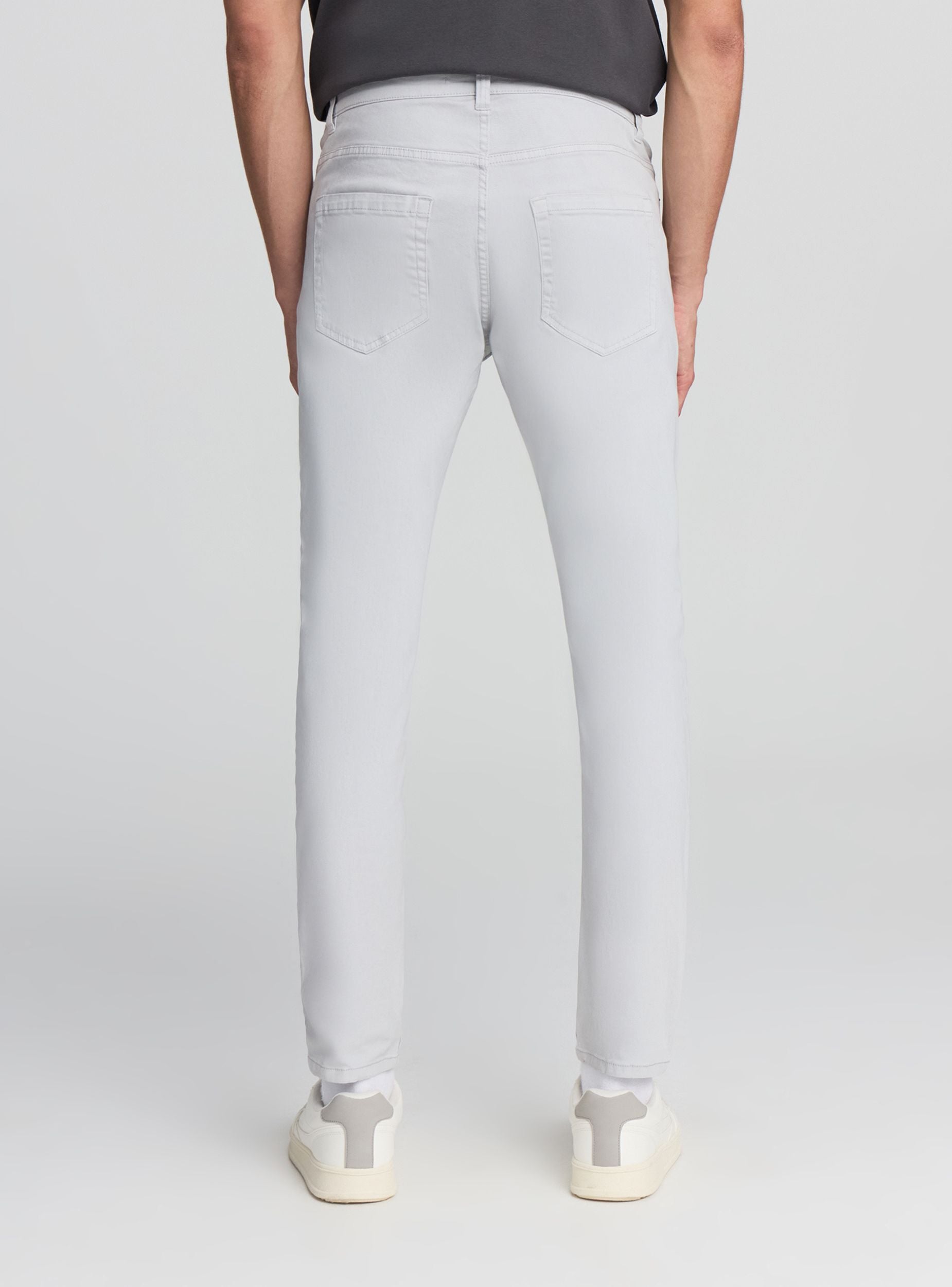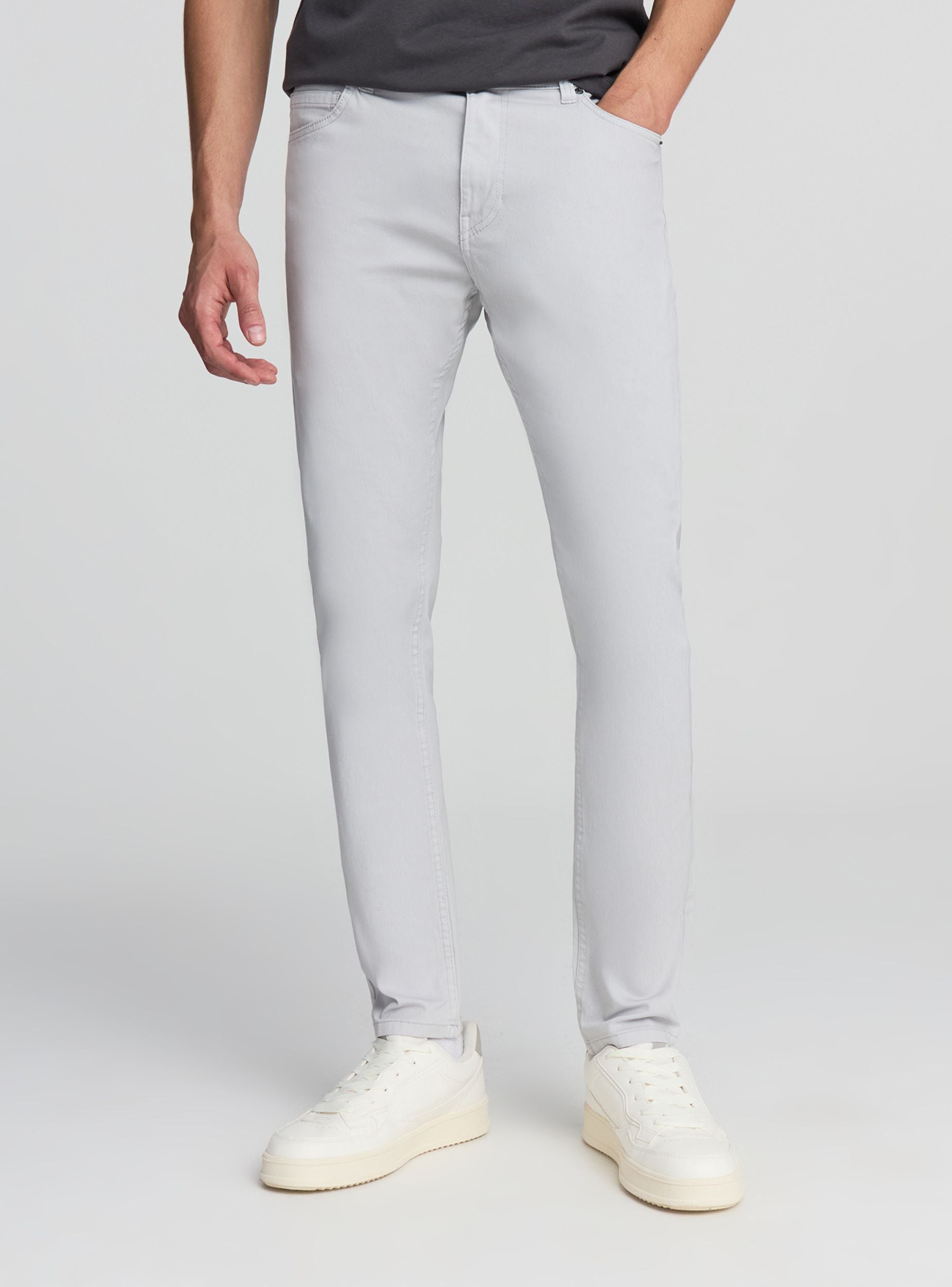 Pantalones de hombre con ajuste skinny, ideales para un look moderno y versátil. Equipados con cinco bolsillos, ofrecen practicidad y estilo. Perfectos para ocasiones formales o casuales, se combinan fácilmente con camisas o camisetas. Cierre con botón y cremallera para una comodidad óptima. Una prenda esencial para un armario contemporáneo.