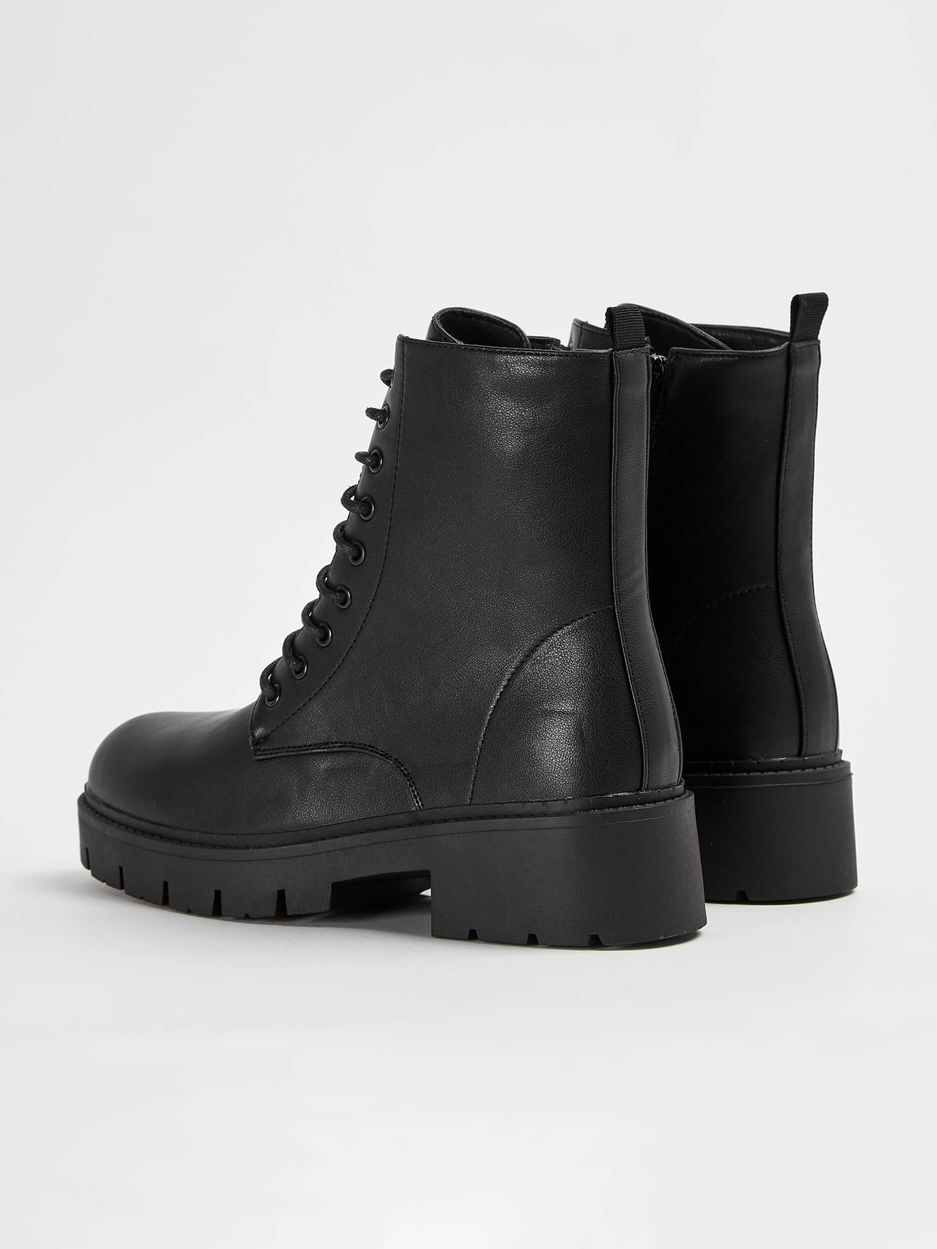 Anfibio da donna in pelle sintetica tinta unita con suola carrarmato in gomma.
