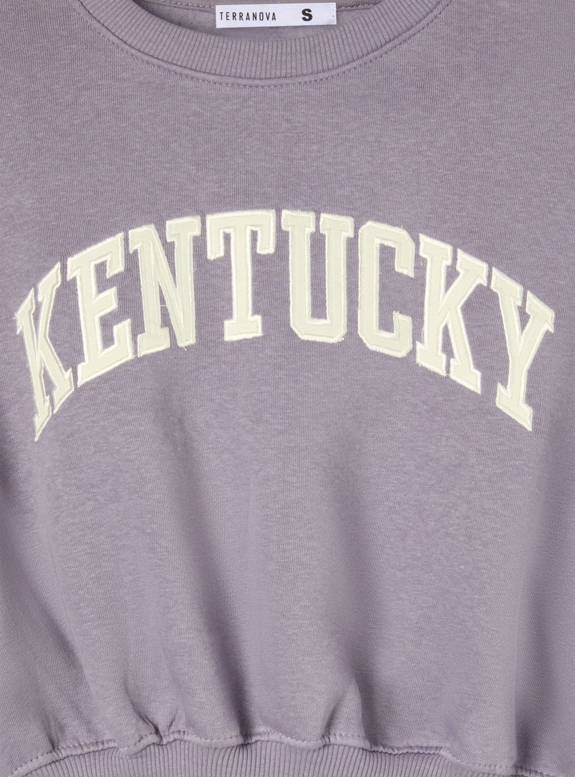 Sudadera pesada de mujer con estampado estilo college americano y corte cropped para un look deportivo y atrevido. El modelo cerrado, sin capucha y sin cremallera, con fondo y puños de canalé asegura comodidad en los días más fríos. Fabricada en tejido de felpa, es perfecta para llevar con vaqueros, pantalones de pierna ancha o joggers para outfits casuales de inspiración americana, ideales para el tiempo libre o la universidad.Detalles