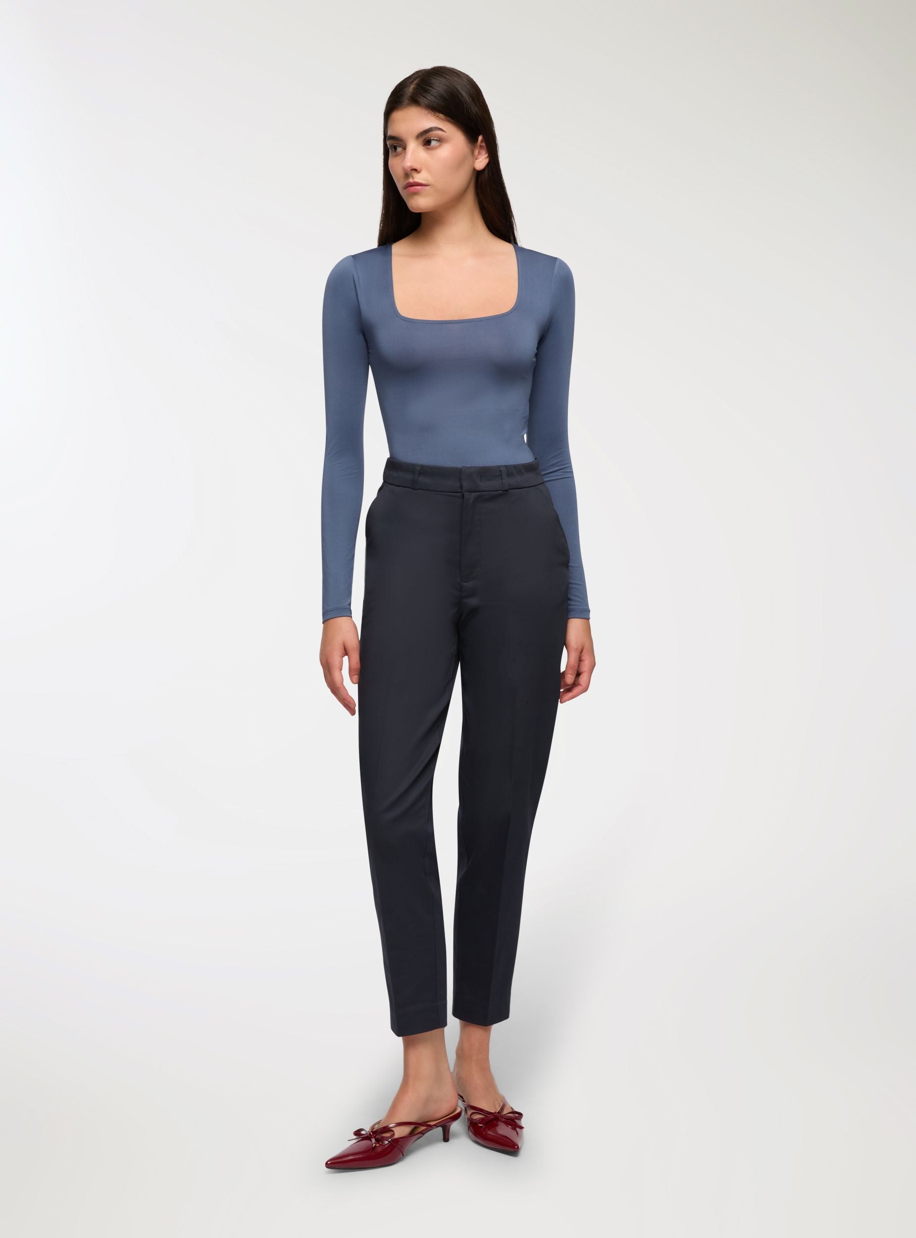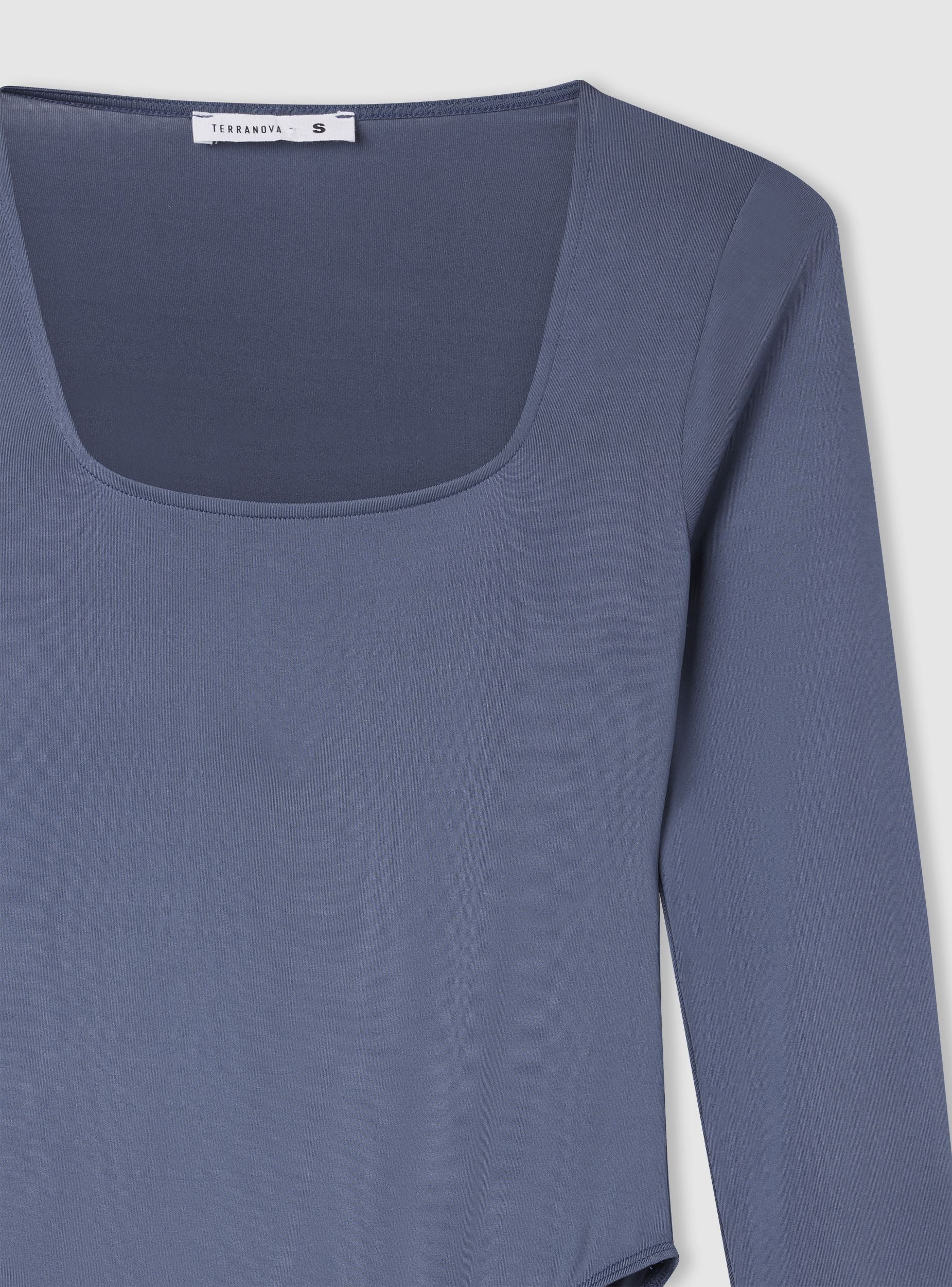 Body femme à manches longues avec décolleté carré, parfait pour mettre en valeur le décolleté avec élégance. Le design ajusté épouse les formes avec naturel, offrant confort et style en toute occasion. Idéal comme base pour des tenues de jour et de soir, il s'associe facilement à des jeans, des jupes ou des pantalons. Réalisé en tissu extensible, il garantit un ajustement impeccable.