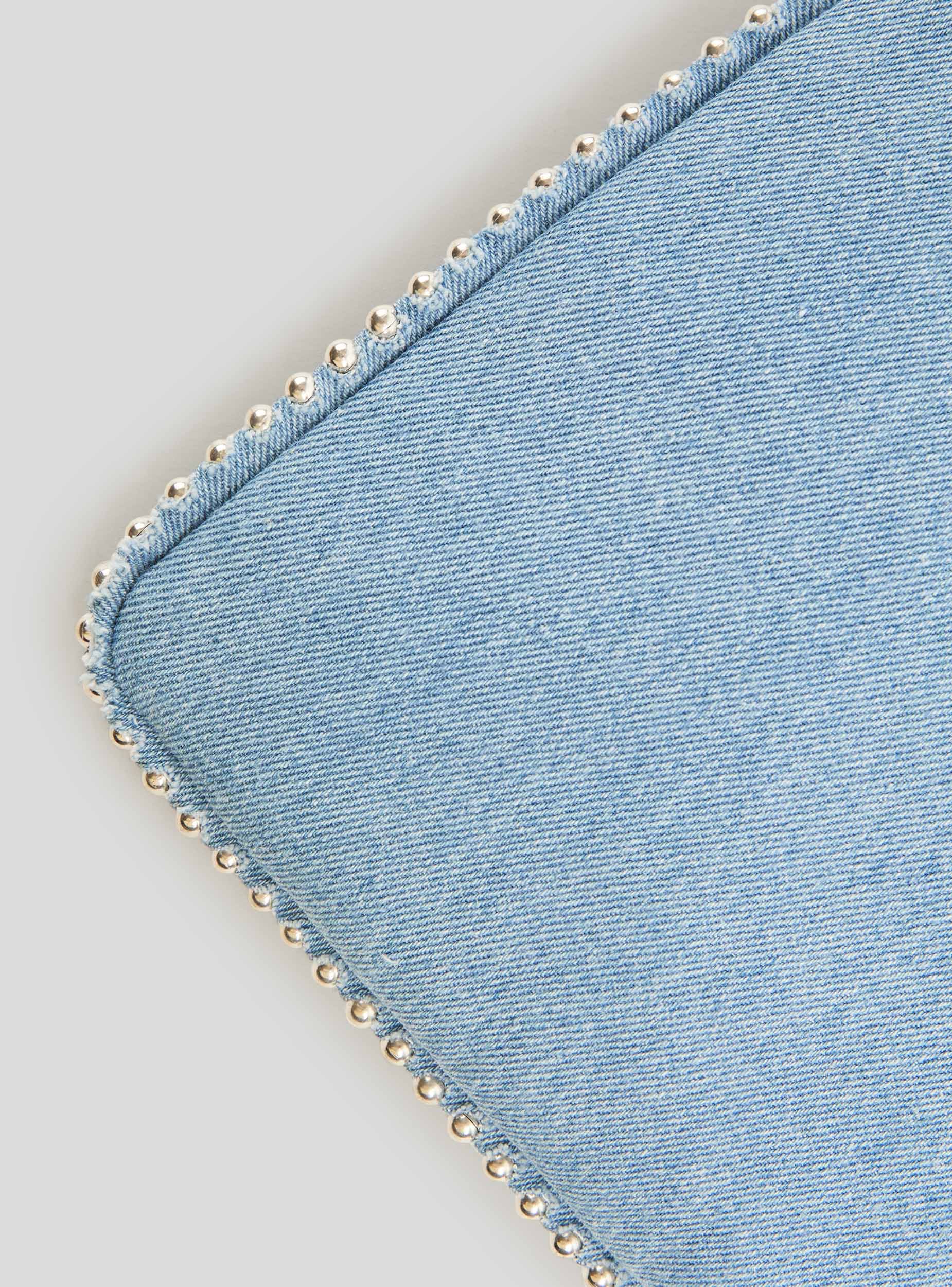 Sac à main pour femme au design polyvalent et moderne, caractérisé par une structure en denim qui ajoute une touche audacieuse. Équipé d'une bandoulière en chaîne pour un style contemporain et pratique, il présente un profil décoré de clous pour un détail accrocheur. La fermeture éclair garantit sécurité et fonctionnalité, tandis que l'intérieur comprend une poche zippée pour mieux organiser vos accessoires. Parfait en couleur unie pour des assortiments polyvalents. Dimensions : Hauteur 17,5 cm, Longueur 27,5 cm.Détails
