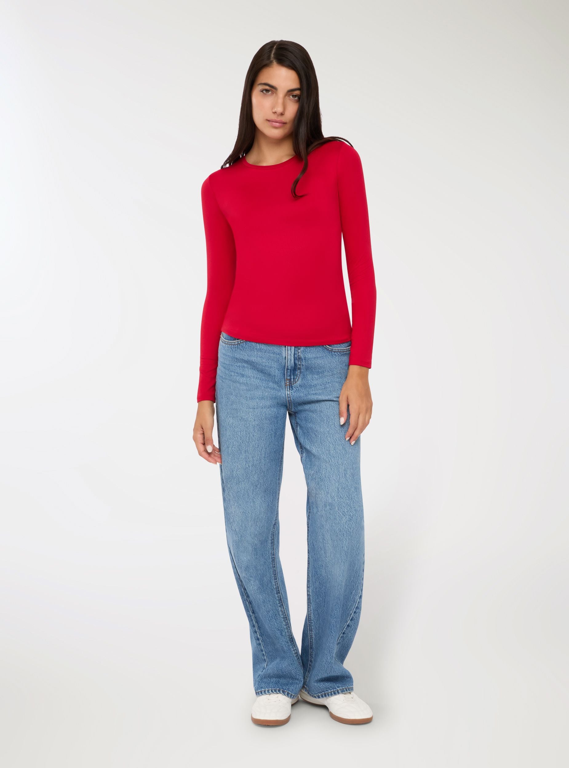 Pull basique pour femme à manches longues en tissu extensible. Parfait pour chaque saison, ce pull est un incontournable de la garde-robe. Caractérisé par un design minimaliste et une couleur unie, il est doté de manches longues et d'un col rond confortable. Le tissu extensible garantit une coupe ajustée et confortable, épousant naturellement les lignes du corps. Idéal à porter seul pour des looks décontractés ou comme couche sous des vestes, des blazers ou des cardigans pendant les mois les plus froids, il s'adapte facilement à chaque occasion, du bureau aux loisirs. Un vêtement polyvalent qui allie simplicité et praticité pour un style toujours soigné.Détails