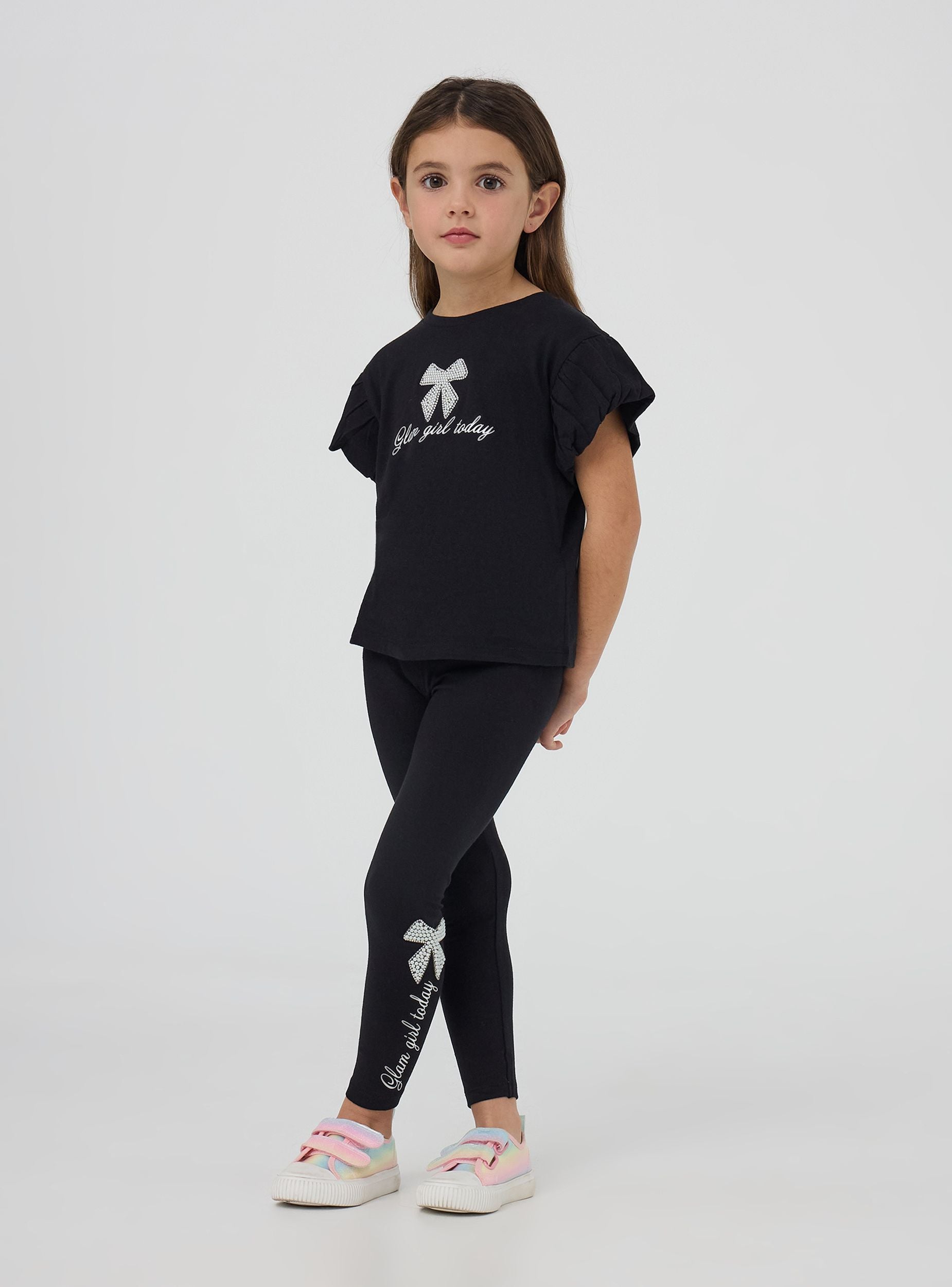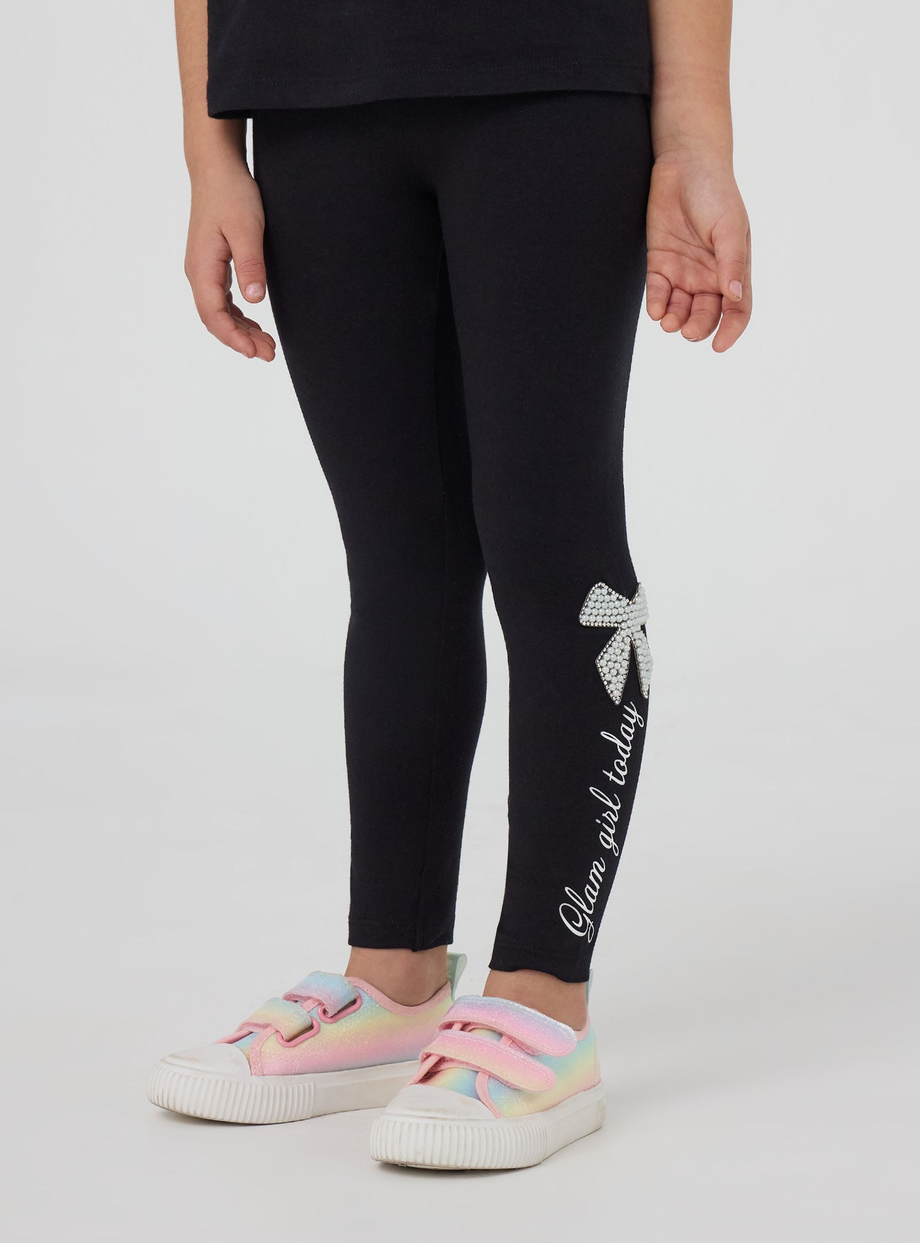 Leggings pour filles parfaits pour les loisirs ou les activités quotidiennes. Modèle long et extensible pour garantir un maximum de confort et de liberté de mouvement. Décorés d'un écriture stylée et d'applications, ils ajoutent une touche glamour à chaque look. Idéaux pour une tenue dynamique et à la mode.Détails
