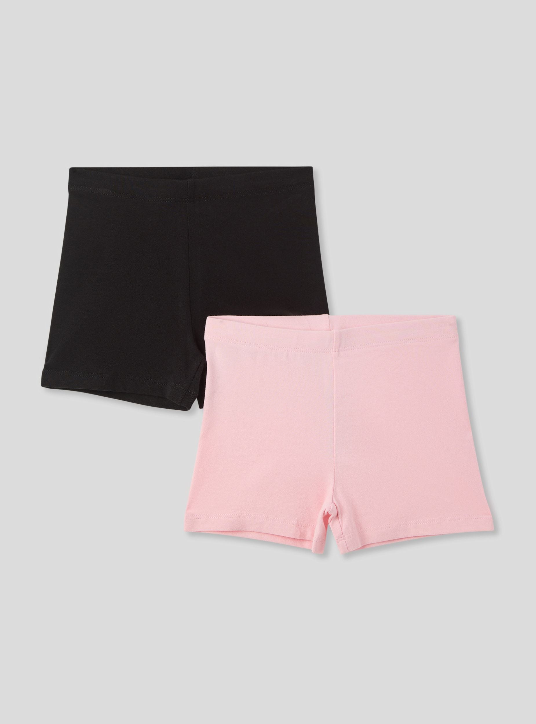 Ensemble composé de 2 leggings pour fille, parfaits pour le jeu et les activités quotidiennes. Le design court type culotte garantit un ajustement près du corps et confortable grâce au tissu extensible. La teinte unie les rend polyvalents et idéaux pour créer des looks pratiques et fonctionnels en toute occasion.Détails