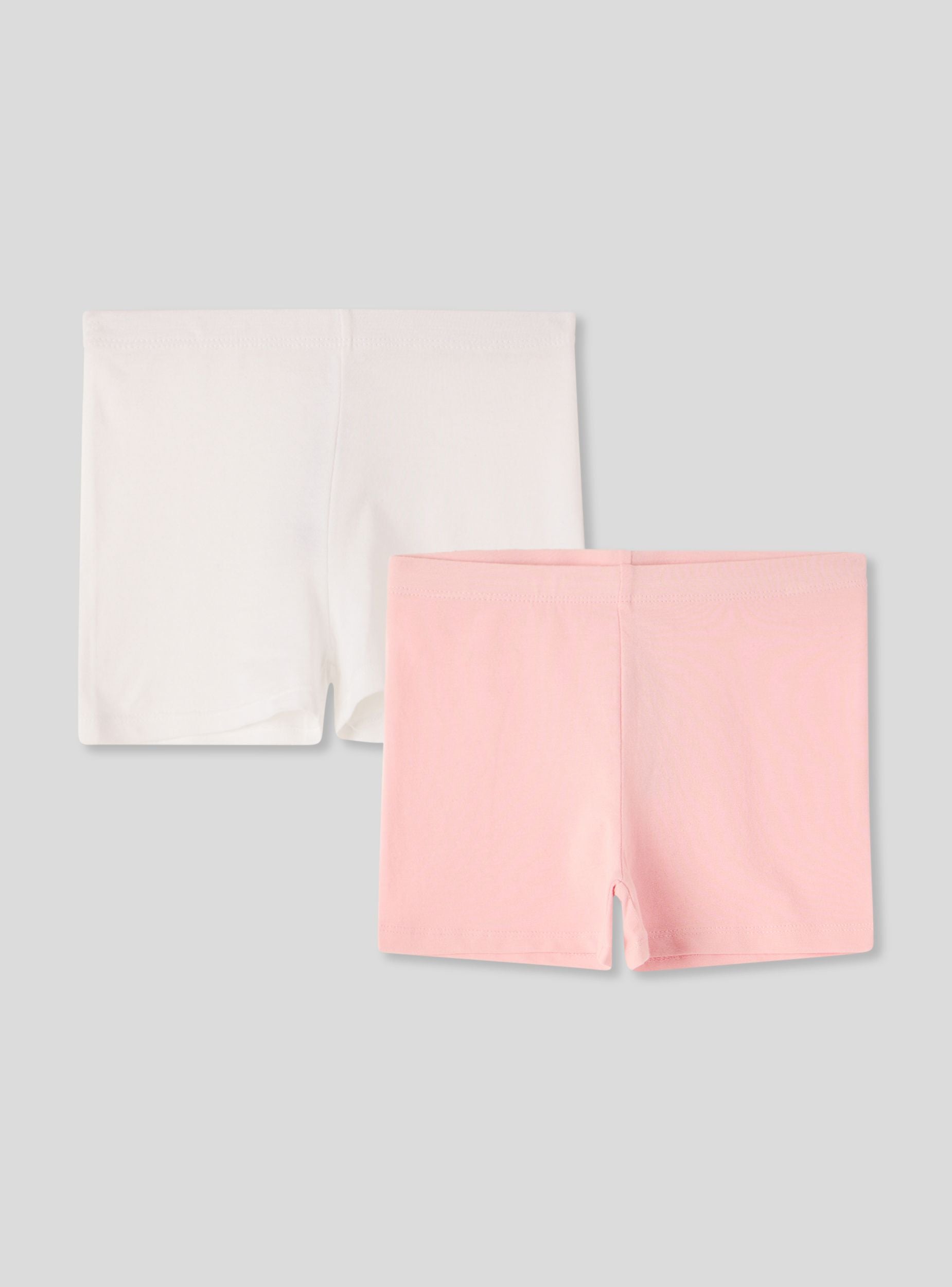 Ensemble composé de 2 leggings pour filles parfaits pour le jeu et les activités quotidiennes. Le design court type culotte garantit un ajustement près du corps et confortable grâce au tissu extensible. La teinte unie les rend polyvalents et idéaux pour créer des looks pratiques et fonctionnels en toute occasion.Détails