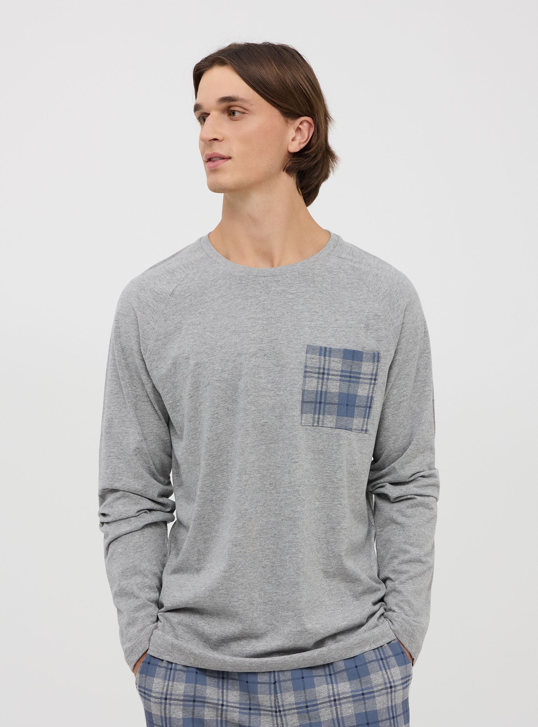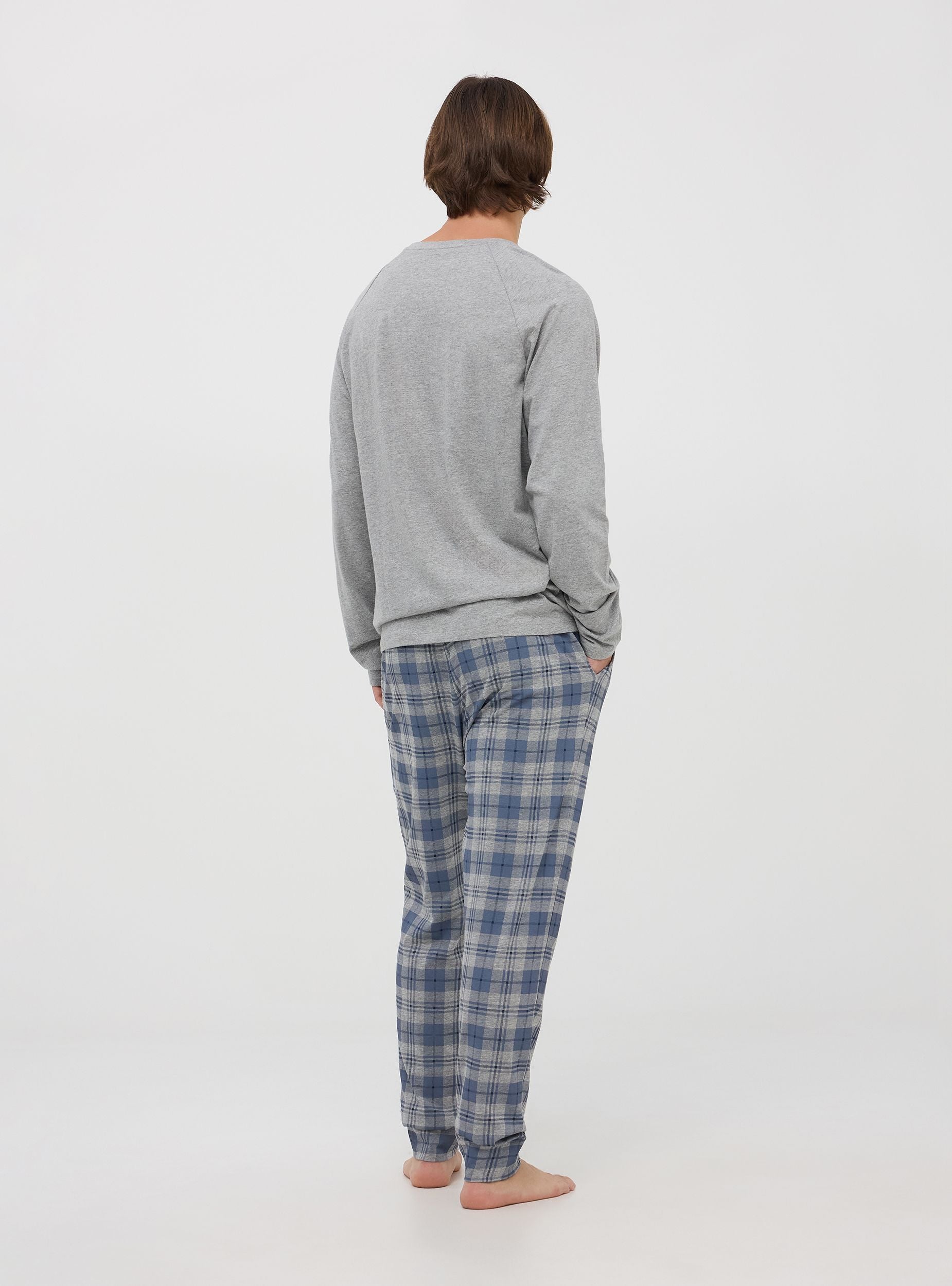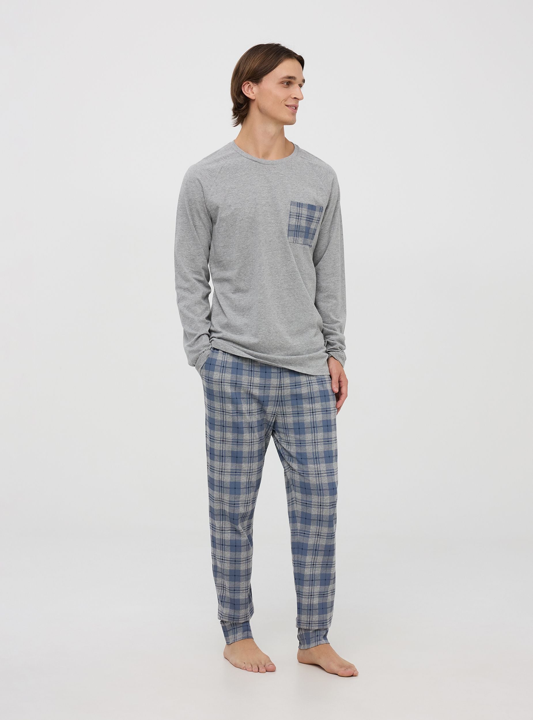 Ce pyjama pour homme est composé d'un haut à manches longues et d'un pantalon long, entièrement réalisé en coton doux. Le haut est doté d'une poche décorative sur la poitrine à motif à carreaux, assortie au pantalon à motif intégral. Coupe régulière pour un maximum de confort. Le pantalon est équipé de poches latérales pratiques et d'un élastique à la taille.Détails