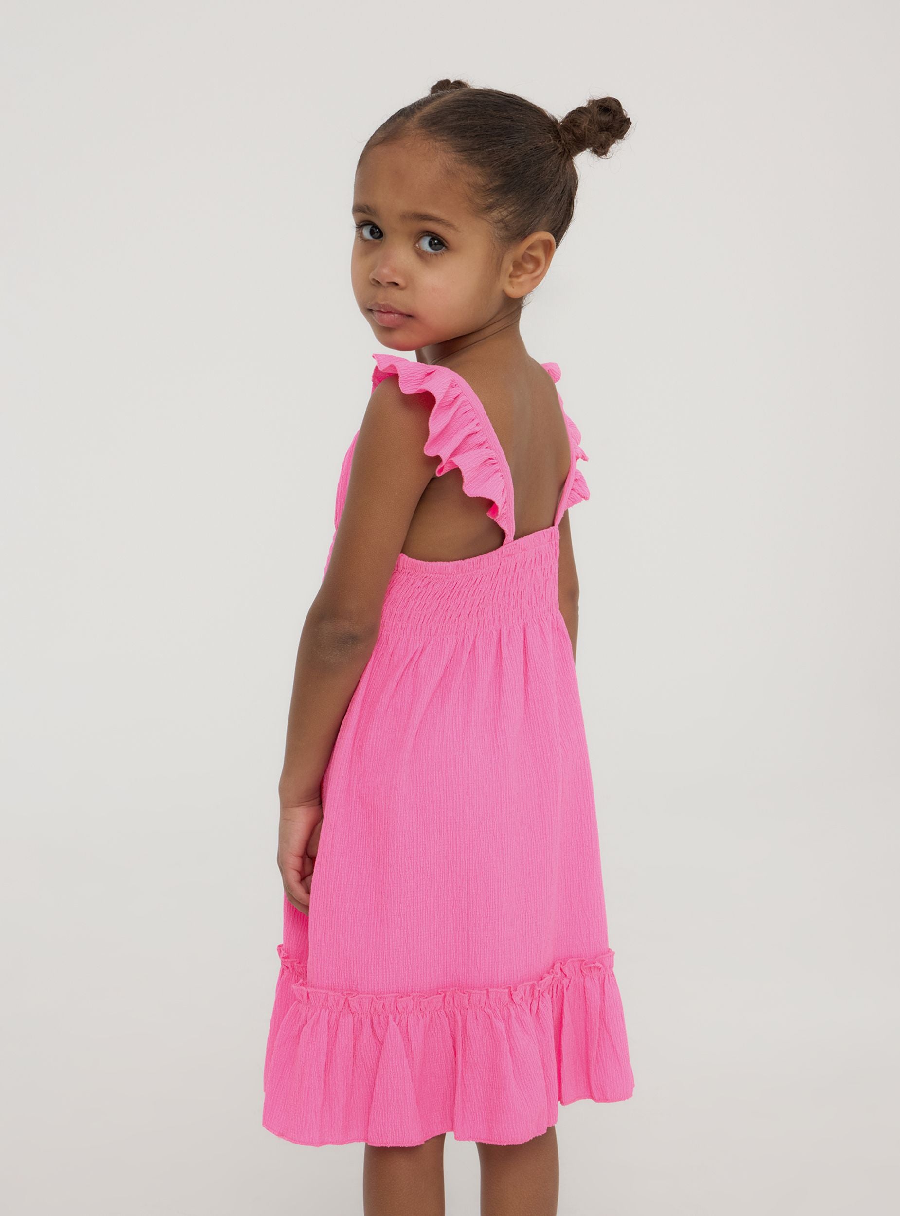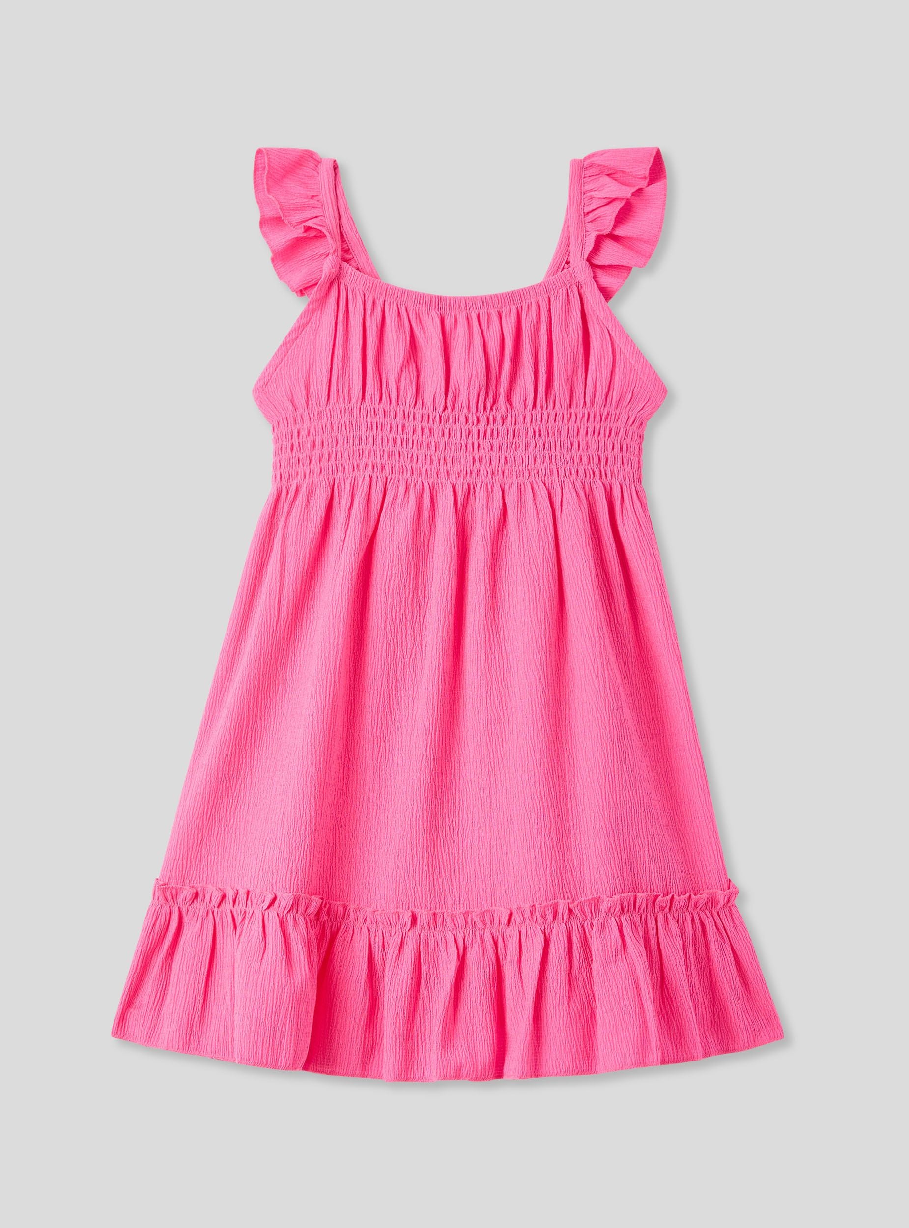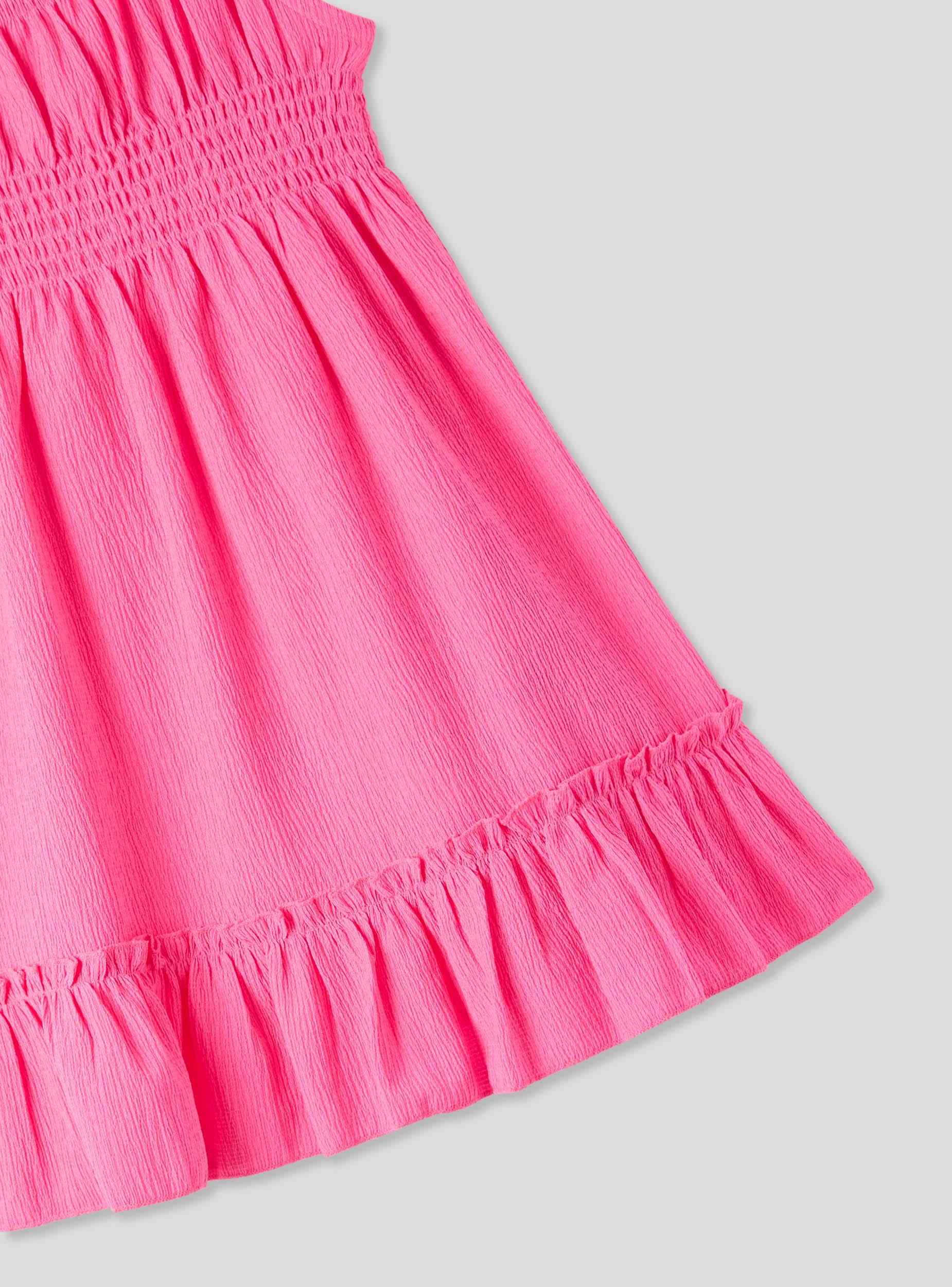 Robe pour fille parfaite pour la belle saison, avec une couleur unie vive et des détails soignés. Les délicates fronces et le smock à la taille donnent à la pièce un look élégant et confortable. Idéale pour chaque occasion, cette robe allie style et praticité, accompagnant les petites filles dans leurs aventures estivales avec une touche d'élégance.