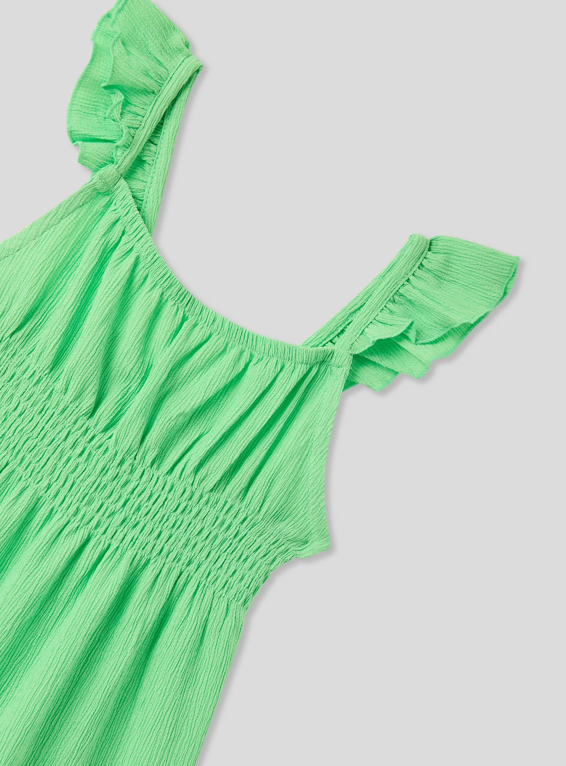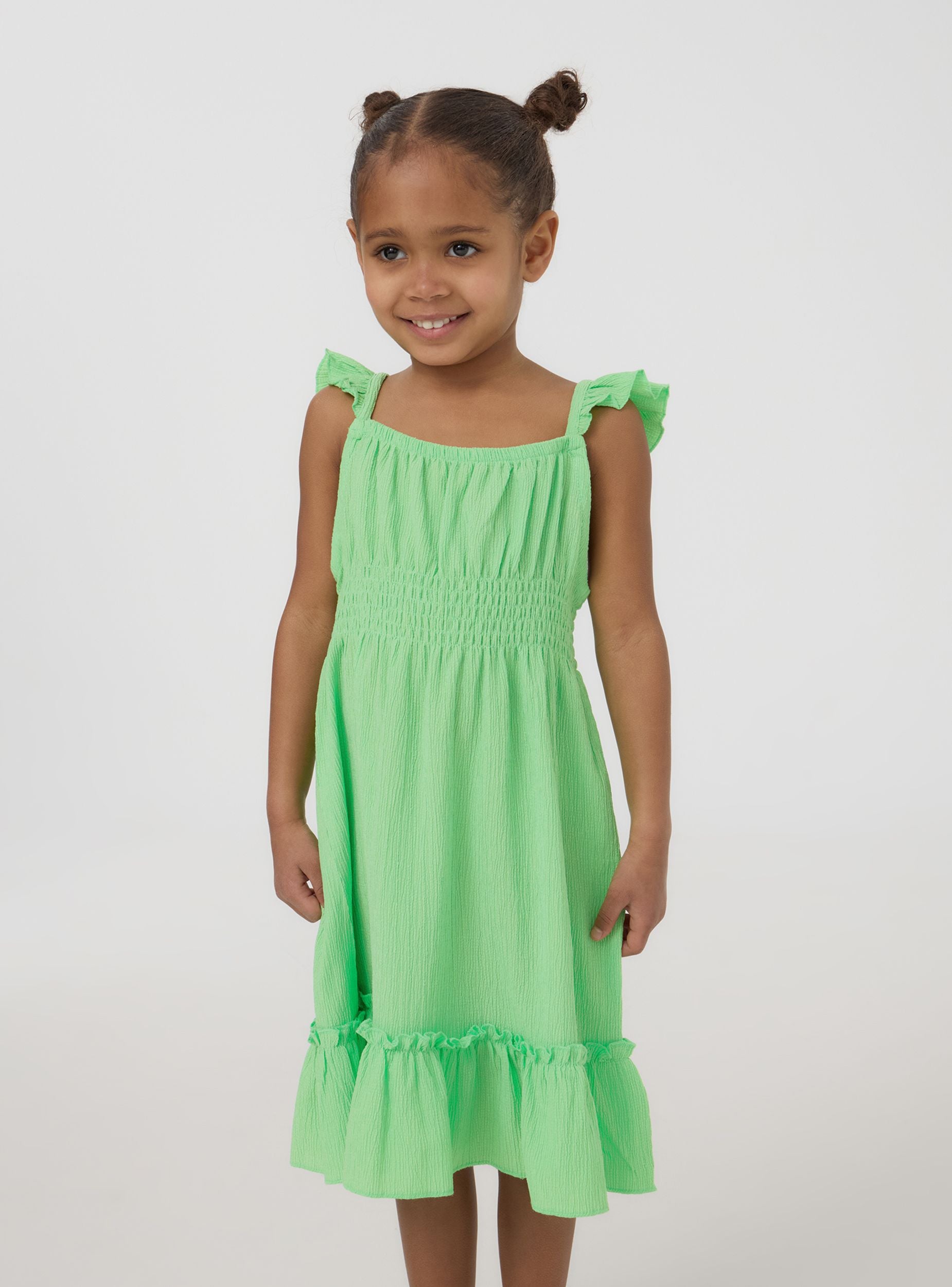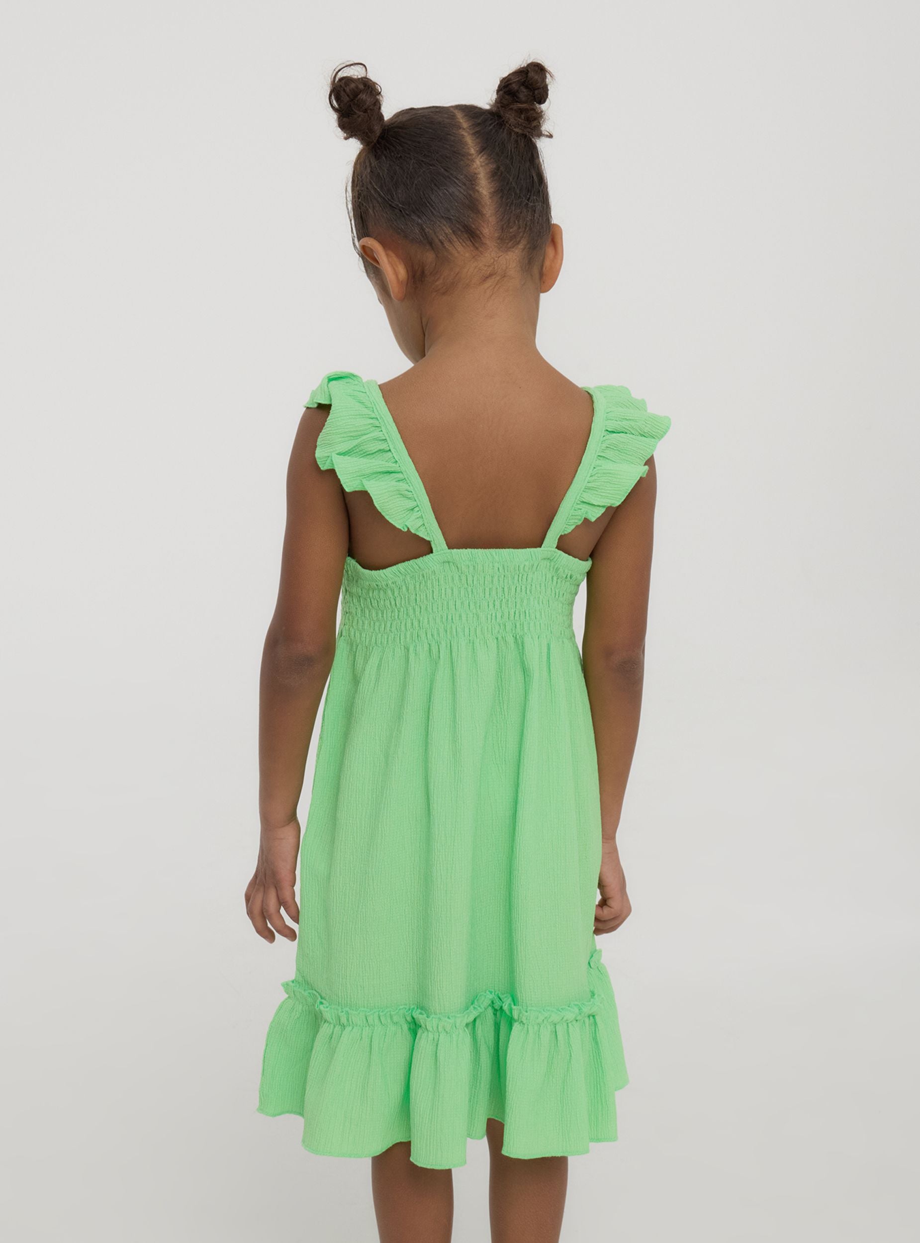 Robe pour fille parfaite pour la belle saison, avec une teinte unie vive et des détails raffinés. Les fronces délicates et le smock à la taille donnent à la pièce un look charmant et confortable. Idéale pour toutes les occasions, cette robe allie style et praticité, accompagnant les petites filles dans leurs aventures estivales avec une touche d'élégance.