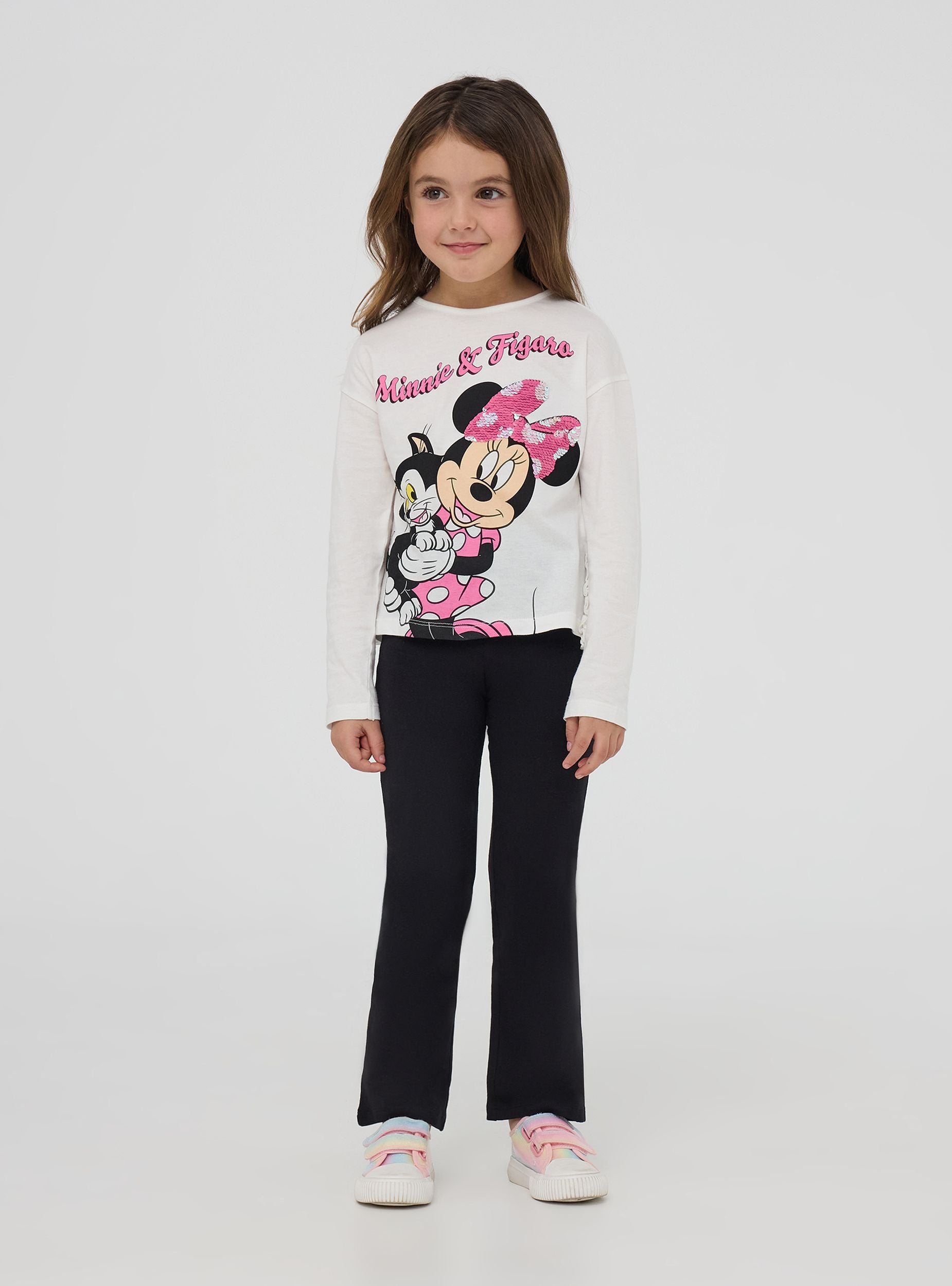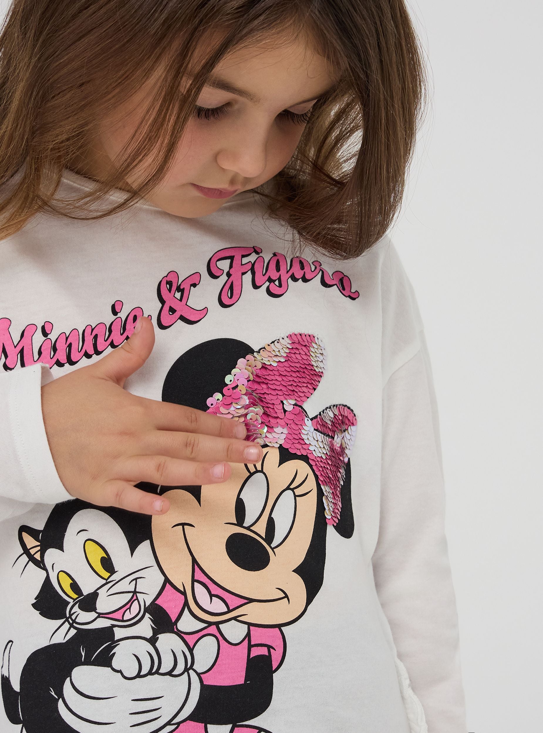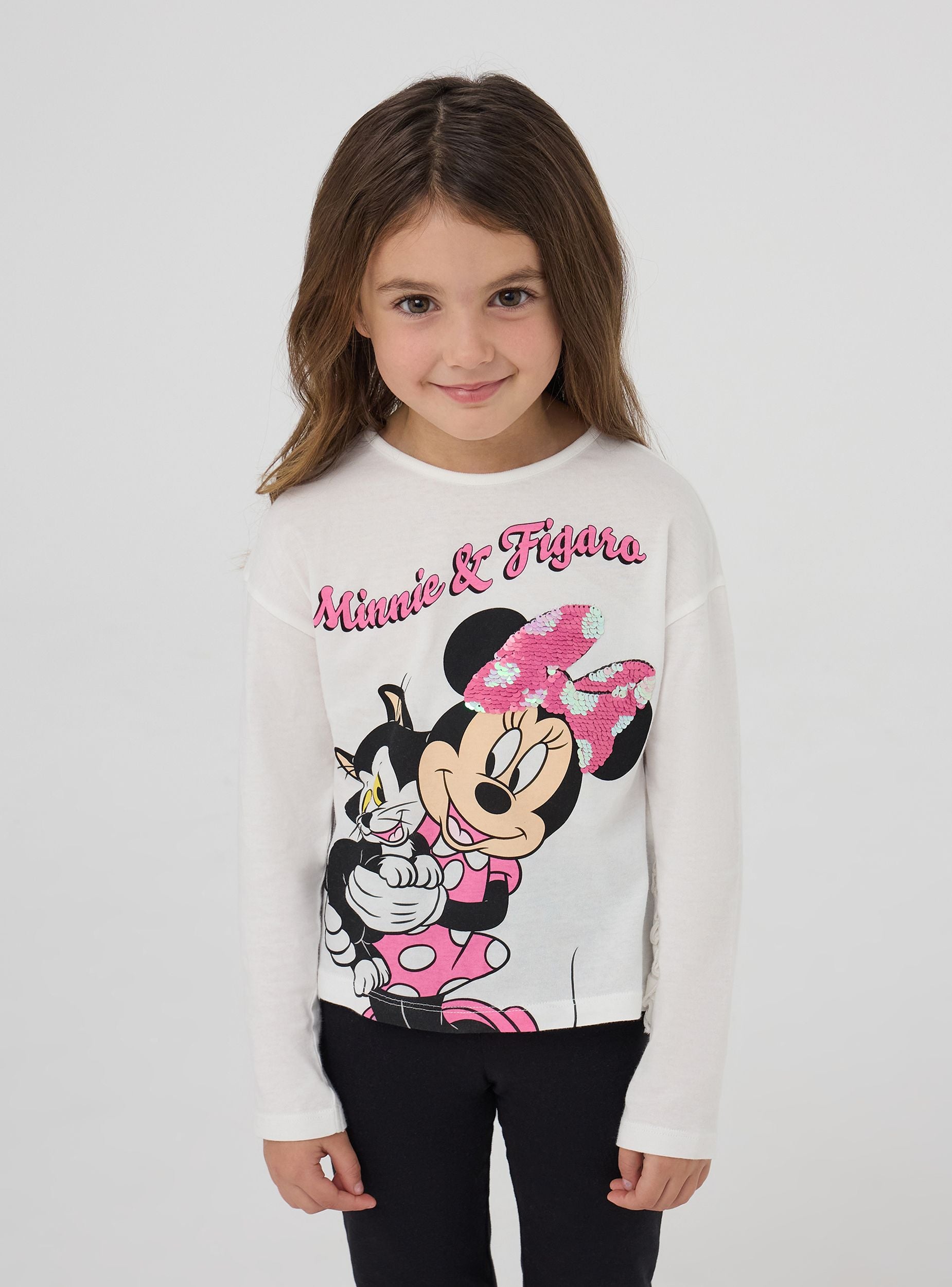 T-shirt pour fille avec un adorable design dédié à Minnie® et Figaro, idéale pour ajouter une touche de gaieté et de légèreté à la garde-robe. L'impression frontale est mise en valeur par des détails en sequins qui apportent éclat et style. Parfaite pour les petites fans des deux personnages, cette t-shirt allie confort et originalité, accompagnant les filles dans leurs journées avec un look vivant et ludique.Détails