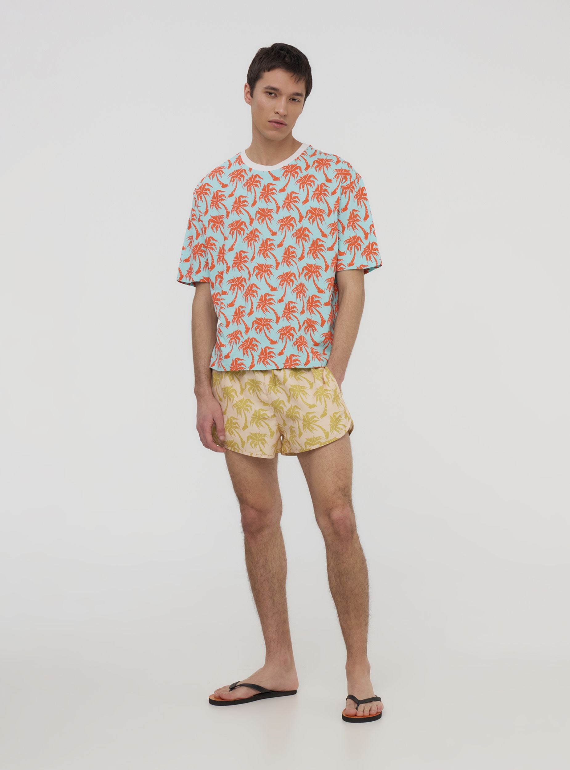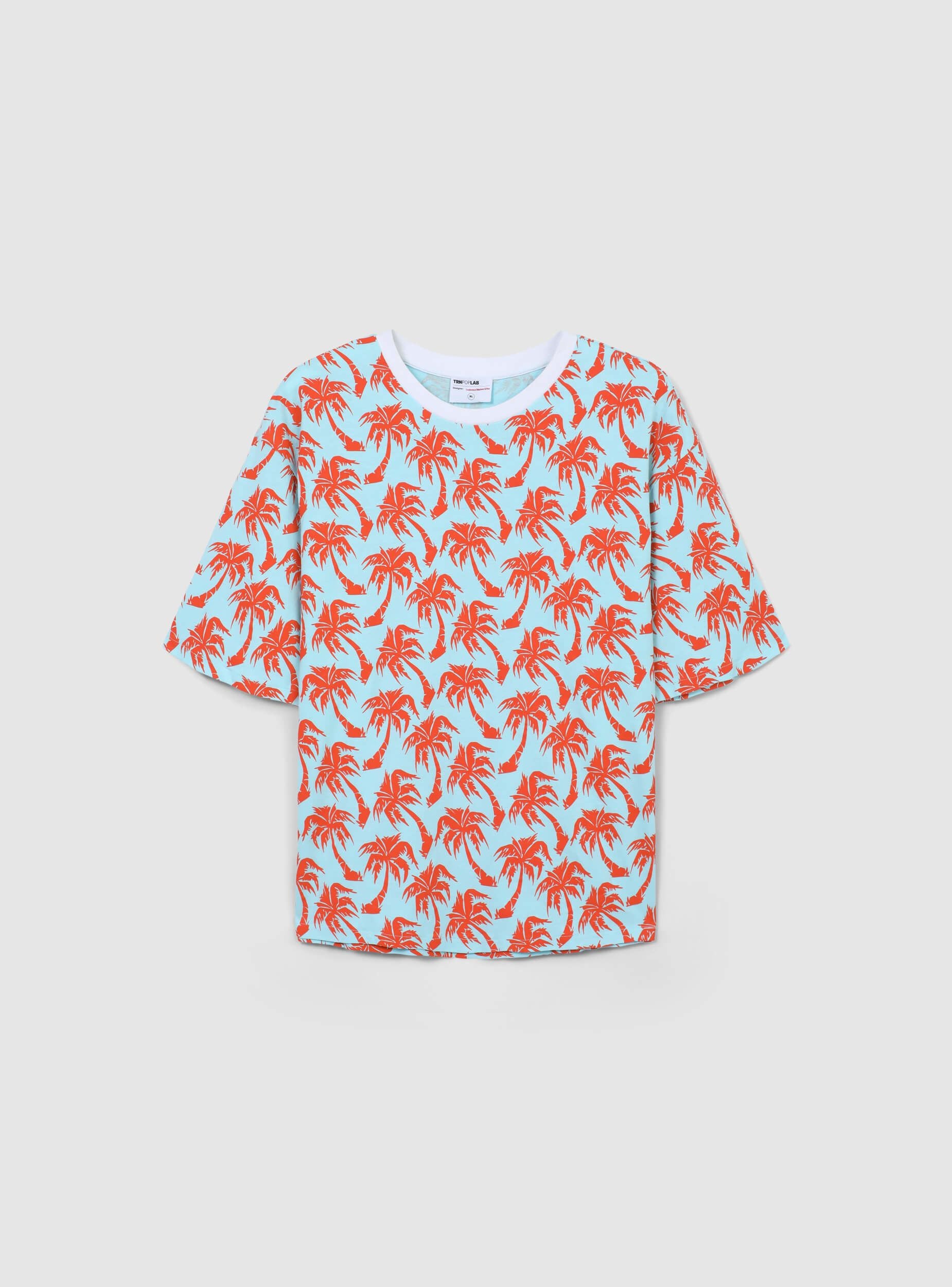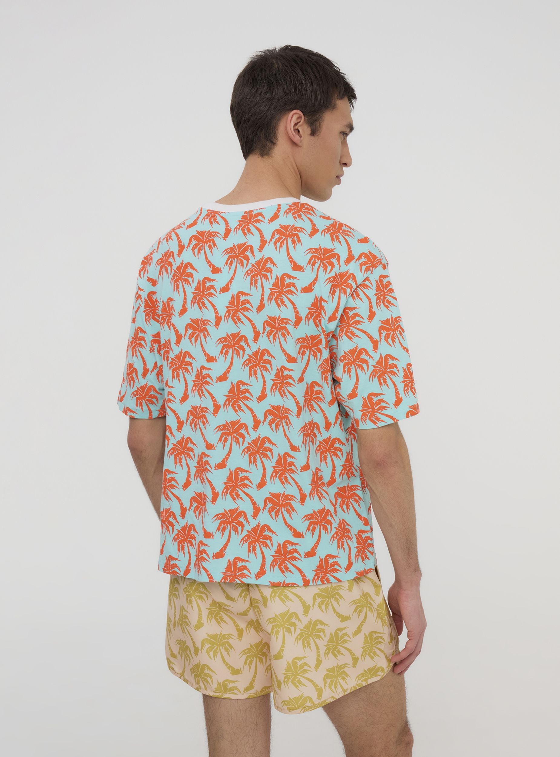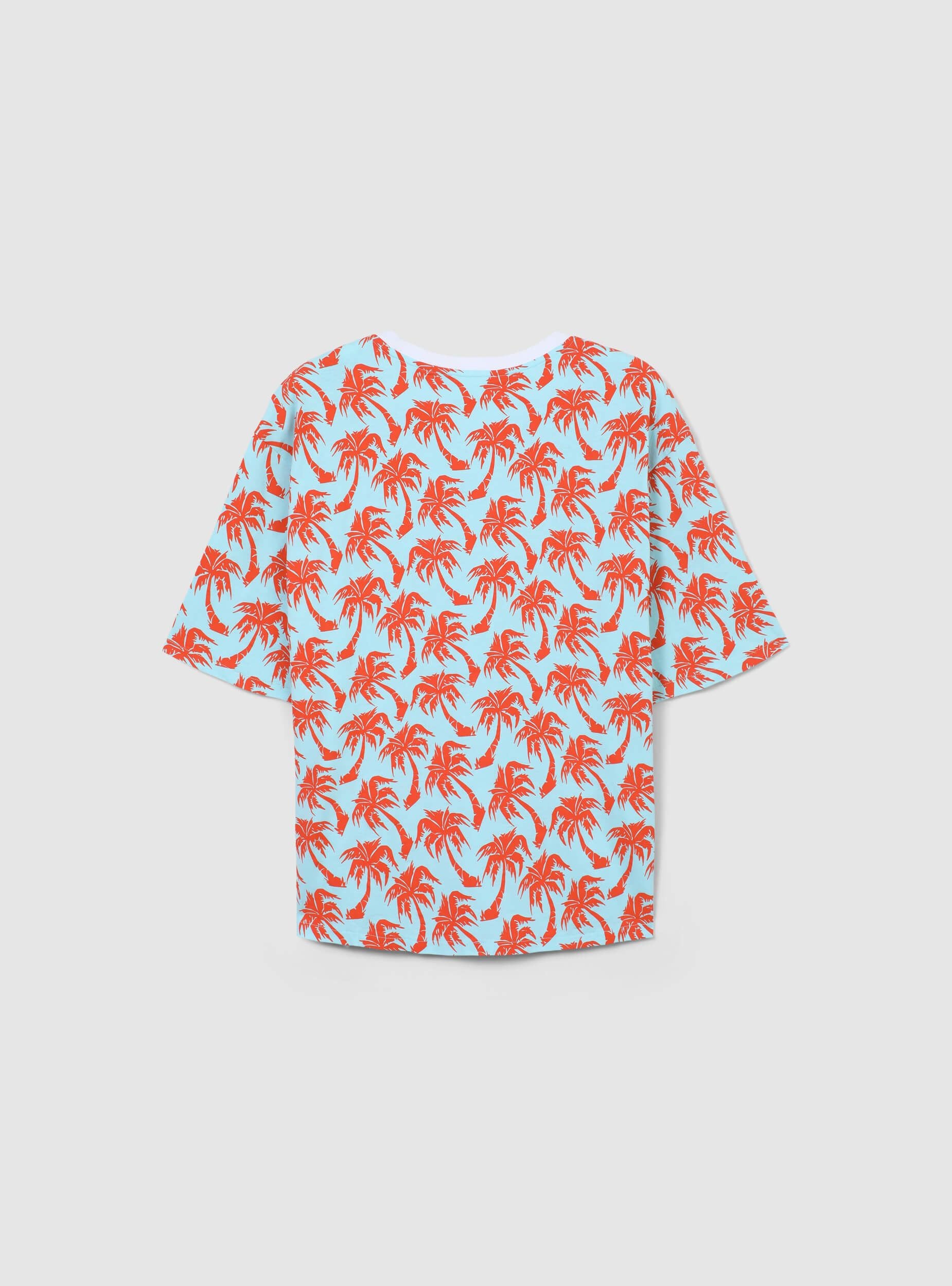 T-shirt pour homme à manches courtes avec col rond et coupe oversize, parfaite pour un look décontracté et tendance. Le motif avec des palmiers ajoute une touche exotique, idéale pour la saison estivale. Elle s'associe facilement avec des bermudas et des baskets pour un look décontracté de vacances ou avec des jeans et des sandales pour un apéritif au bord de la mer. Confortable et à la mode, elle est parfaite pour ceux qui aiment le style urbain avec une ambiance estivale. Cet article fait partie du projet TRNPOPLAB né de la collaboration avec NABA Milan. Les étudiants en design de mode ont donné vie à des collections inspirées des tendances les plus cool du moment. Et maintenant, ils verront leurs créations prendre vie et arriver directement entre vos mains !Détails
