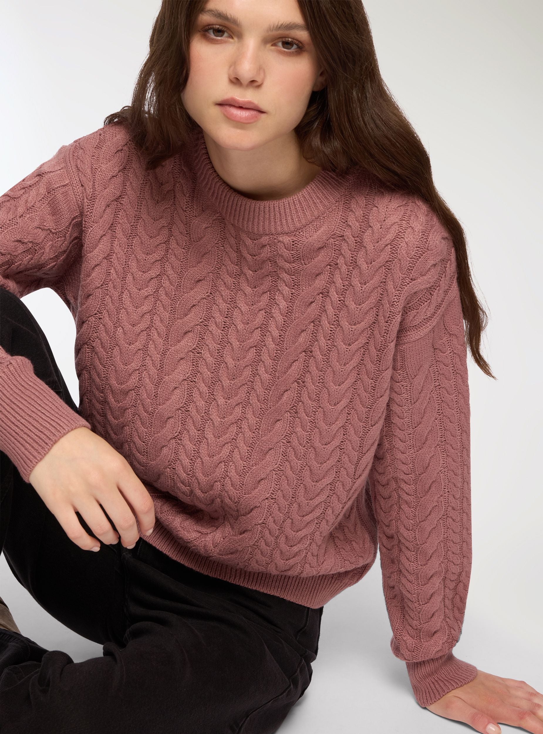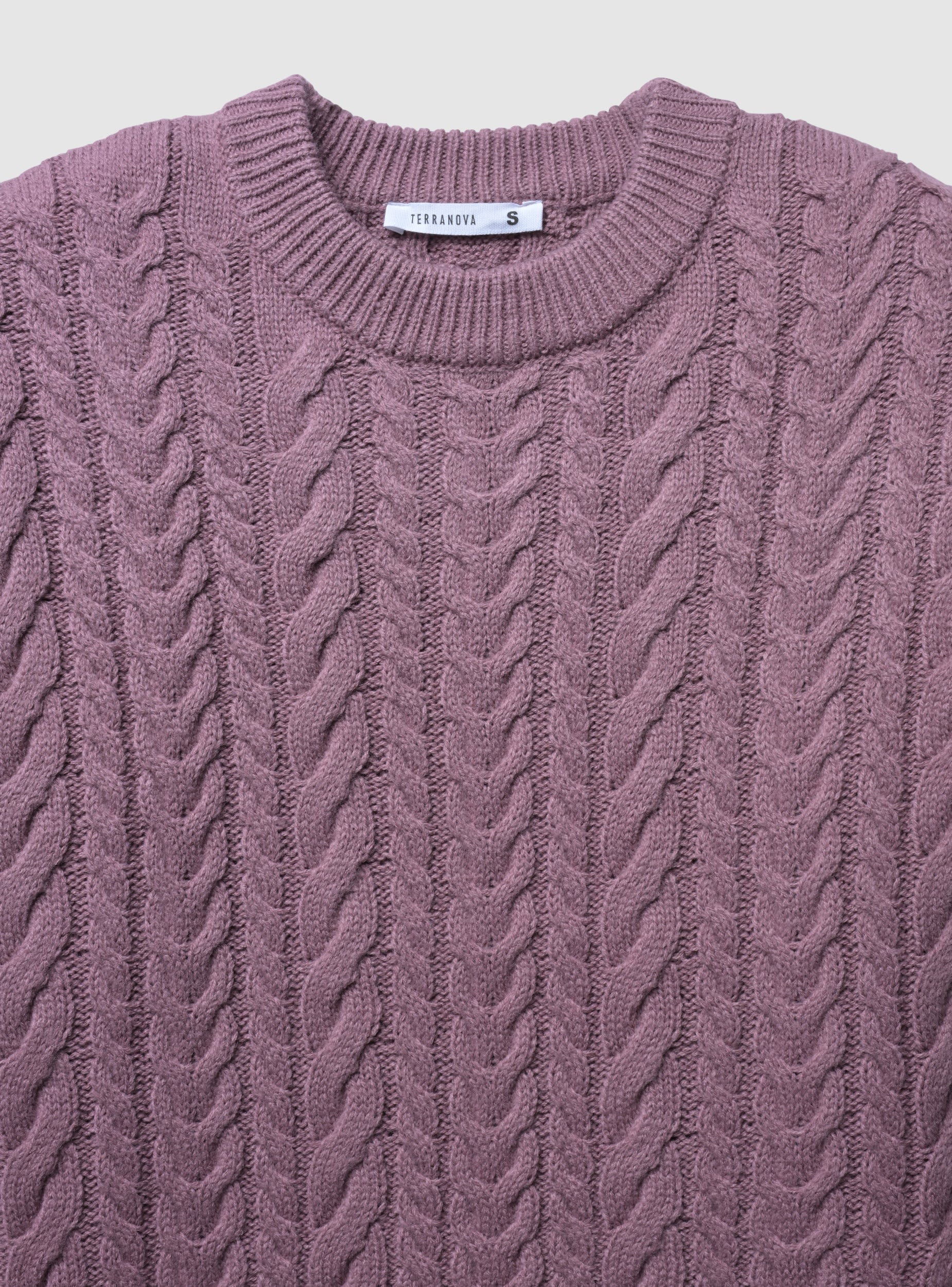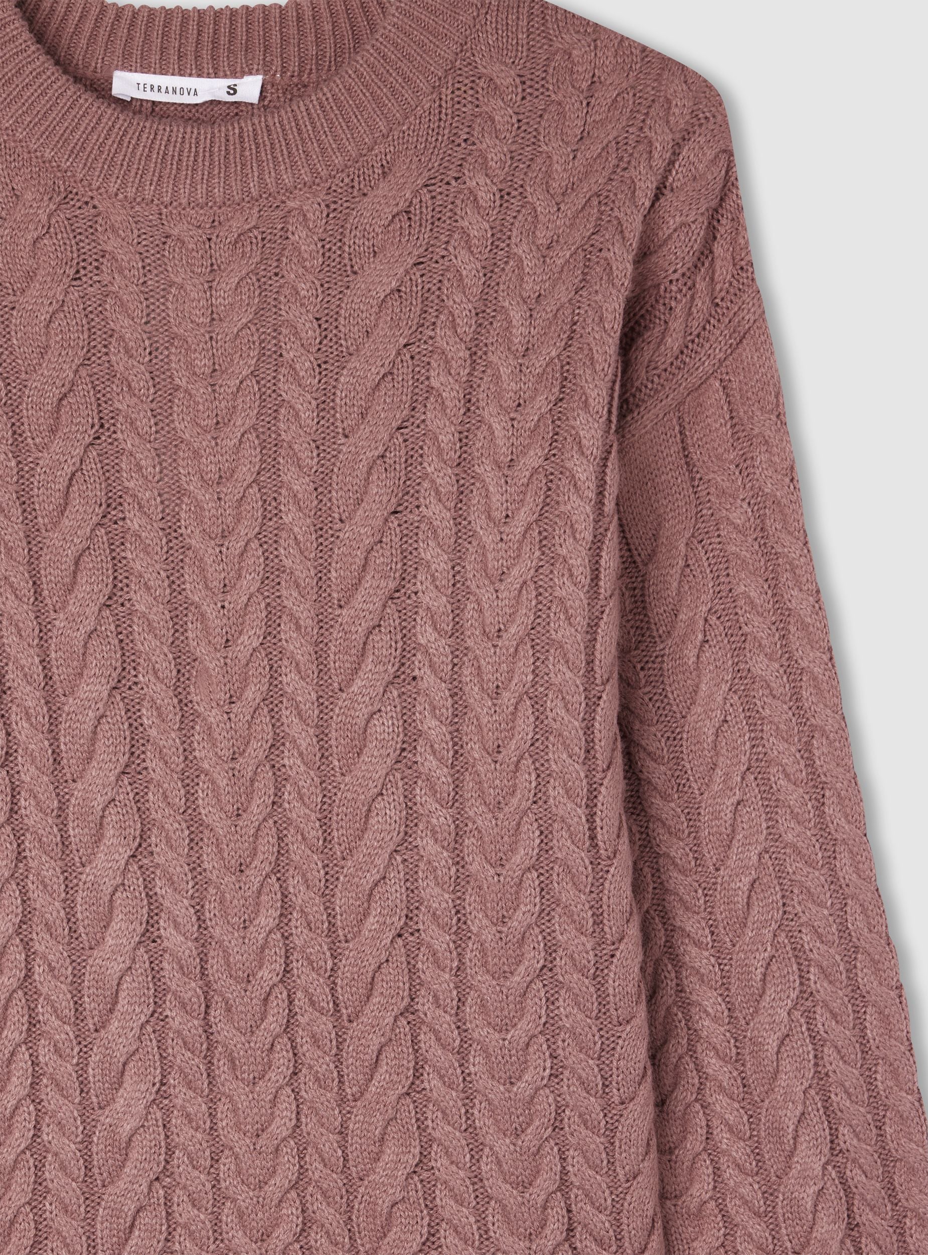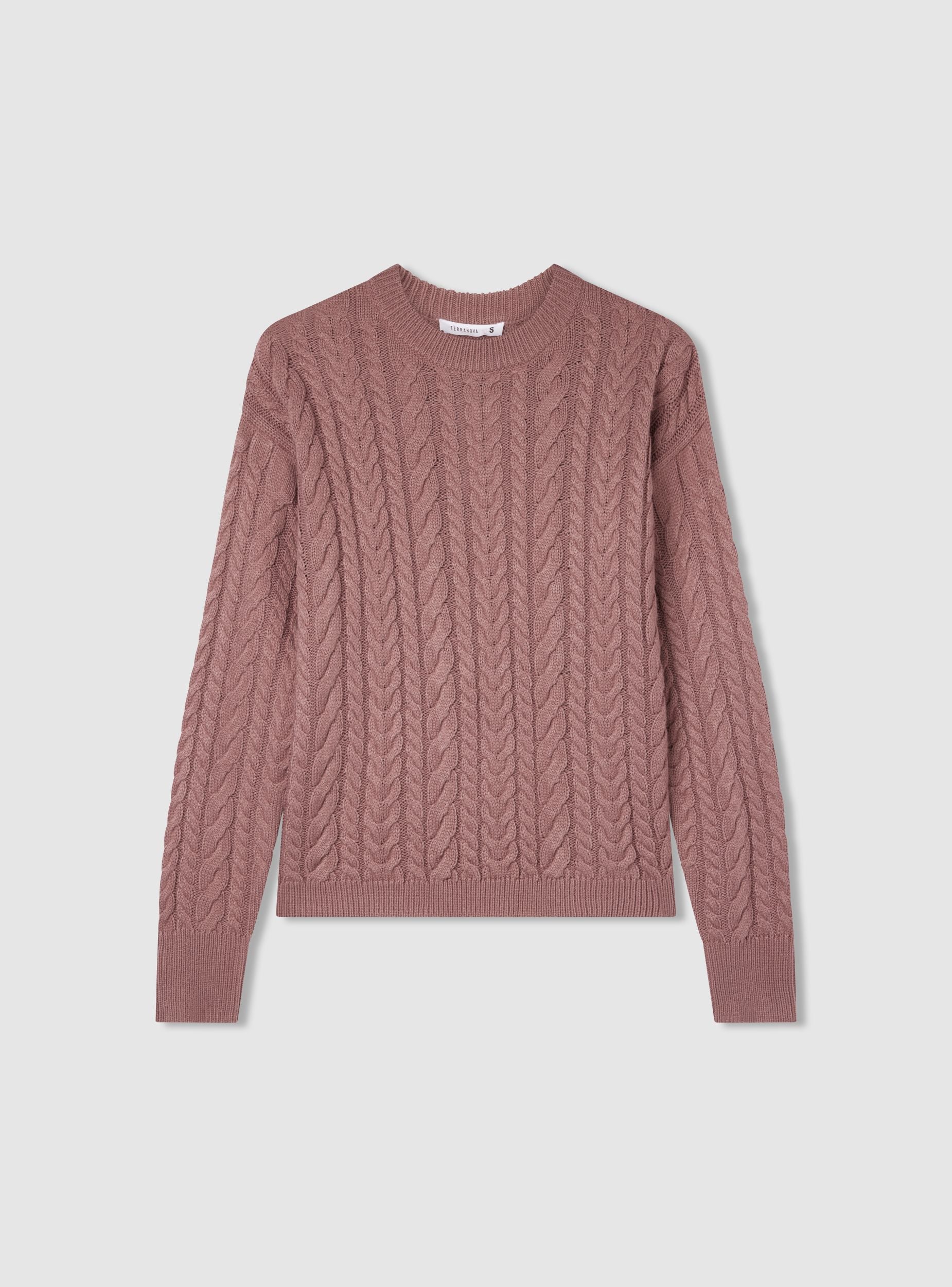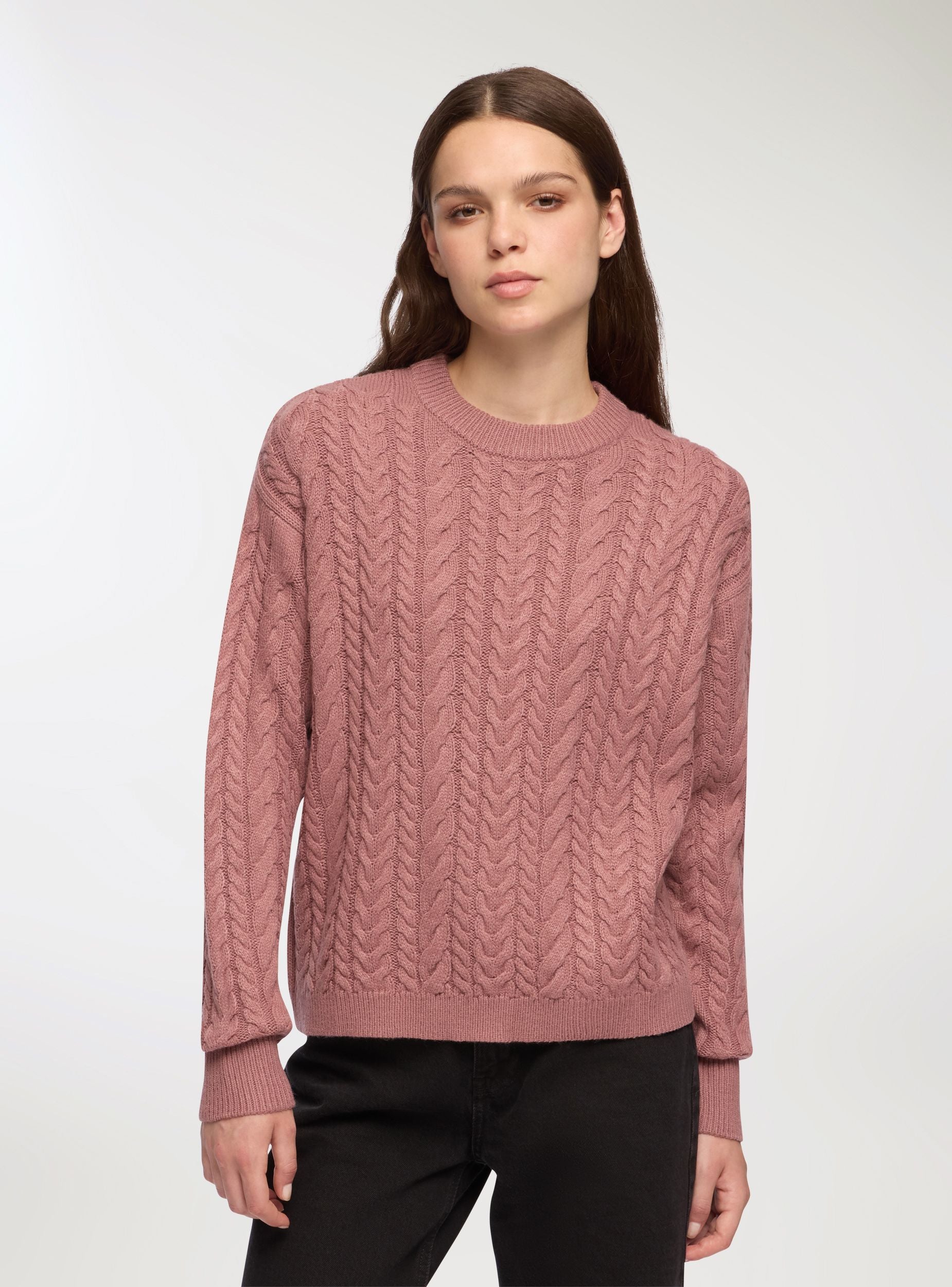 Ženska majica s pletenim uzorkom, idealna za ležeran i udoban izgled. Ima okrugli izrez i duge rukave, savršena za kombiniranje s trapericama ili hlačama za svakodnevni outfit. Regularni kroj osigurava udobnost i stil, čineći je prikladnom za različite prilike.