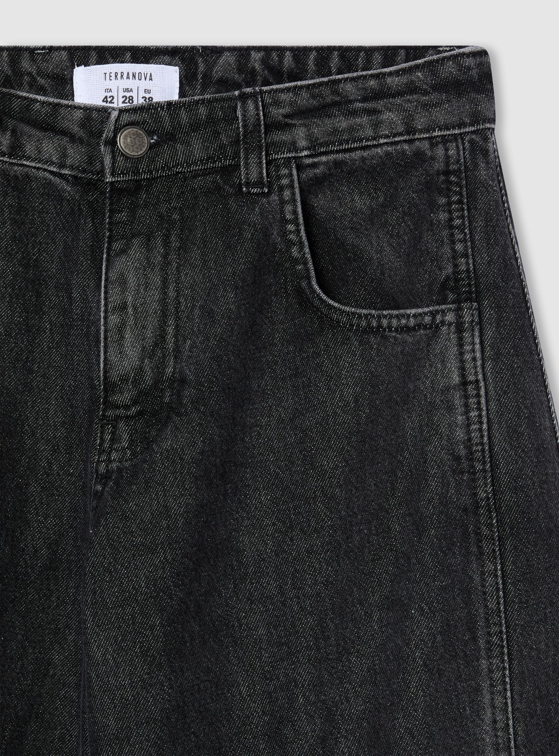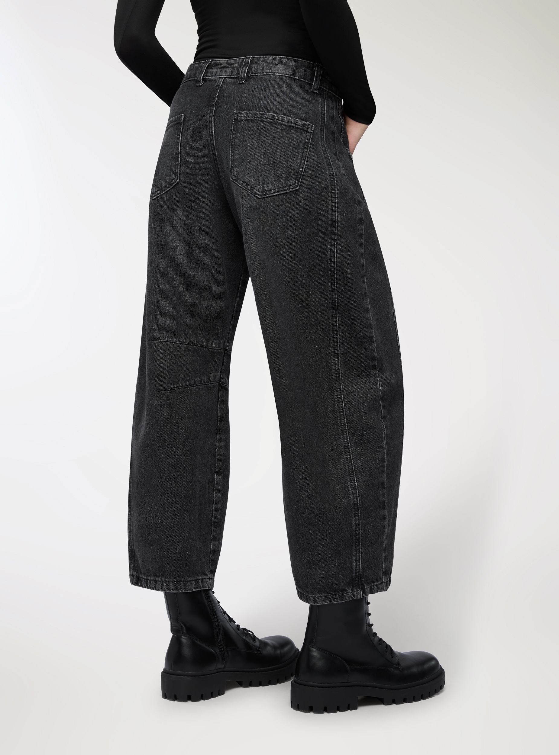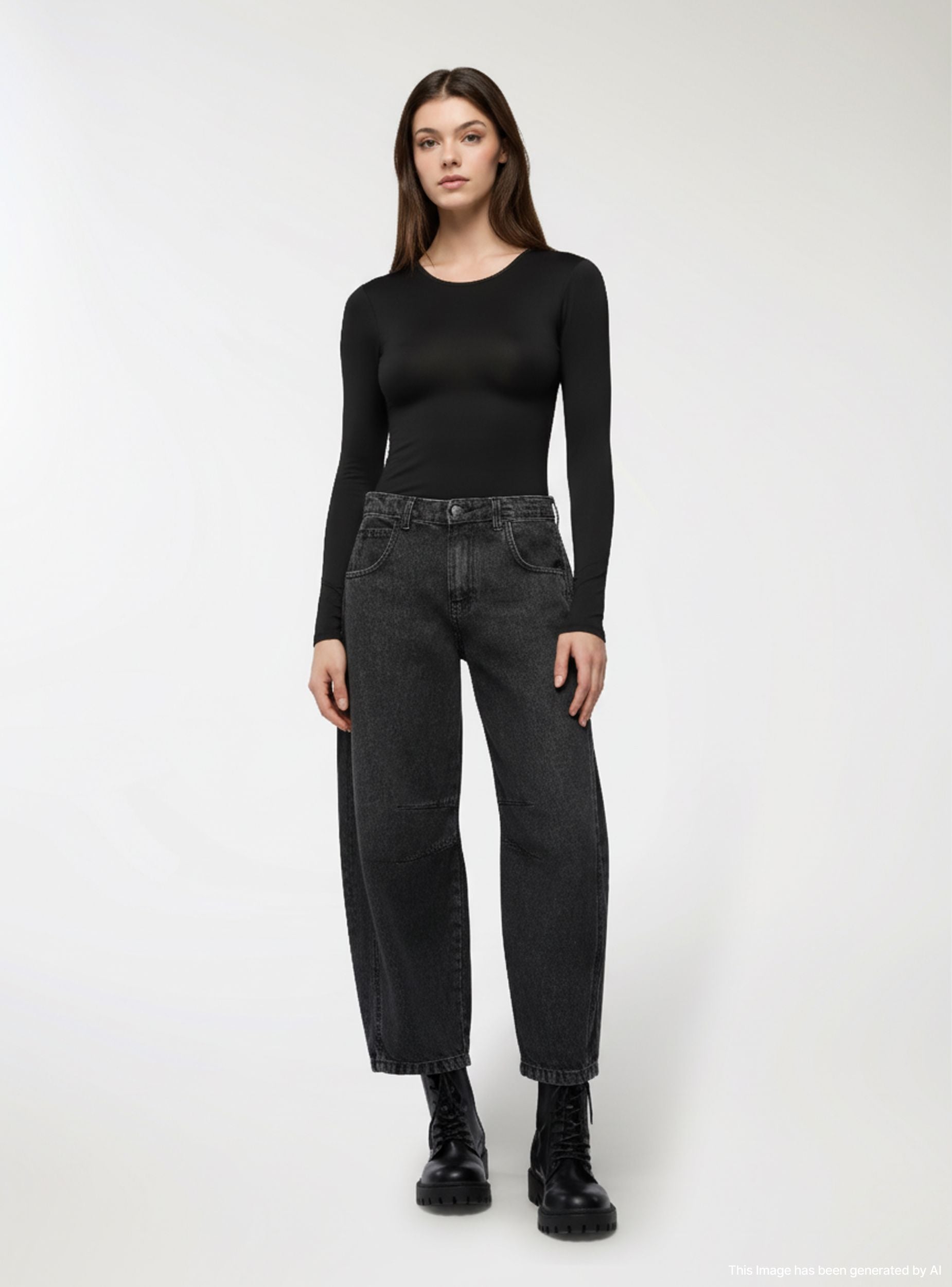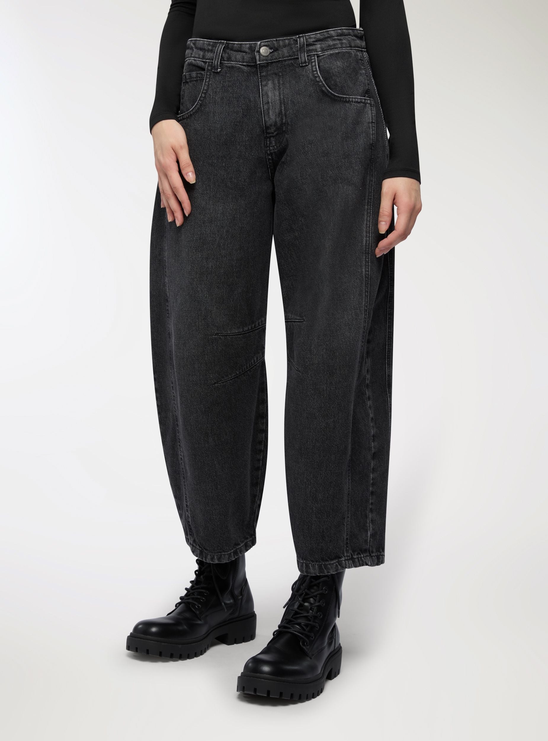 Ženske traperice u jednobojnoj varijanti s balon siluetom i širokim nogavicama, savršene za ležeran i urbani izgled. Strukirana visina struka s petljama za remen, zatvaranje na gumb i patentni zatvarač, pet praktičnih džepova. Horizontalni šavovi na nogavicama daju karakter i ističu liniju. Idealne uz majicu i tenisice za dnevni look, ili uz košulju i gležnjače za uređeniji outfit.
