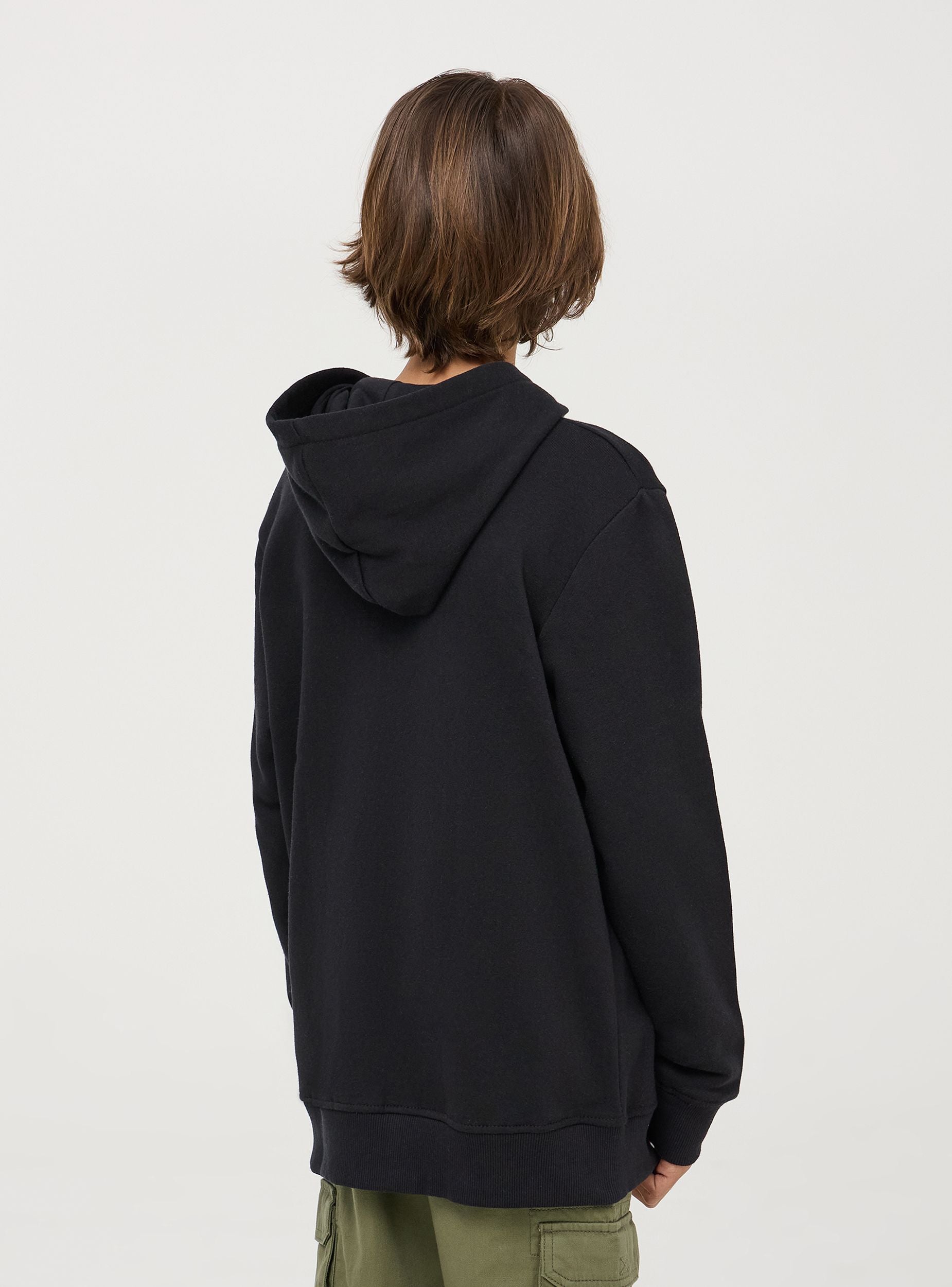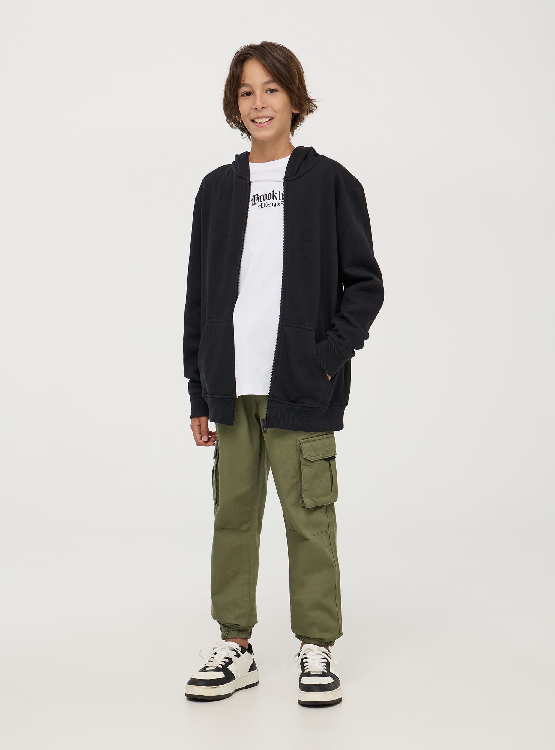 Dječja dukserica s kapuljačom izrađena je od teškog jednobojnog materijala. Opremljena je praktičnim prednjim zatvaračem i dva džepa s marsupijem, nudi funkcionalnost i toplinu. Dizajn uključuje elastične manžete za usko, ali udobno pristajanje. Idealna za ležerne kombinacije i svakodnevne aktivnosti, ova dukserica je nezaobilazna za zimu.Detalji
