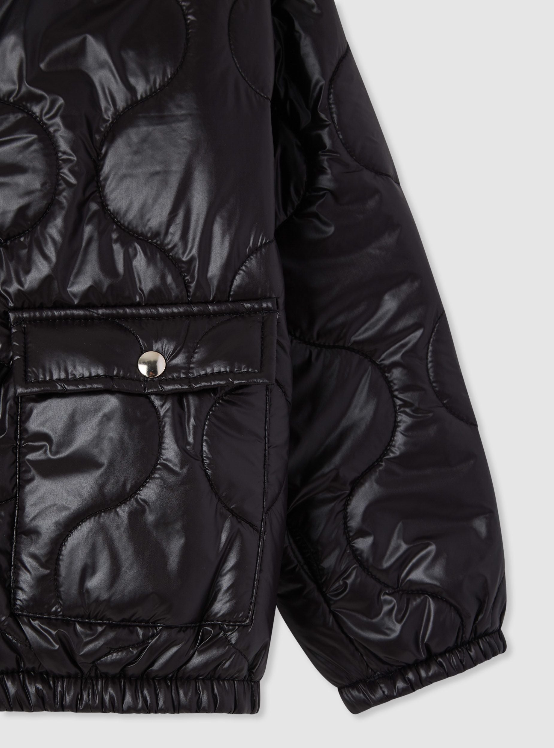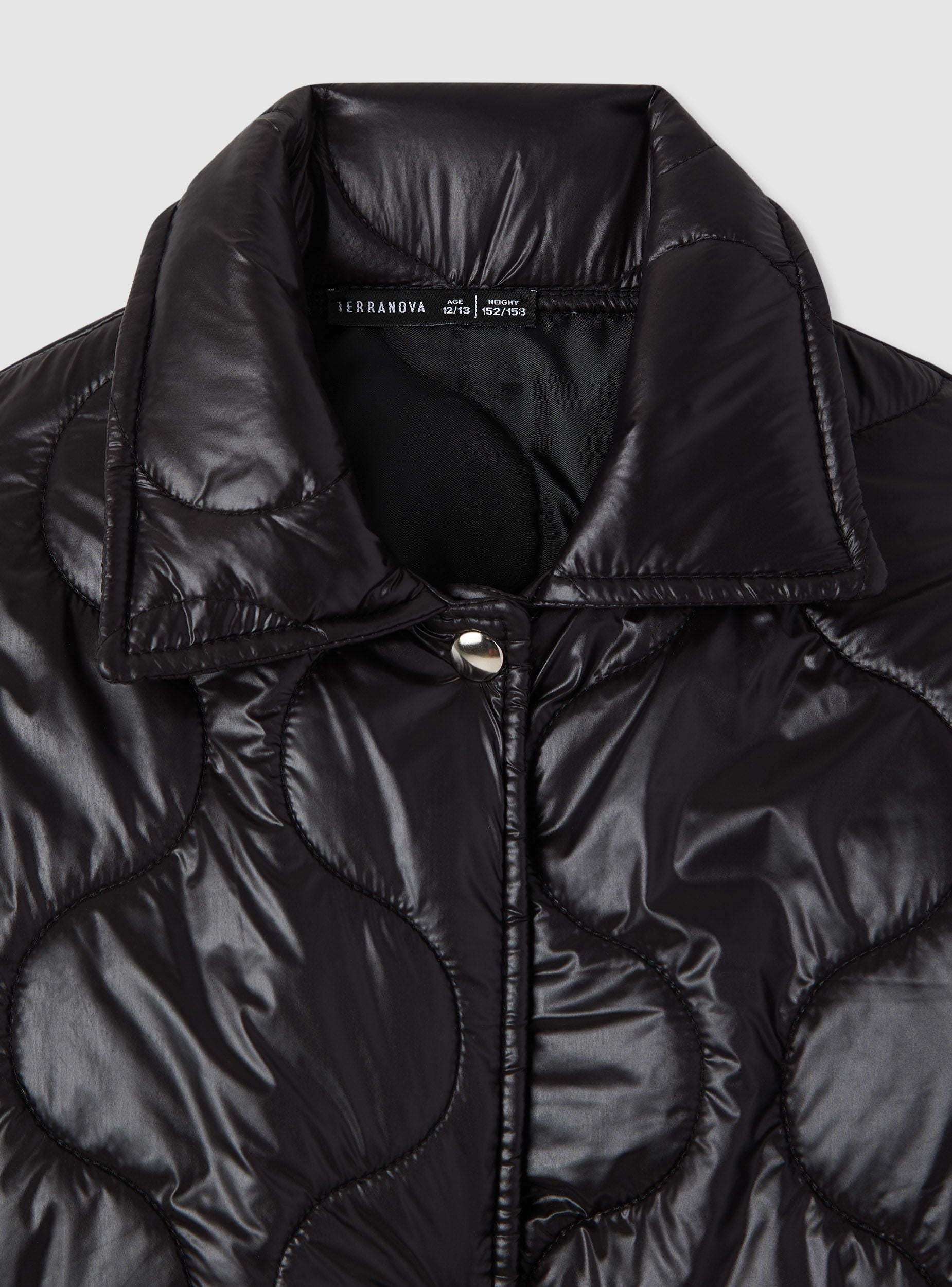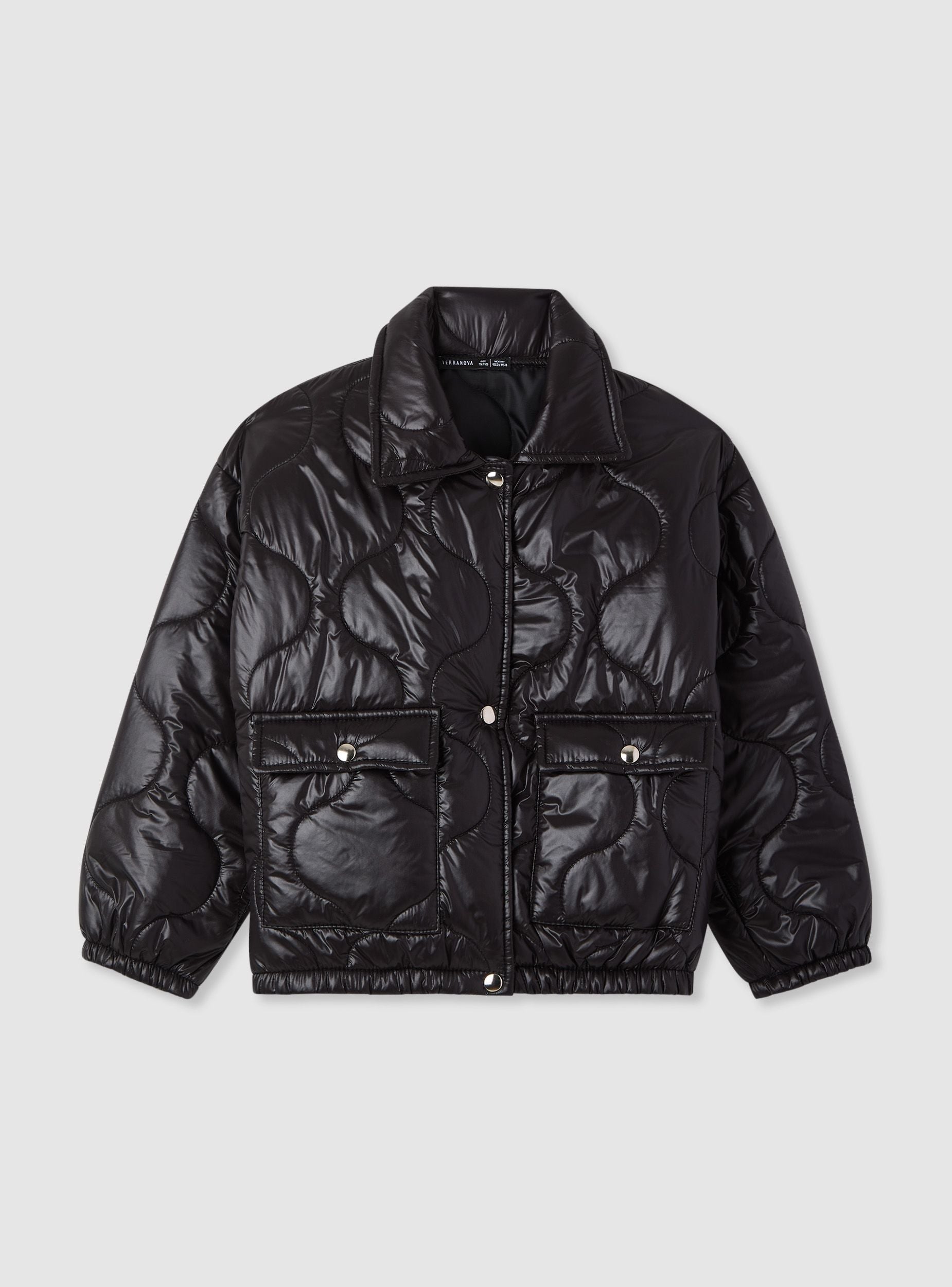 Jakna za djevojčice s prošivenim dizajnom, idealna za prijelazno razdoblje i gradske dane. Ovratnik poput košulje, dugi rukavi s elastičnim rubom i prednja kopča na drukere. Priloženi džepovi s preklopom dodaju praktičnost. Regularan kroj i jednobojna završna obrada, lako se kombinira s trapericama, tajicama ili suknjama za ležeran i moderan izgled.