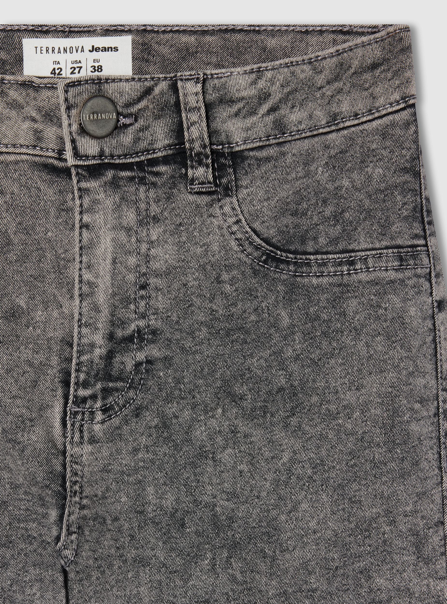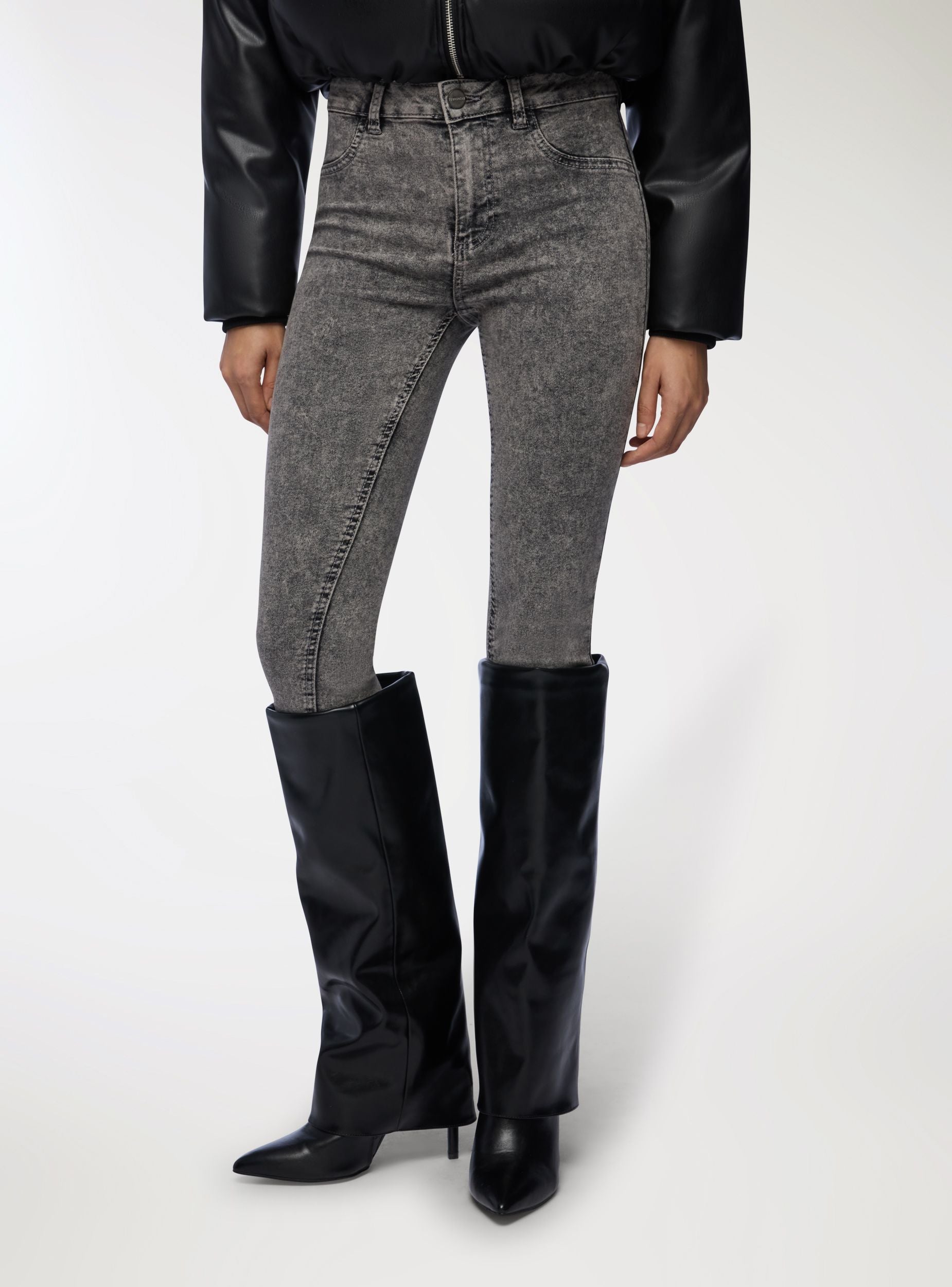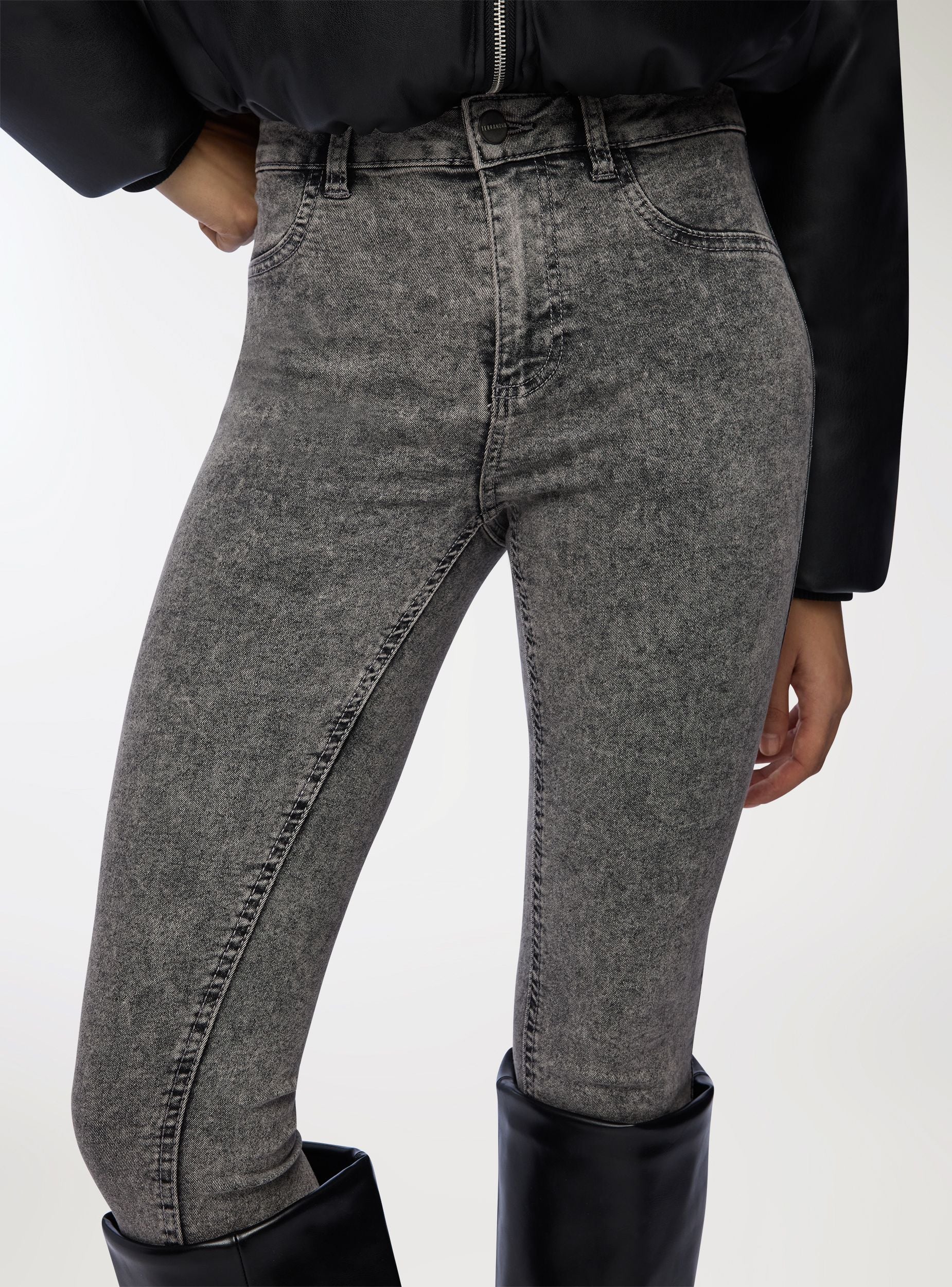 Ženske jeggins hlače uskog kroja, idealne za ležeran i moderan izgled. Imaju jednobojni dizajn koji ih čini svestranim za kombiniranje s majicama ili košuljama. Opremljene su kopčanjem na gumb i patentnim zatvaračem, pružaju udobnost i praktičnost. Savršene su za nošenje u različitim prilikama, od slobodnog vremena do neformalnih izlazaka.Detalji