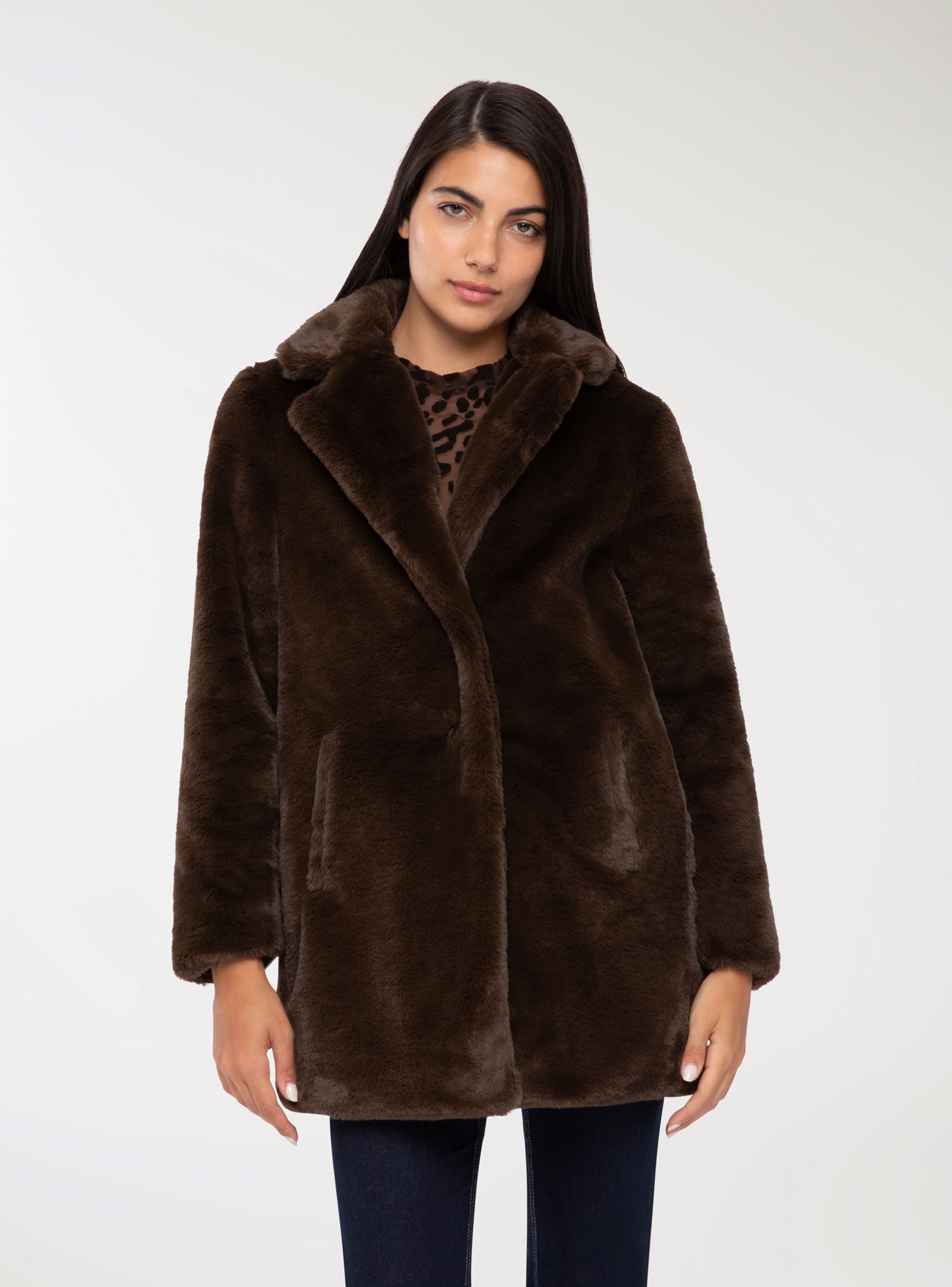 Kaput od umjetnog krzna s ovratnikom s reverima