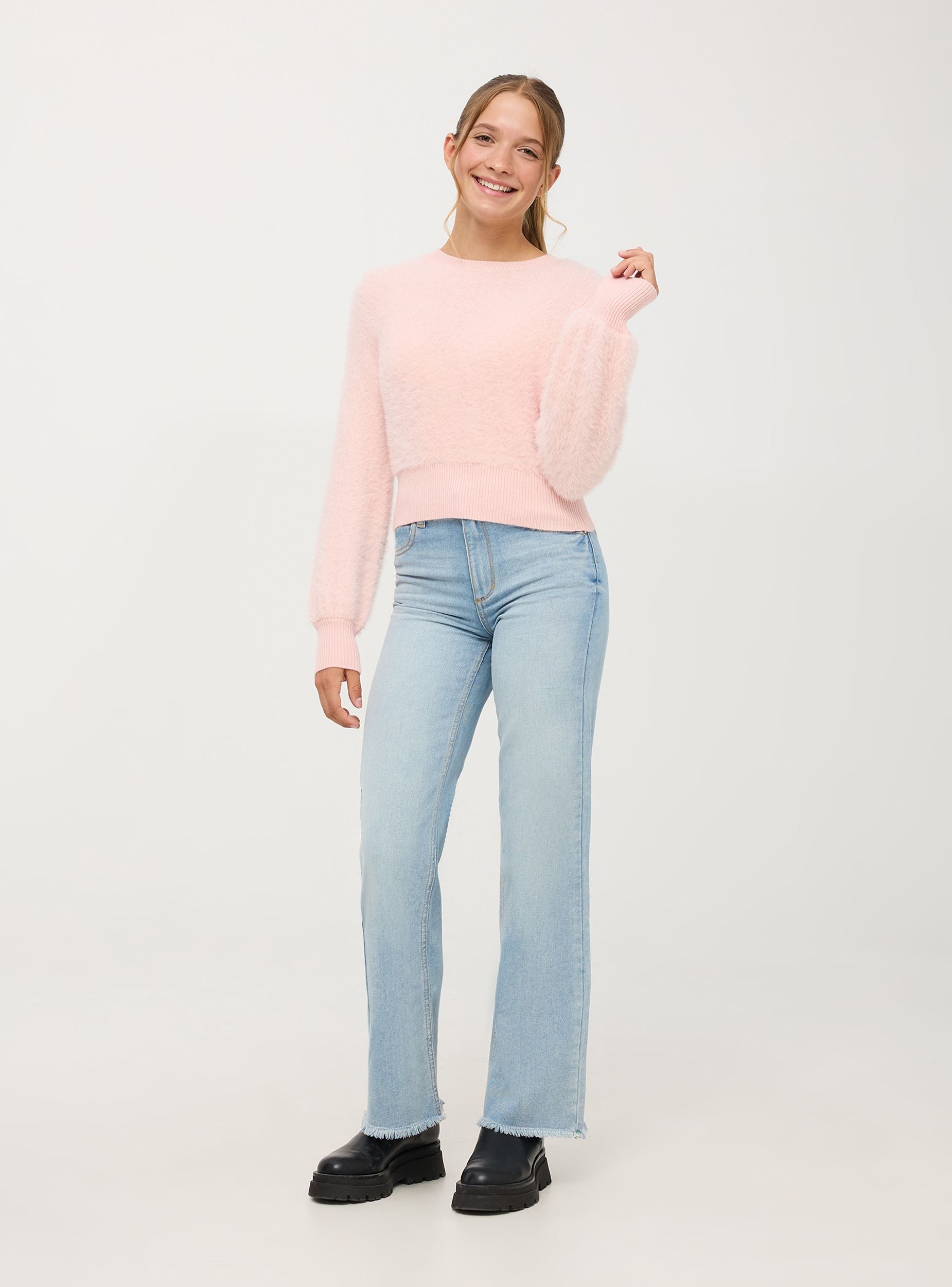 Dječja majica s dugim rukavima i okruglim izrezom, karakterizirana tkaninom u jednobojnoj boji s mekanim i toplim učinkom koji osigurava udobnost i stil. Manžetne, ovratnik i rub s rebrastim uzorkom dodaju dašak elegancije i prilagodljivu siluetu. Idealna za ležerne prigode, poput školskih dana ili izlazaka s prijateljima i obitelji, ova majica nudi svestranost i stil, lako se kombinira za uvijek moderni izgled.Detalji