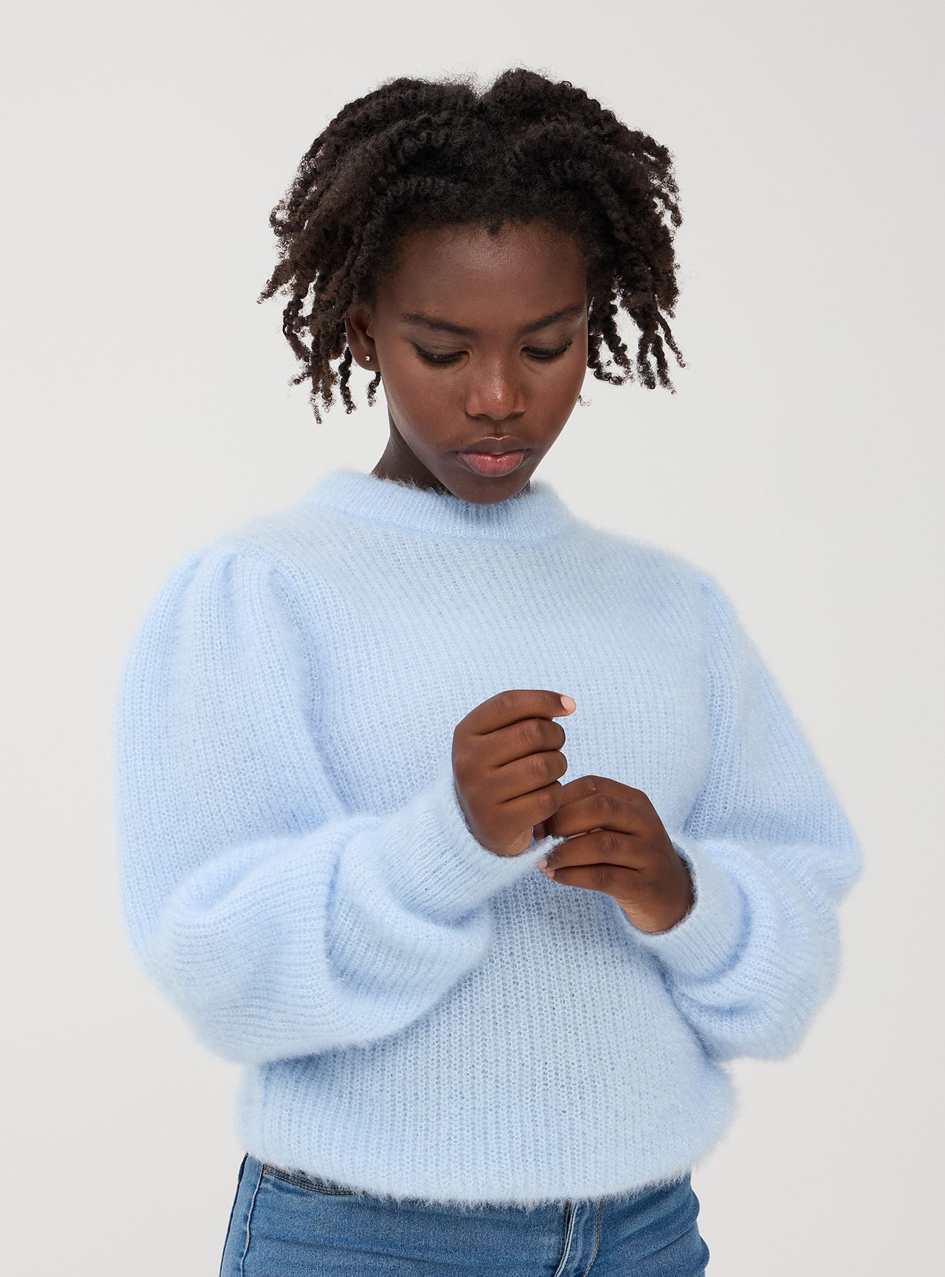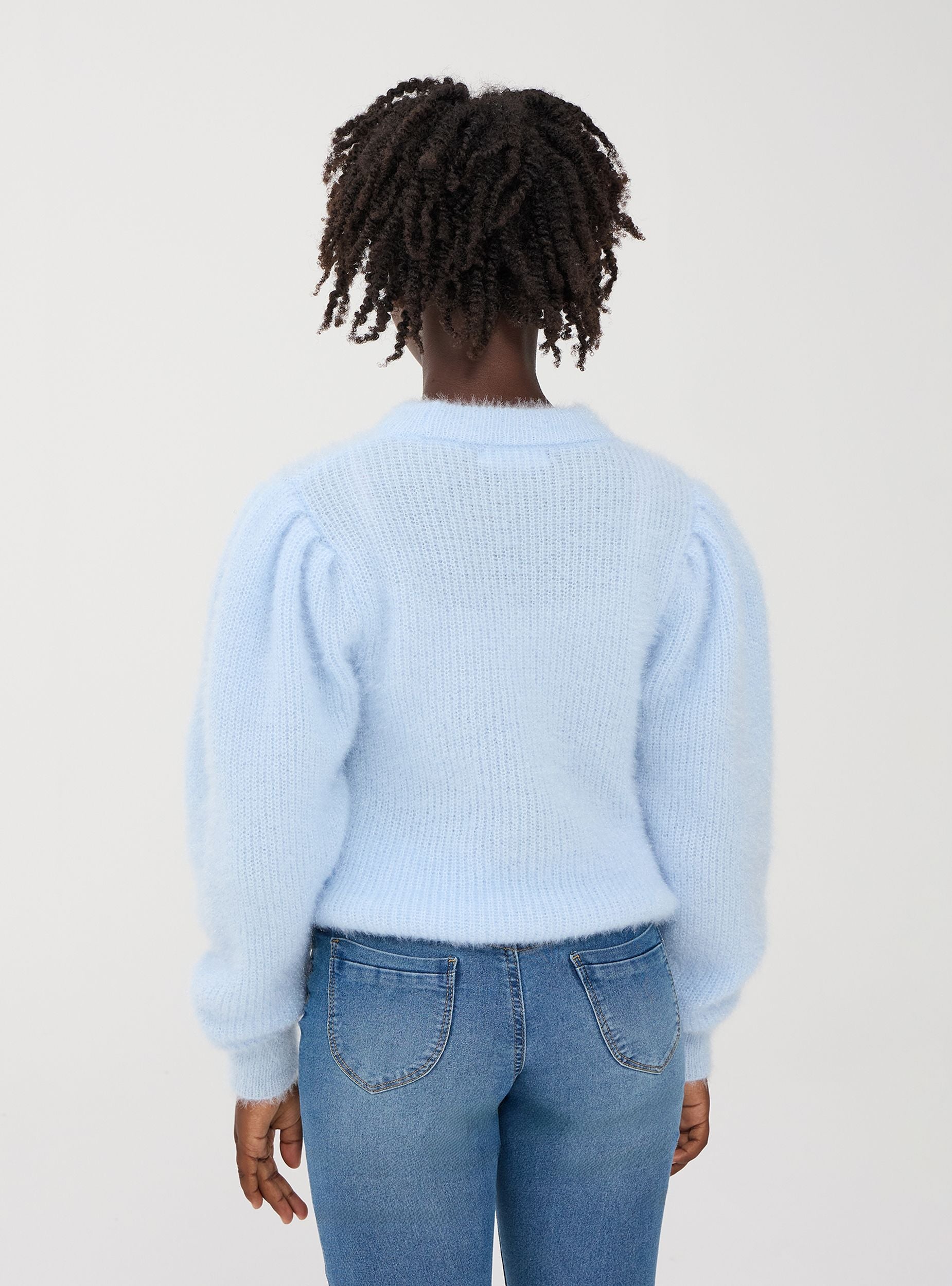 Dječja majica s okruglim izrezom i dugim rukavima. Tkanina u jednobojnoj boji, mekana i udobna, pruža izvanrednu udobnost, čineći je savršenom za hladne dane. Lagano napuhane rukave dodaju jedinstveni stil. Ova majica je savršena za ležeran izgled za školu ili tijekom slobodnog vremena. Lako se kombinira s trapericama ili tajicama, stvarajući toplu i modernu kombinaciju za svaku priliku.
