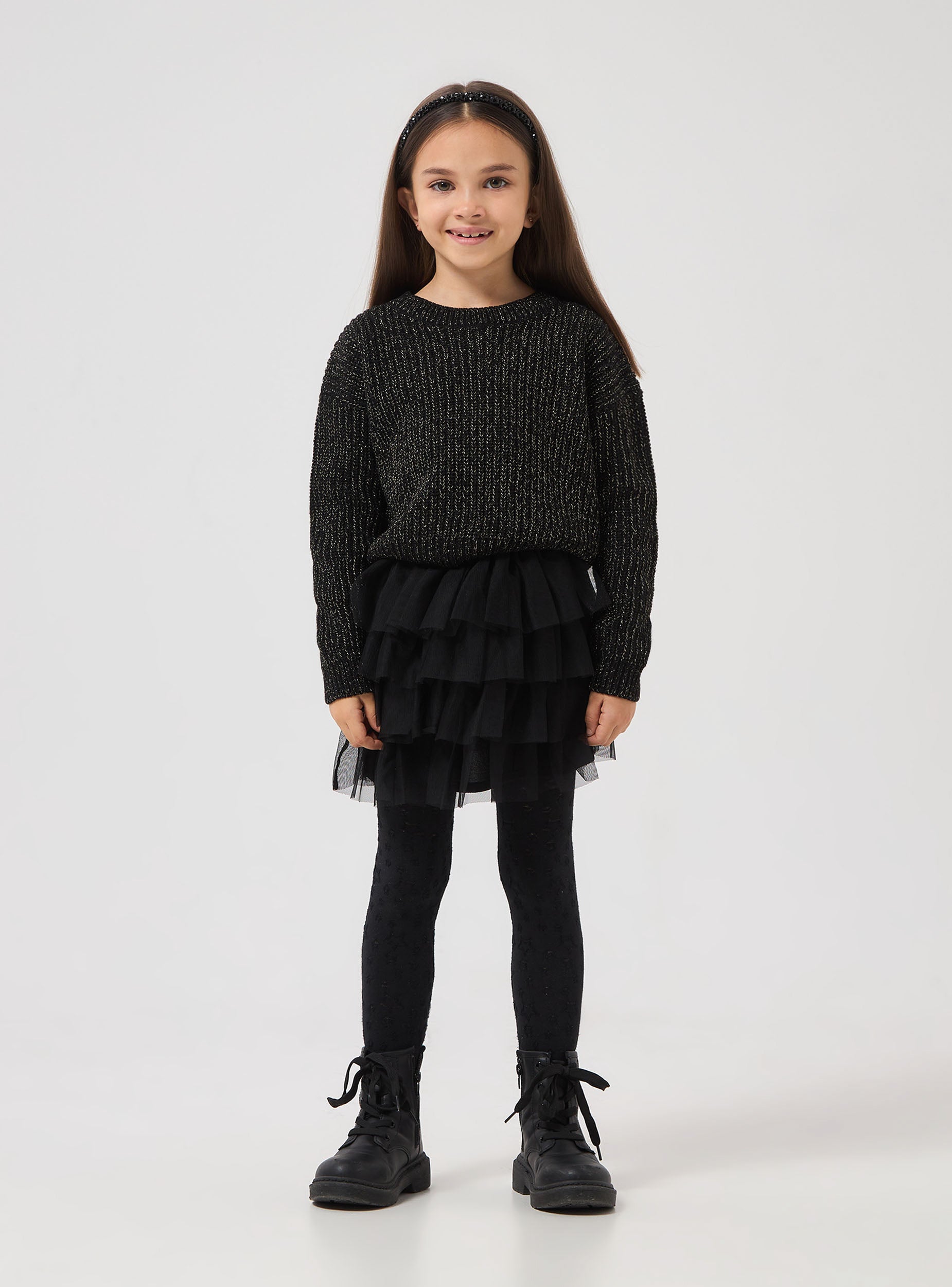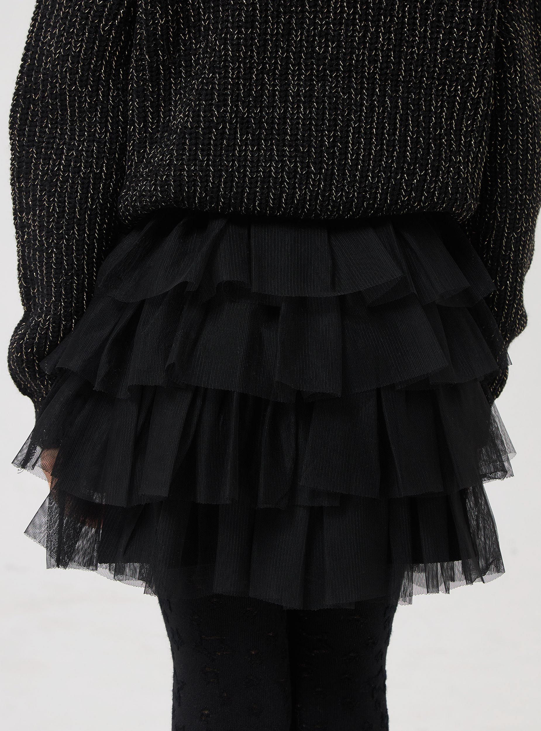 Gonna da bambina a balze in tulle. Elastico in vita. Lunghezza sopra al ginocchio.