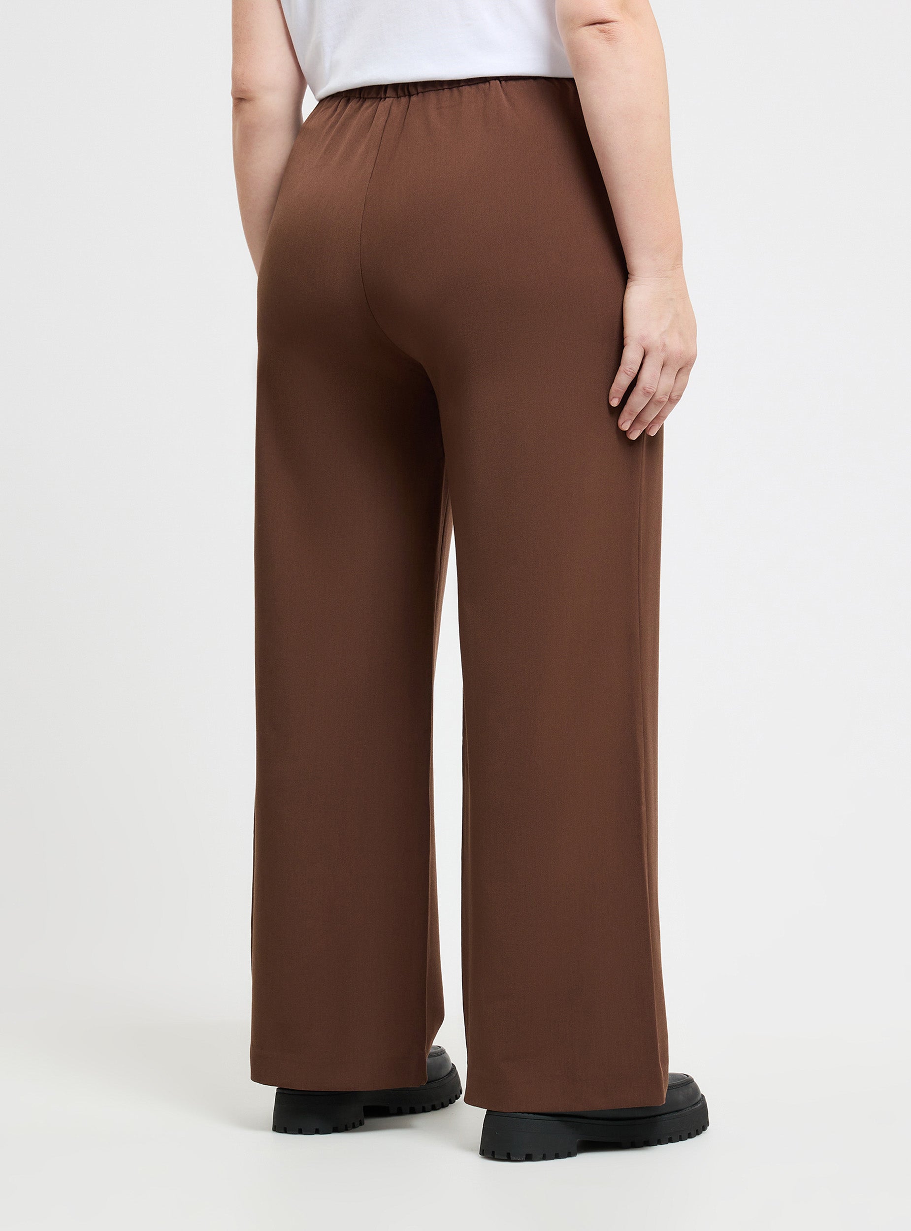 Pantaloni lunghi da donna a gamba ampia. Elastico dietro in vita, pinces frontali. Tessuto tinta unita, linea Curvy.