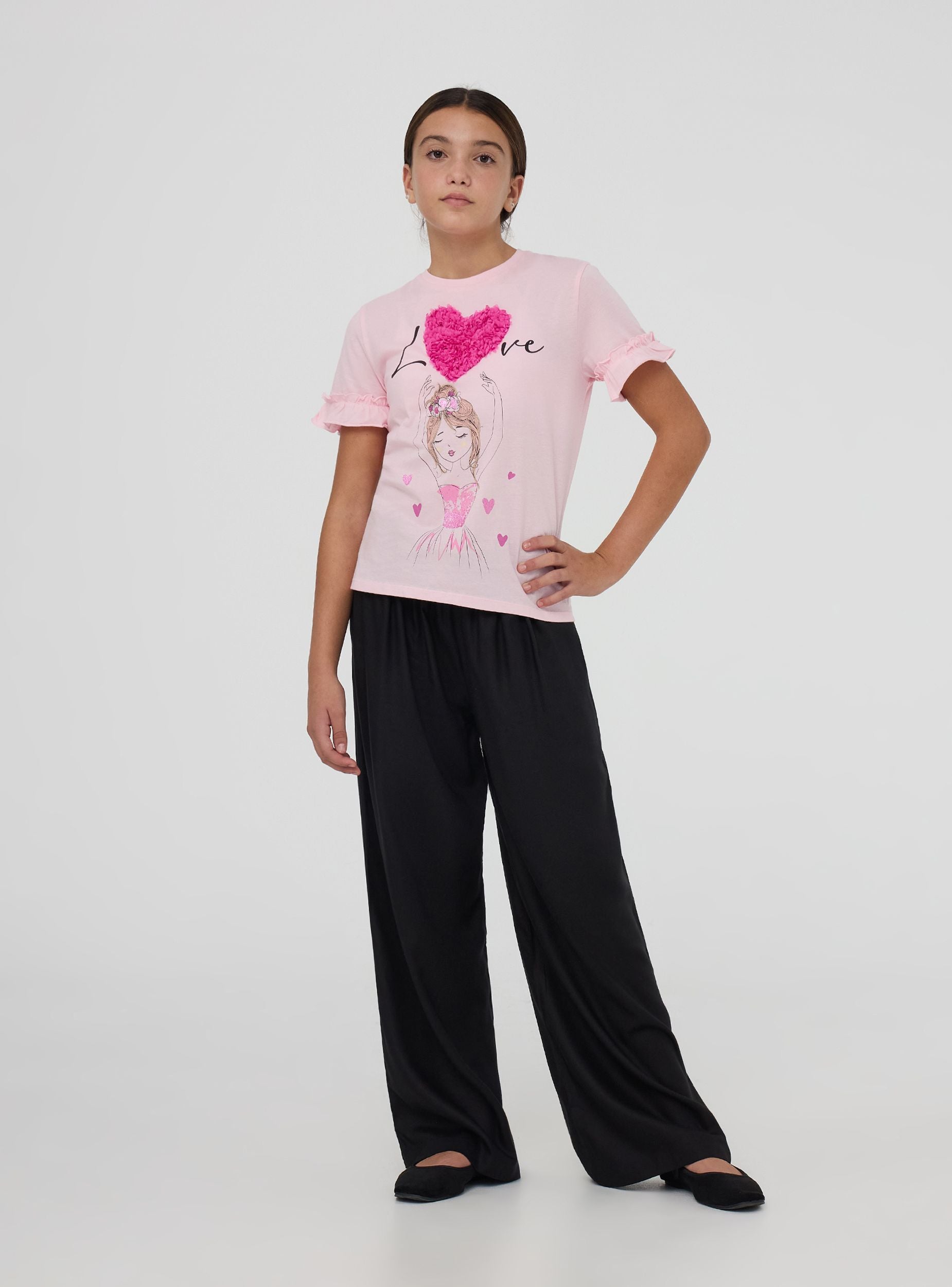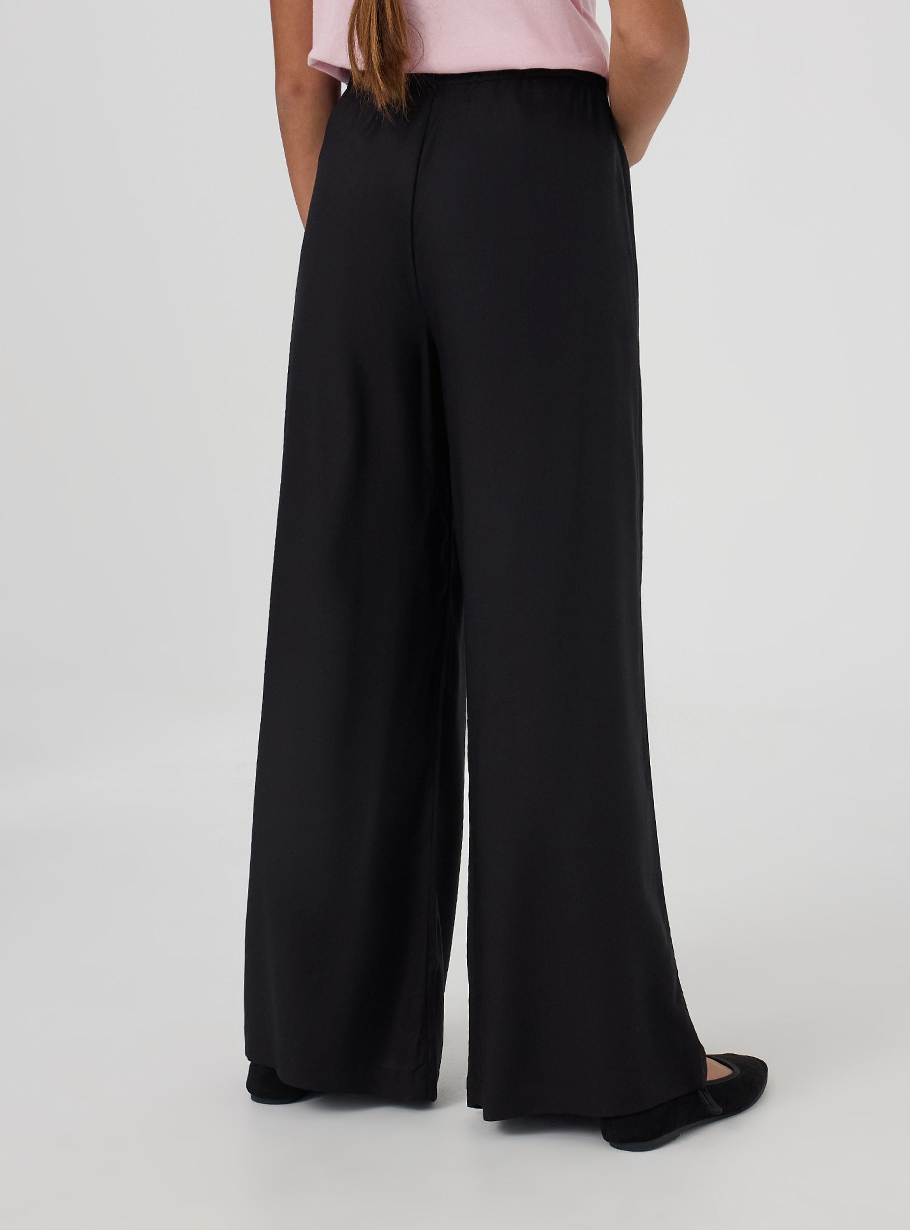 Hlače za djevojčice s jedinstvenim dizajnom, dugim krojem i širokim fitom. Izrađene od mekog viskoznog materijala, savršene su za osiguravanje udobnosti i slobode kretanja u svakoj prilici. Remen u struku dodaje stilski detalj, naglašavajući siluetu i omogućujući prilagodljivu veličinu. Idealni komad za razigrane i sofisticirane lookove.