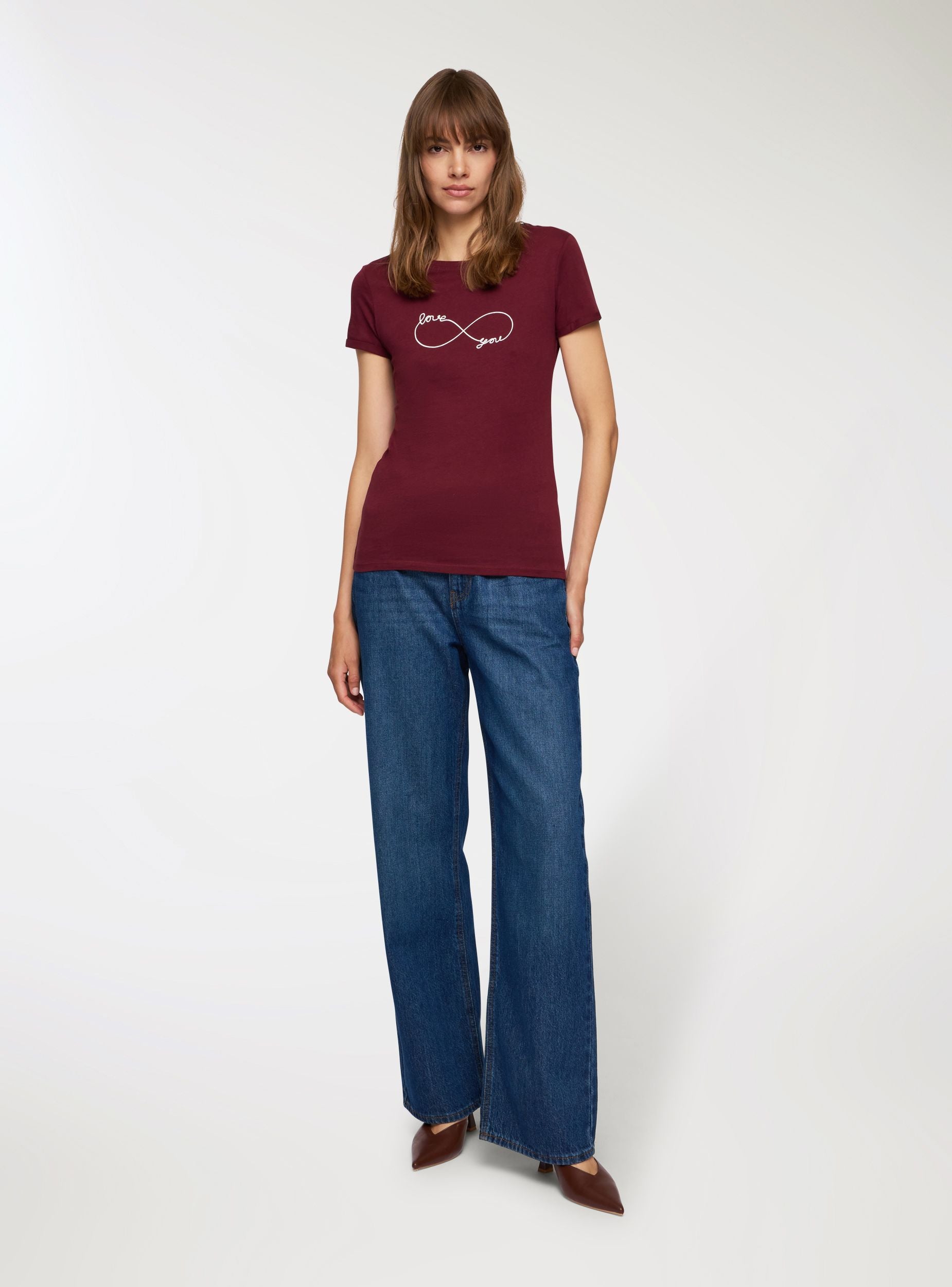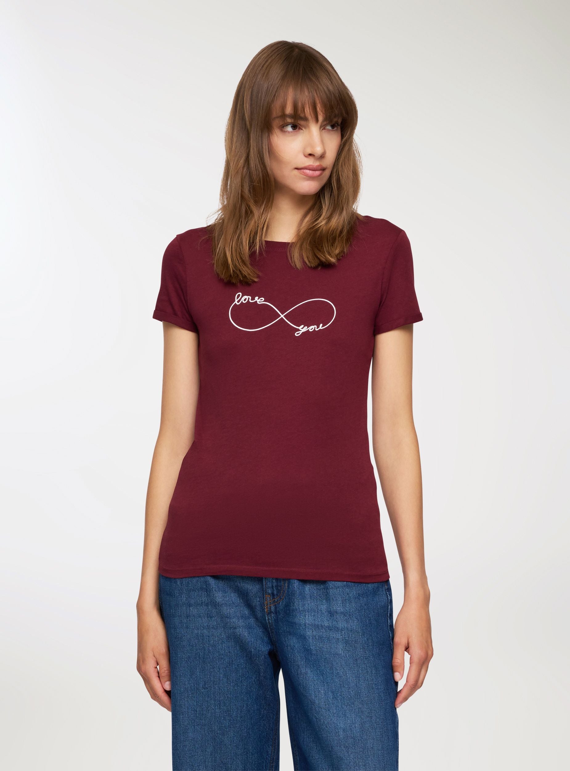 Ženska majica s printom beskonačnosti i natpisom "love you", idealna za ležeran i svestran izgled. Savršena za dodavanje romantičnog dodira vašim kombinacijama. Ova majica nudi moderan i udoban dizajn. Slim fit kroj ističe siluetu, čineći je pogodnom za razne prilike, od slobodnog vremena do neformalnih izlazaka. Osnovni komad za obogaćivanje svakodnevnog ormara.Detalji