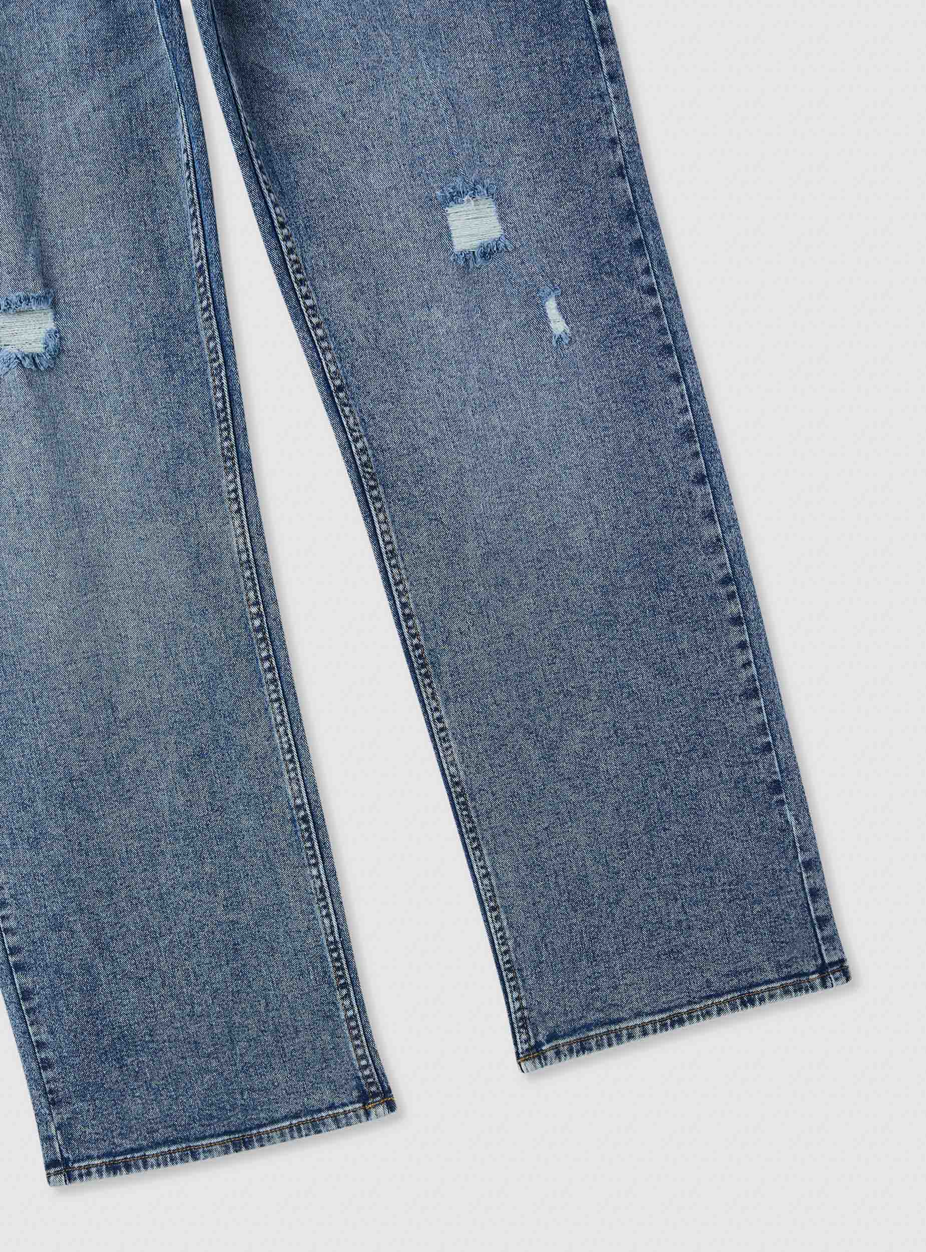 Traperice za žene u jednobojnoj varijanti s ravnim nogavicama i detaljima s poderotinama sprijeda. Pet džepova i petlje za remen u struku, zatvaranje na gumb i patentni zatvarač. Regularan kroj čini ih udobnima za svakodnevnu upotrebu, savršene uz majicu i tenisice za slobodno vrijeme ili uz košulju i blejzer za urbani izgled.Detalji