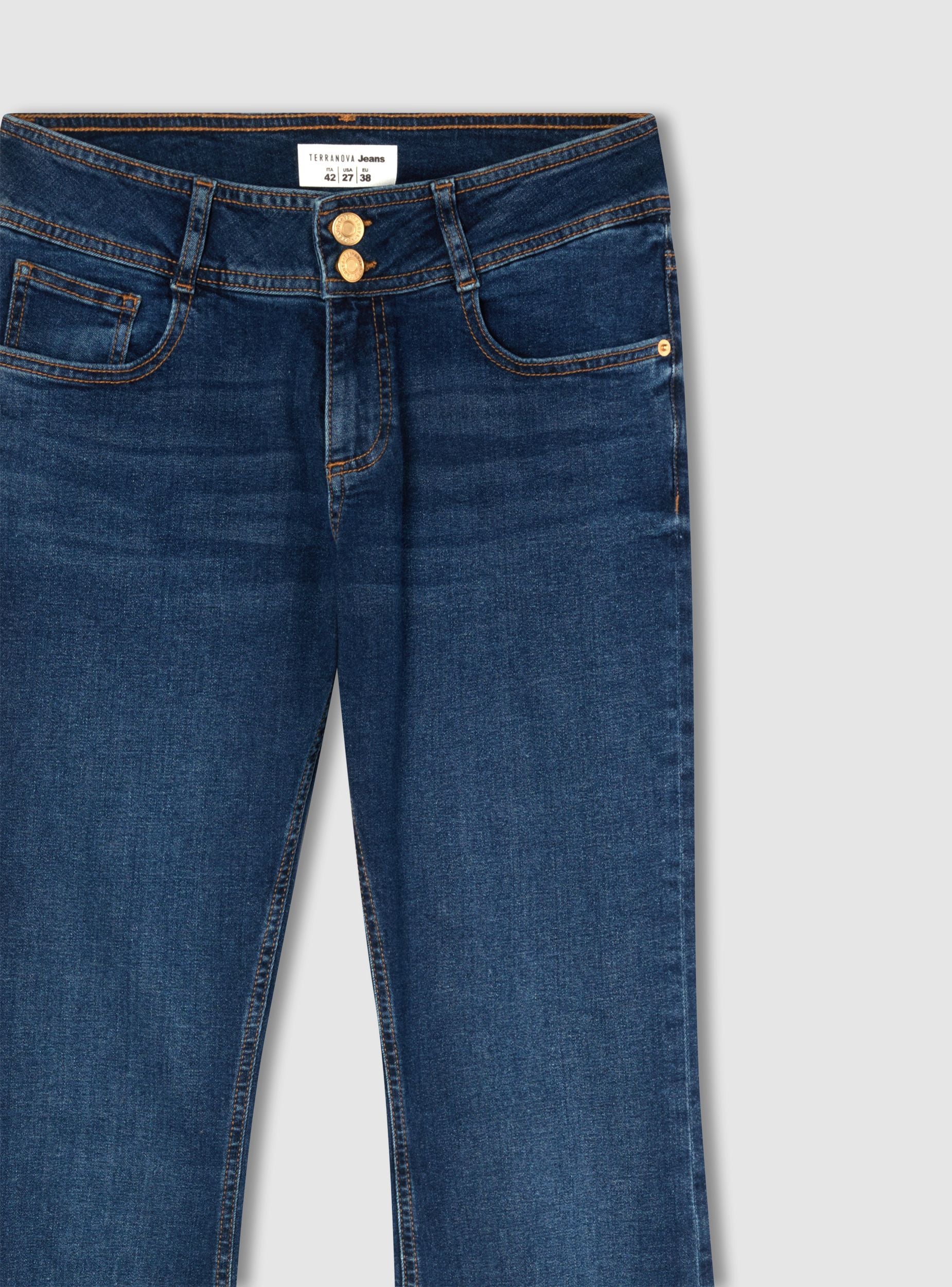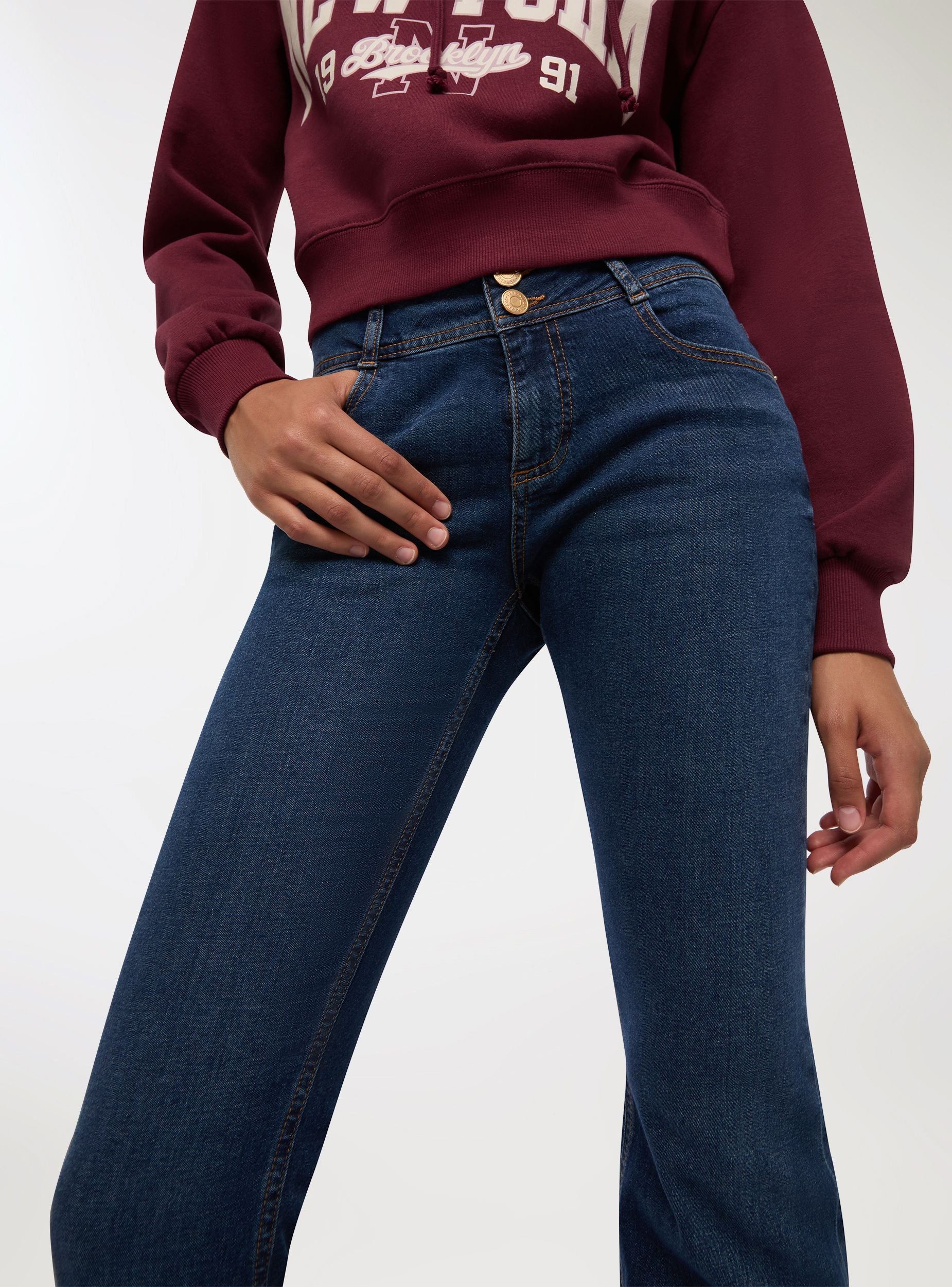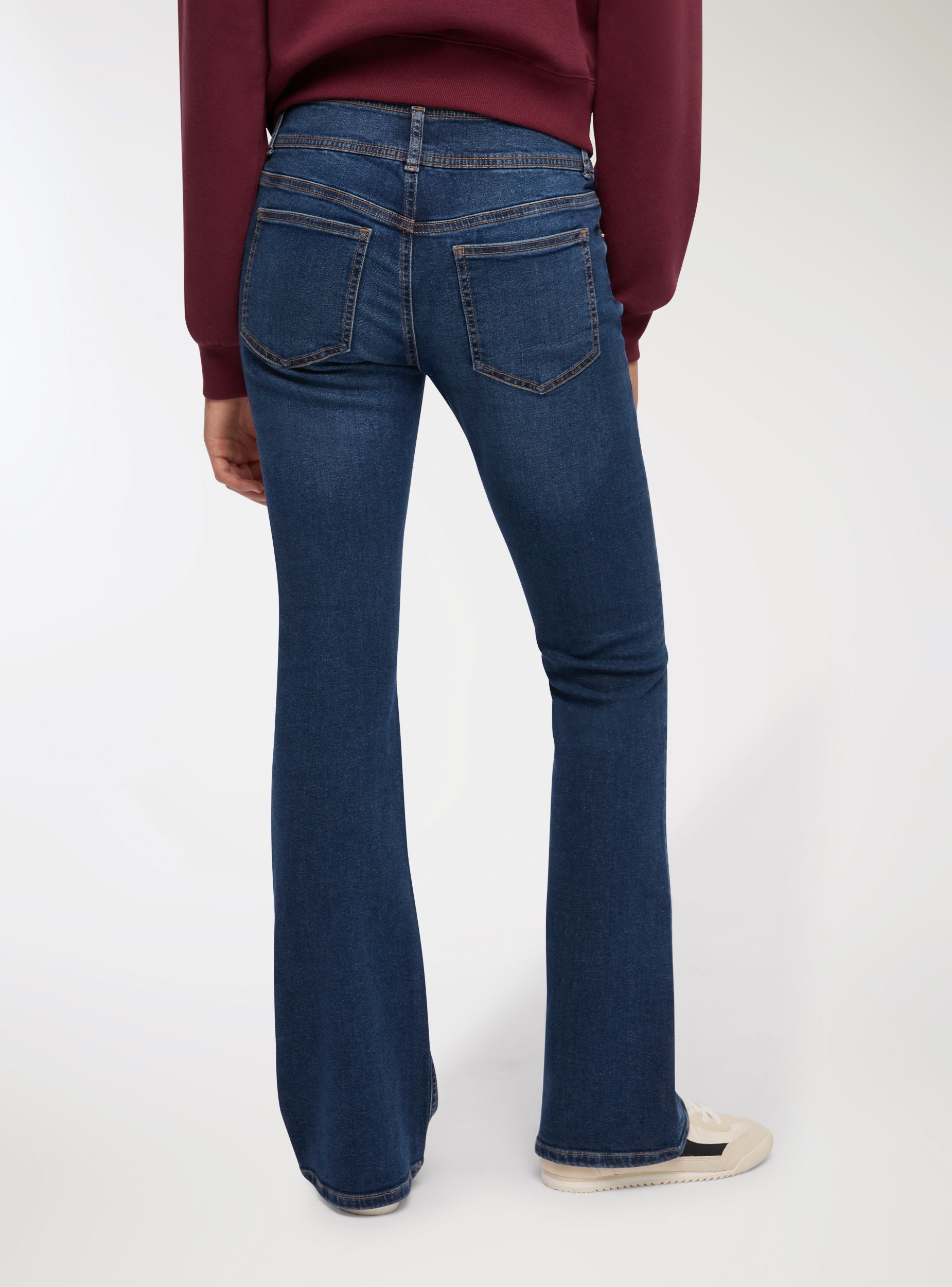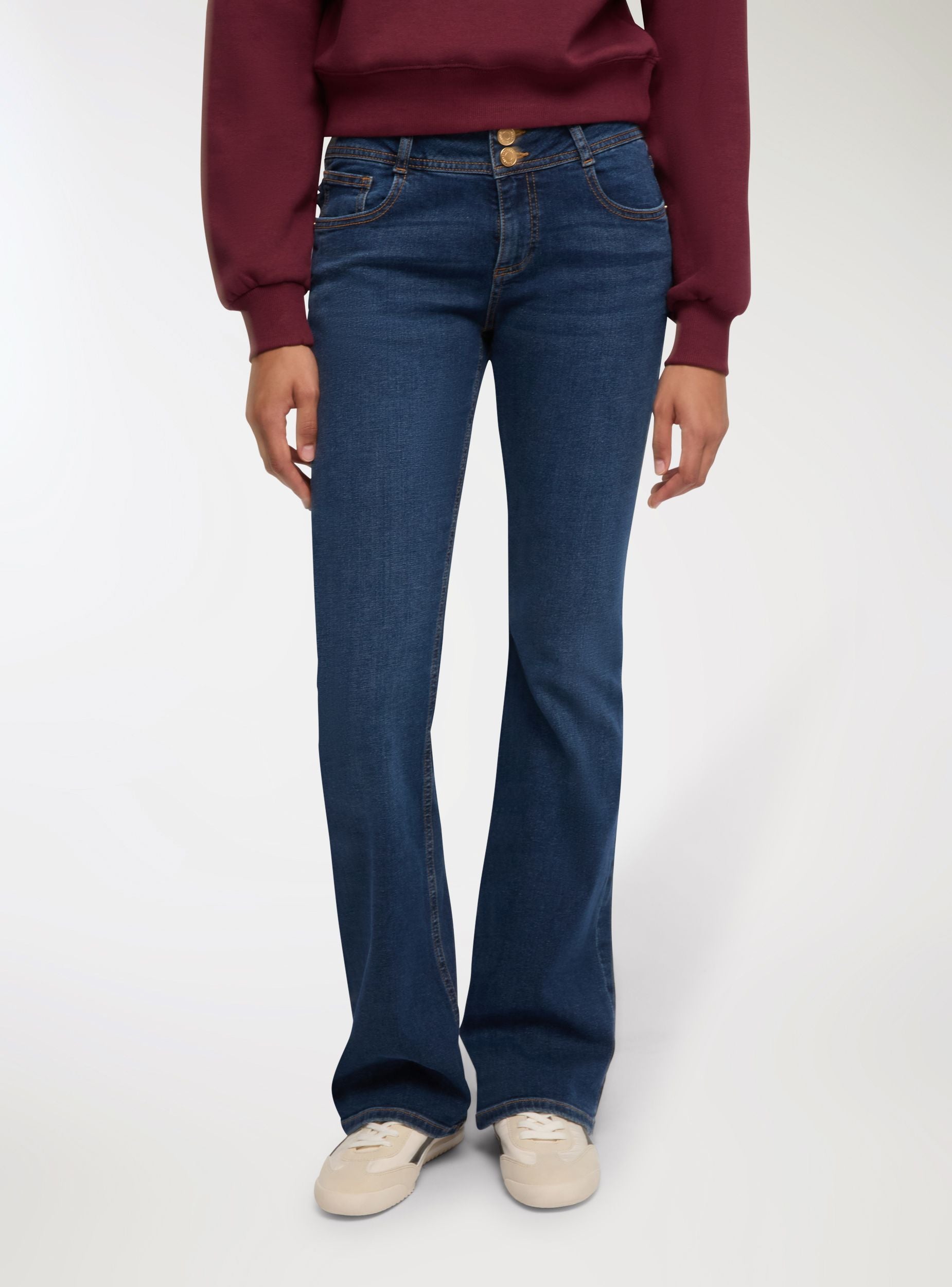 Ženske traperice s proširenim krojem, idealne za ležeran i svestran izgled. Imaju nisko struk i zatvaranje na dva gumba, s prednjim i stražnjim džepovima za praktičnost. Savršene za kombiniranje s majicama ili košuljama za svakodnevni outfit. Njihov prošireni kroj dodaje moderan štih i prilagođava se različitim neformalnim prilikama.Detalji