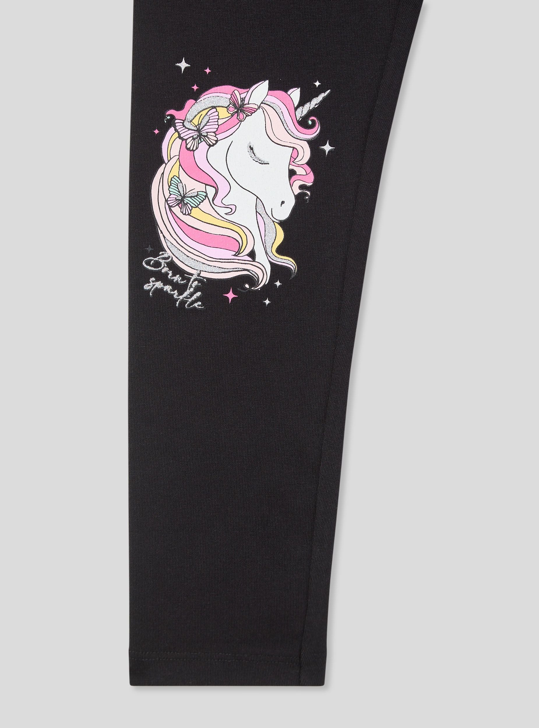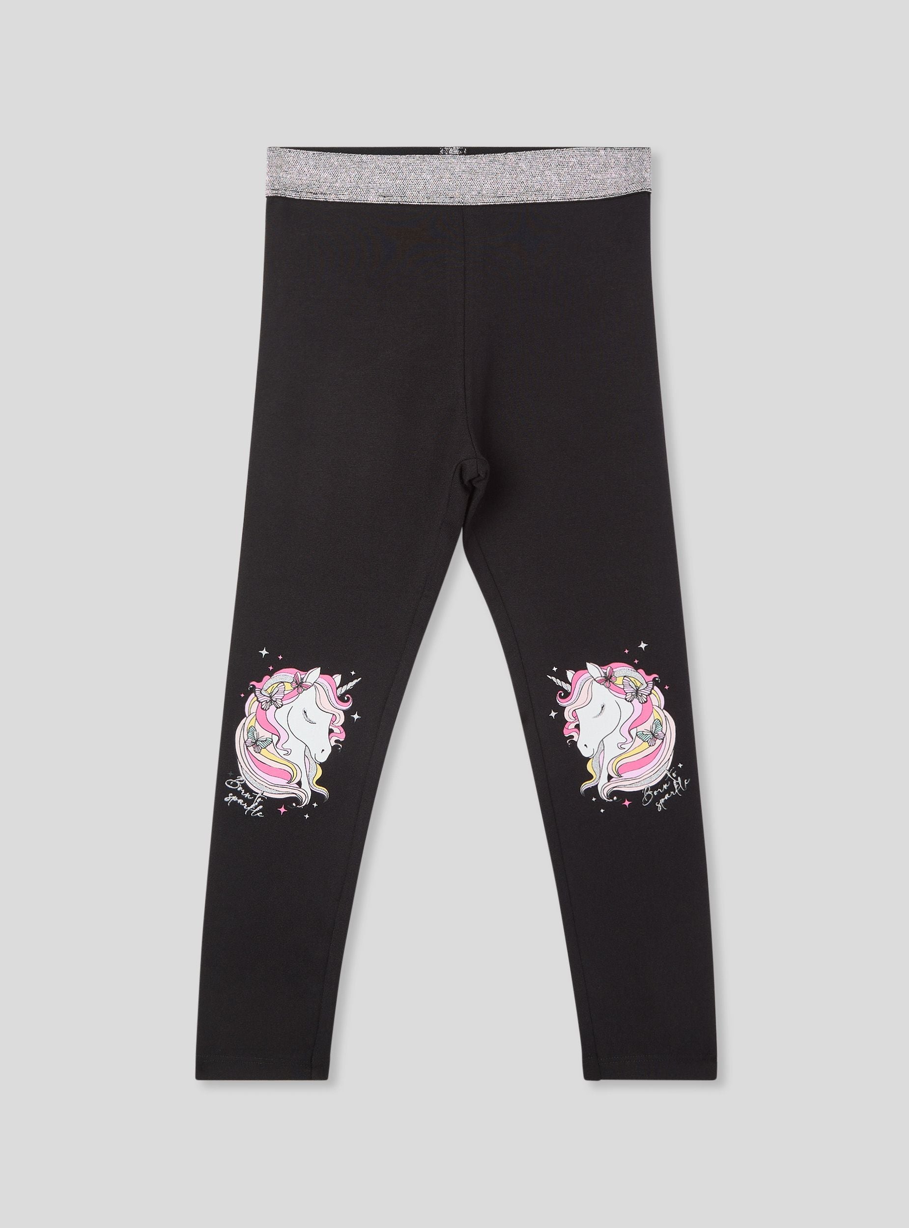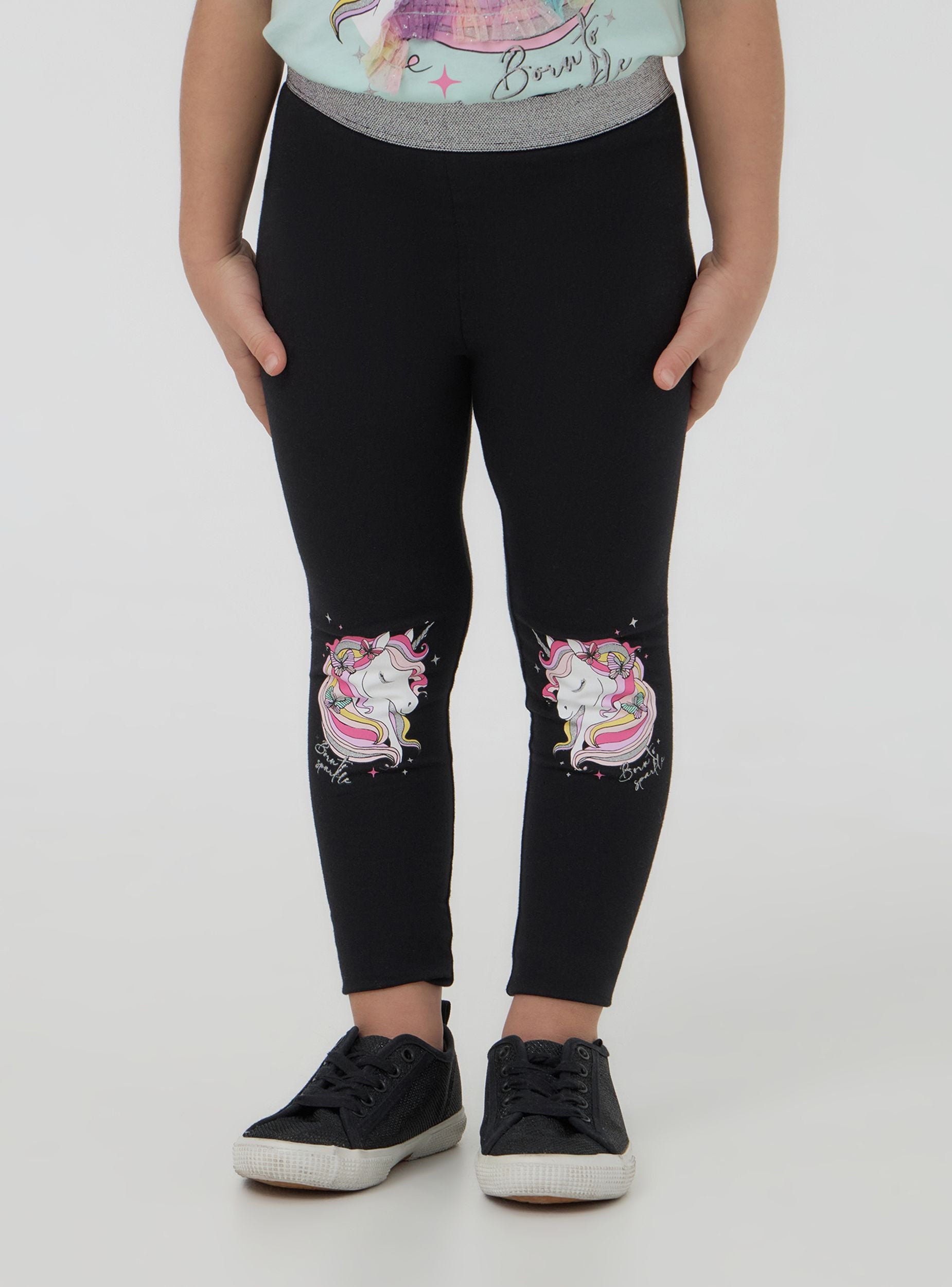 Elastične tajice za djevojčice dugog dizajna, savršene za one koji vole razigrane i maštovite detalje. Print jednoroga na koljenima dodaje magični dodir odjevnom predmetu, čineći ga jedinstvenim i privlačnim. Sjajni detalji na printu daju posebnu blistavost, stvarajući svjetlucavi efekt koji privlači pažnju. Elastična struk u lurexu upotpunjuje izgled, nudeći dekorativni element koji sjaji i dodaje stil. Idealne za udoban, ali efektan izgled, ove tajice osmišljene su da unesu dašak veselja i mašte u svakodnevnu odjeću za najmlađe.Detalji