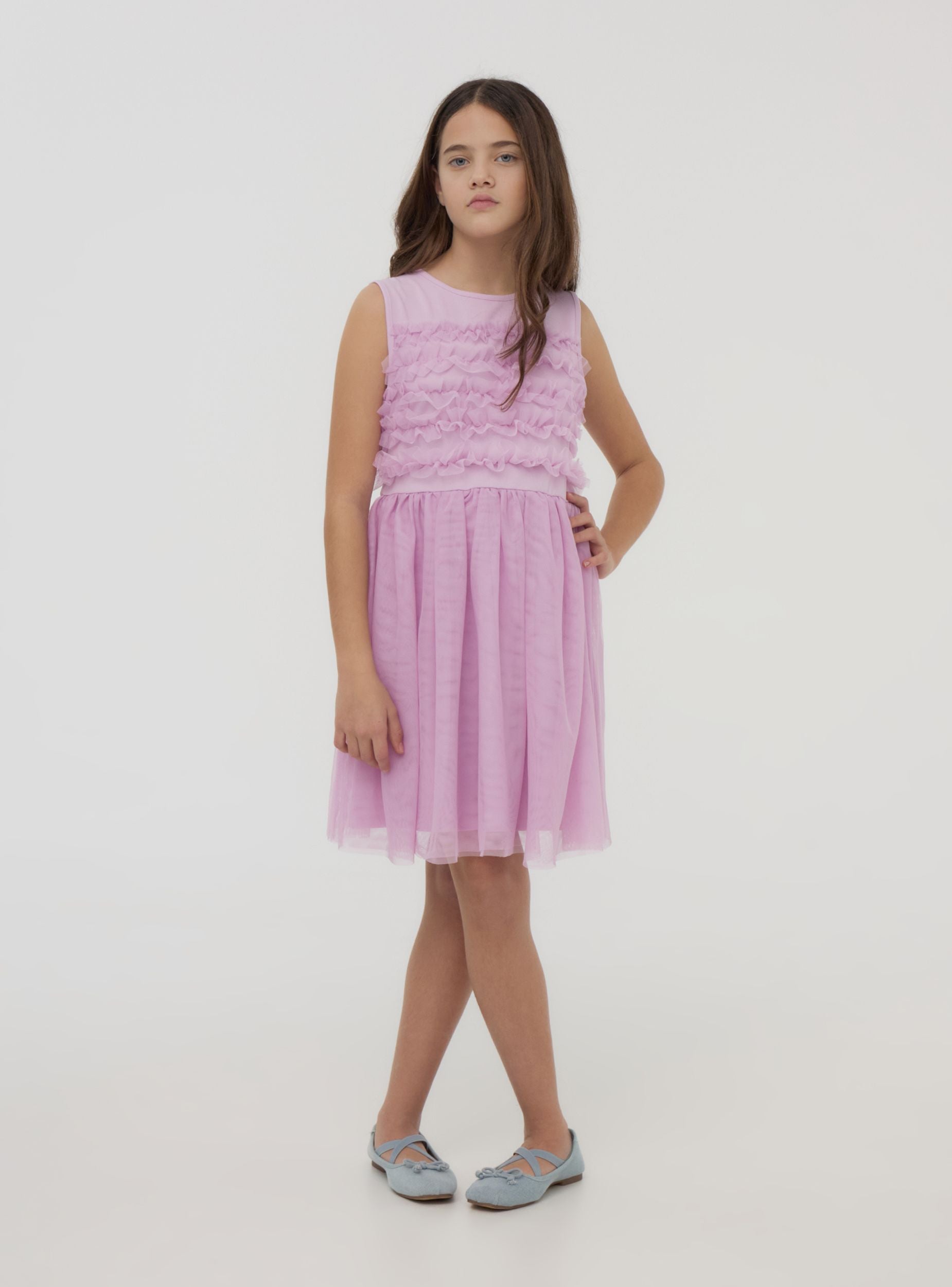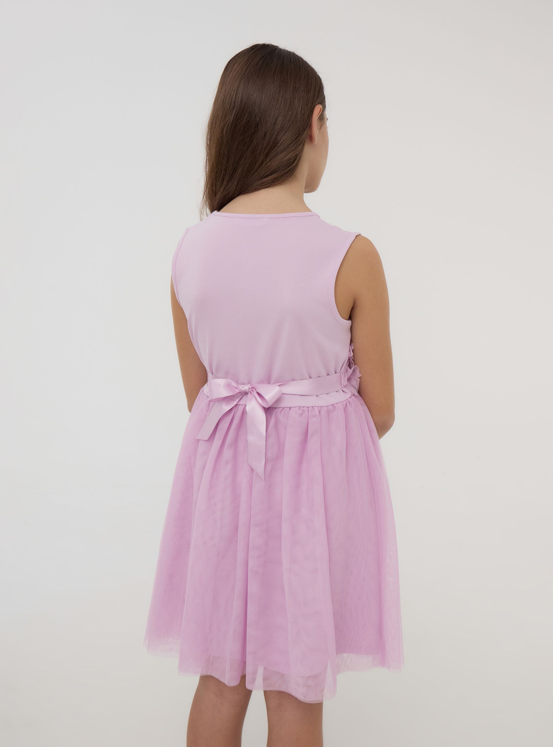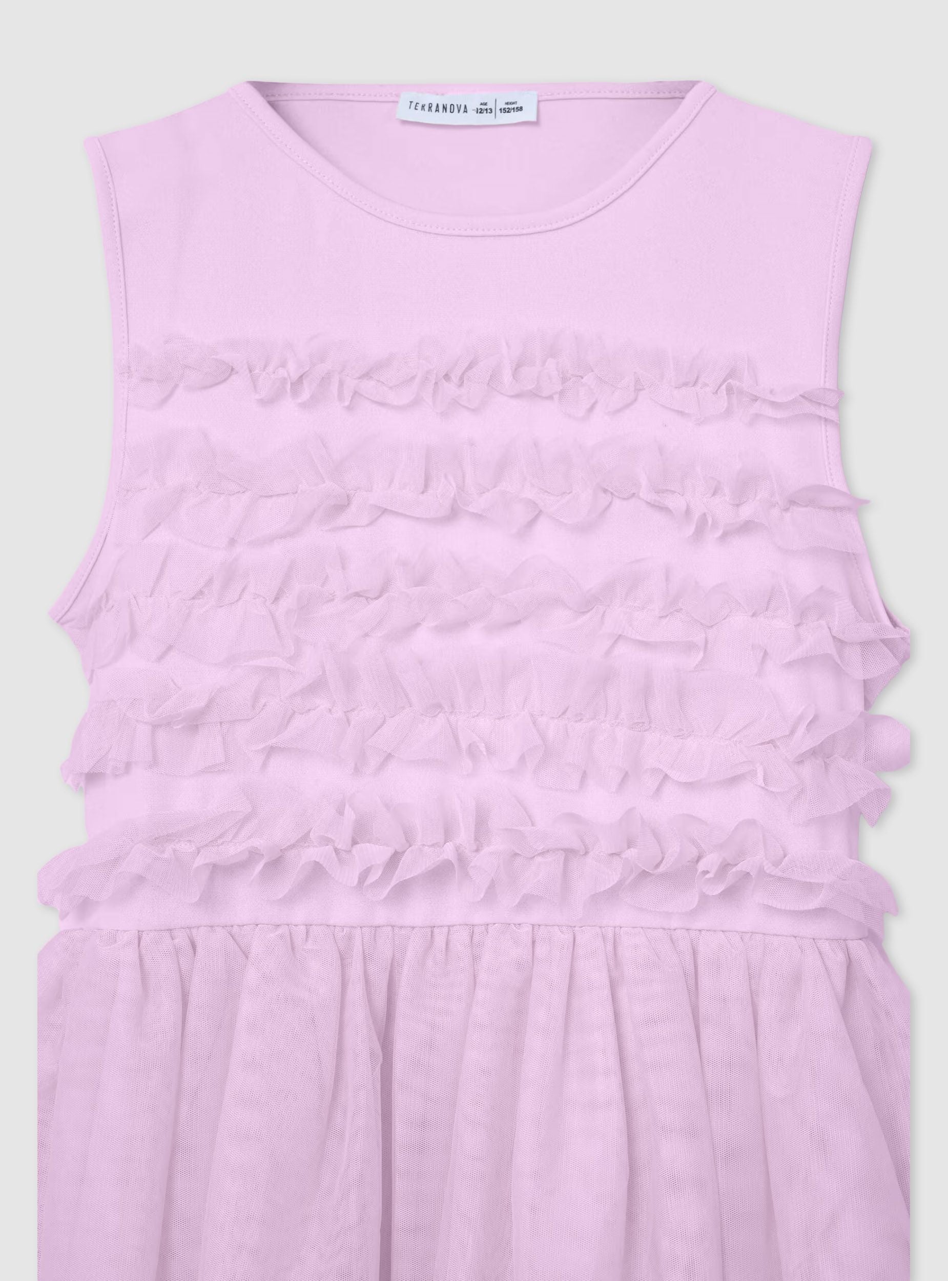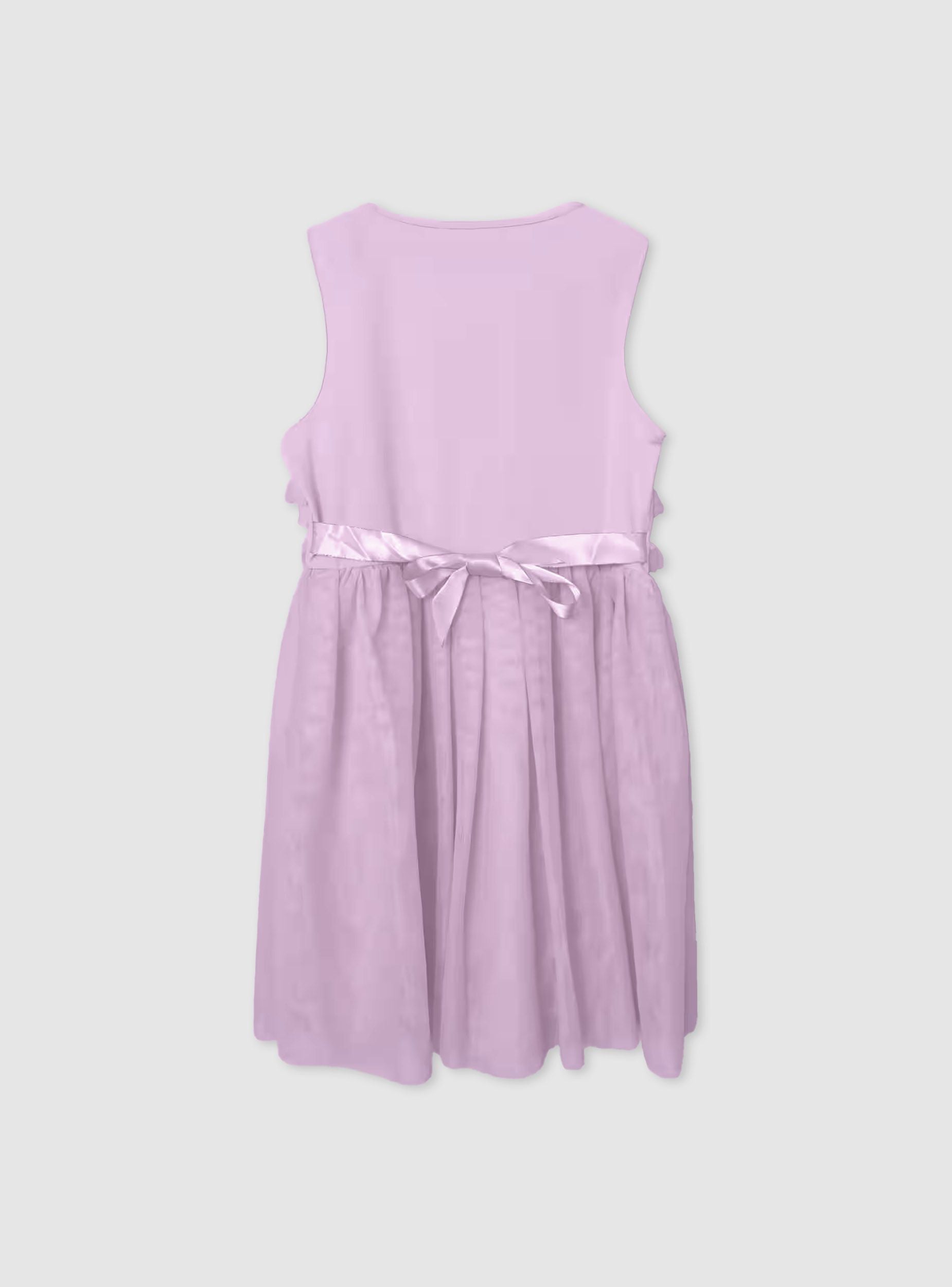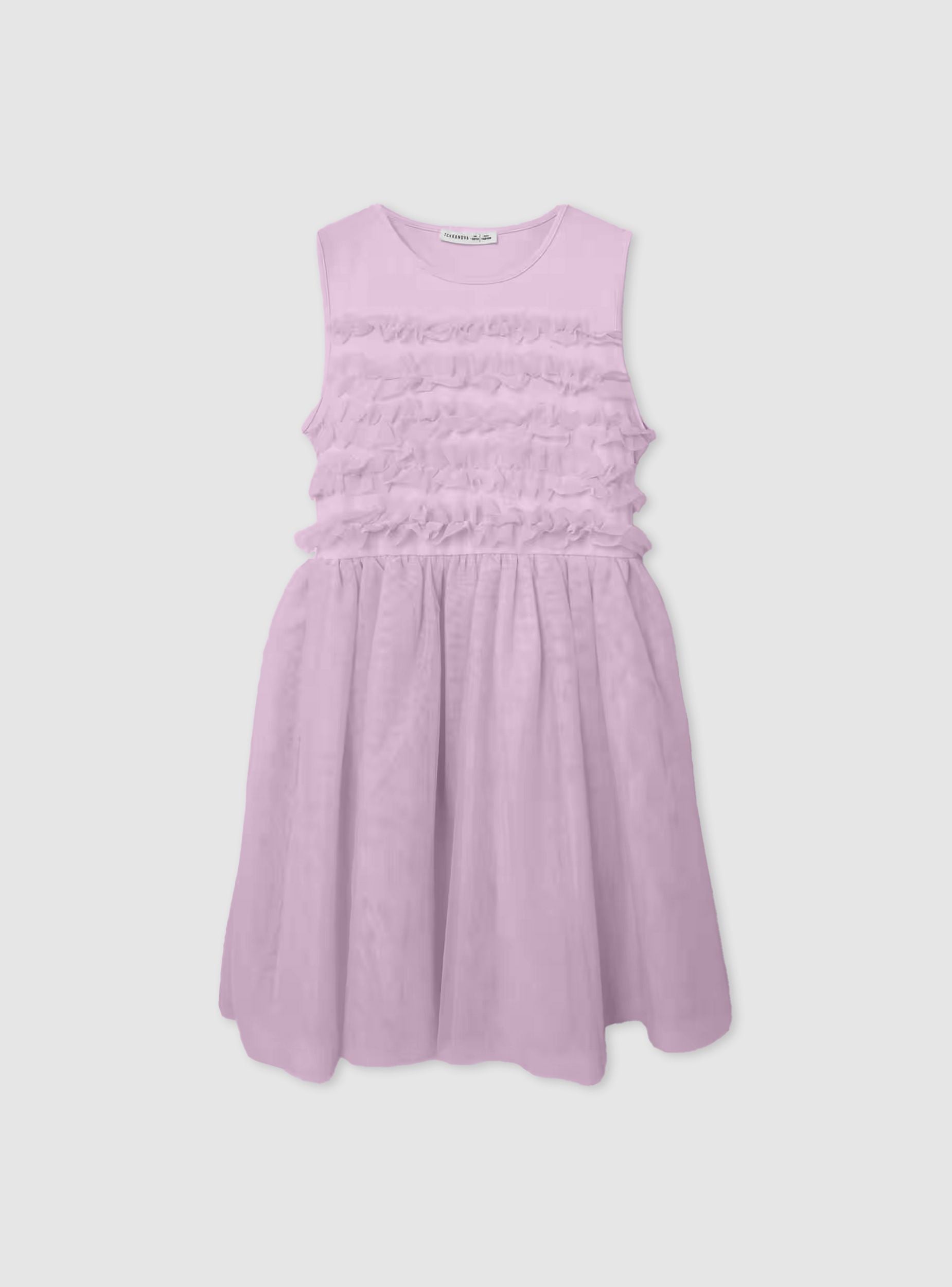 Haljina za djevojčice s glamuroznim i romantičnim dizajnom, savršena za posebne prigode. Korzet je nabran i daje dašak pokreta odjeći, naglašen prisutnošću pojasom u tonu u struku, koji dodaje eleganciju i praktičnost. Suknja od tila, široka i lepršava, osmišljena je kako bi osigurala udobnost i slobodu kretanja. Idealni komad za svaku djevojčicu da se osjeća u središtu pažnje, s stilom koji naglašava bezbrižnost i veselje.Detalji