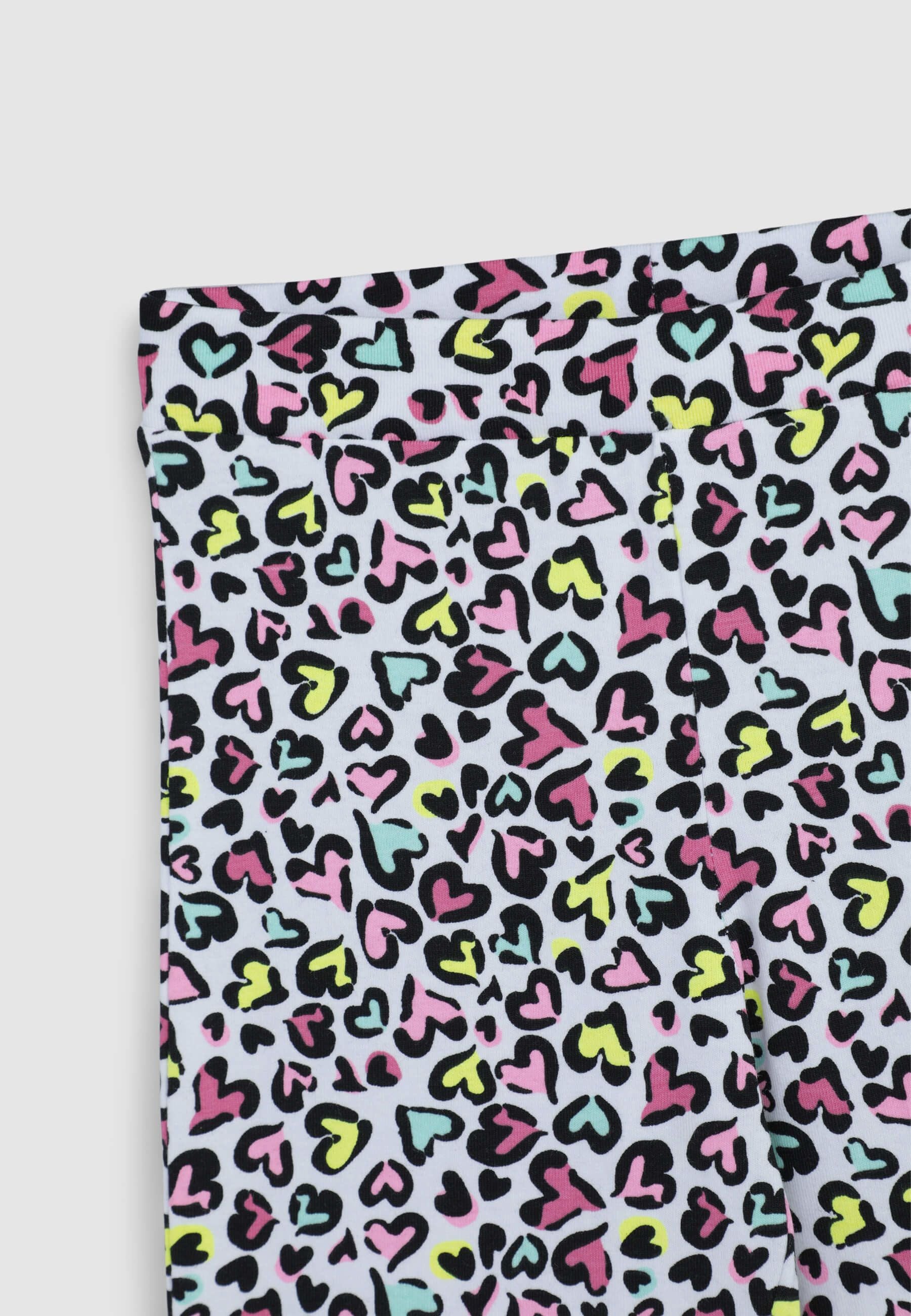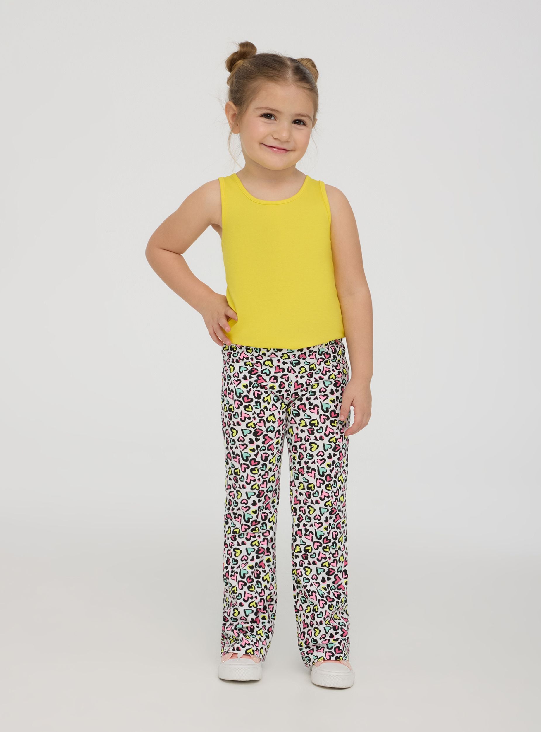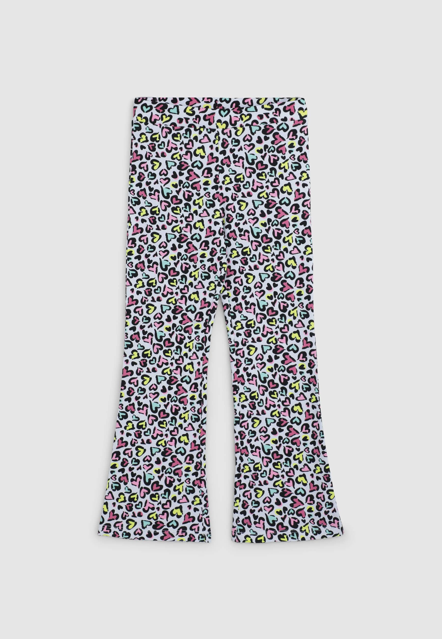 Leggins za djevojčice savršeni za slobodno vrijeme, dugi i s elastičnim dizajnom koji osigurava slobodu kretanja. Karakterizirani su zvonastim krojem koji dodaje dašak stila, obogaćeni su uzorkom s točkicama i višebojnim srcima, idealni za stvaranje živahnih i originalnih odjevnih kombinacija.Detalji
