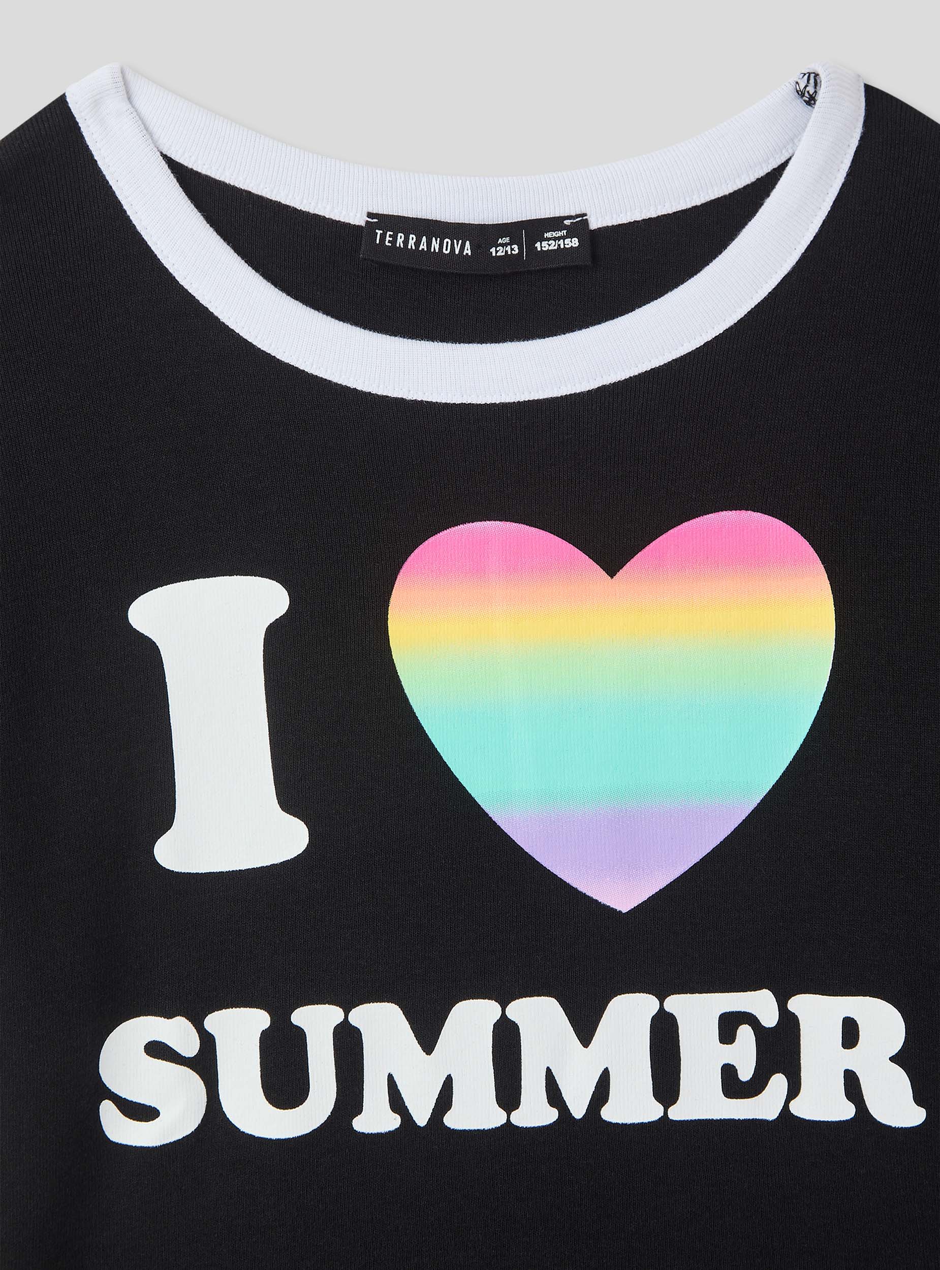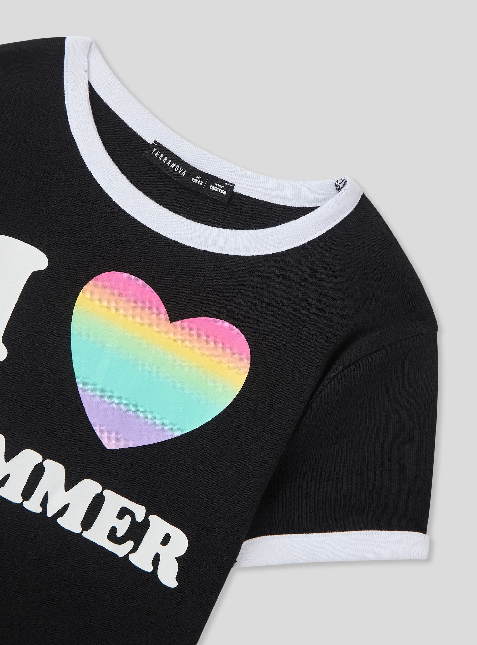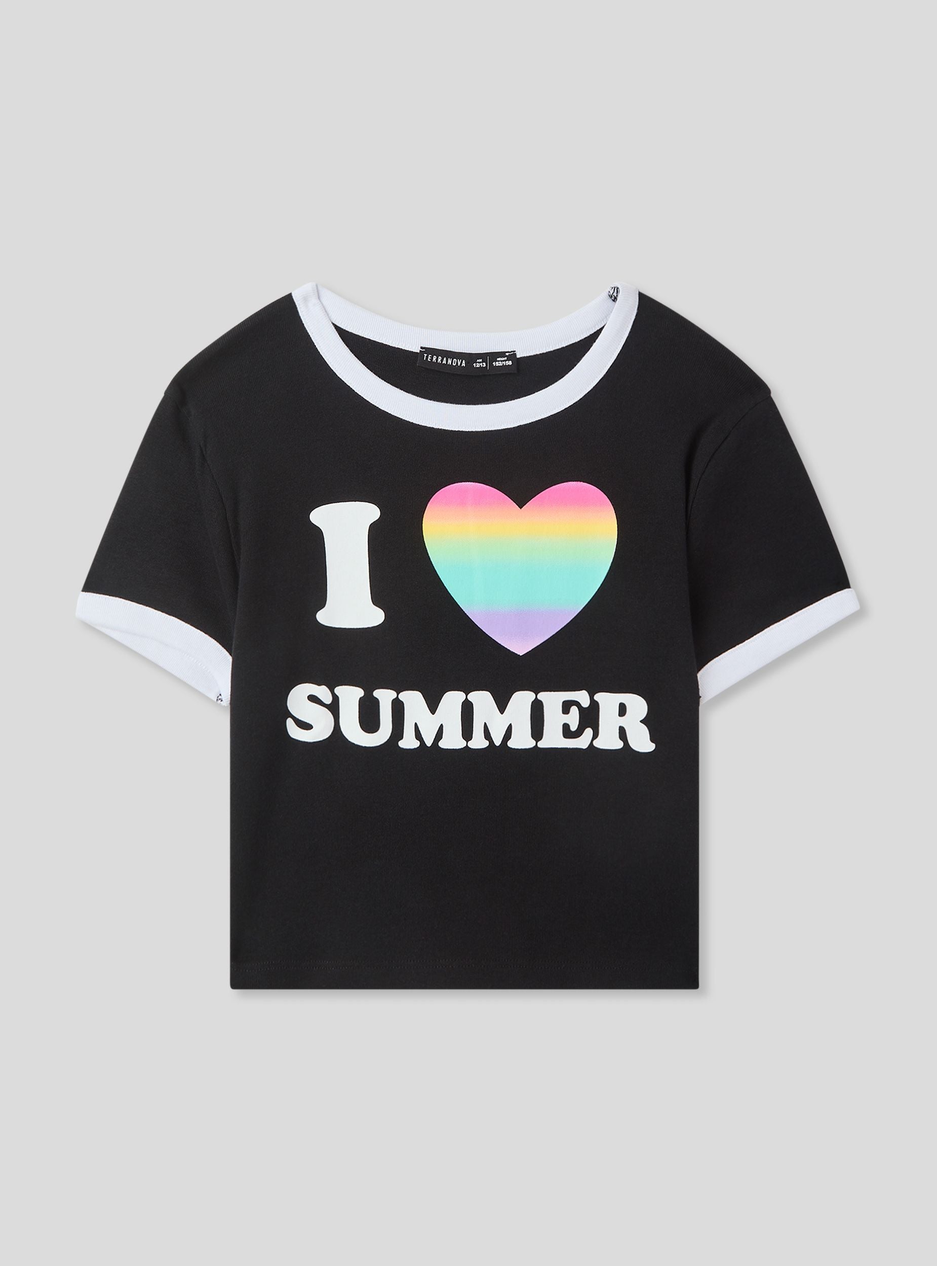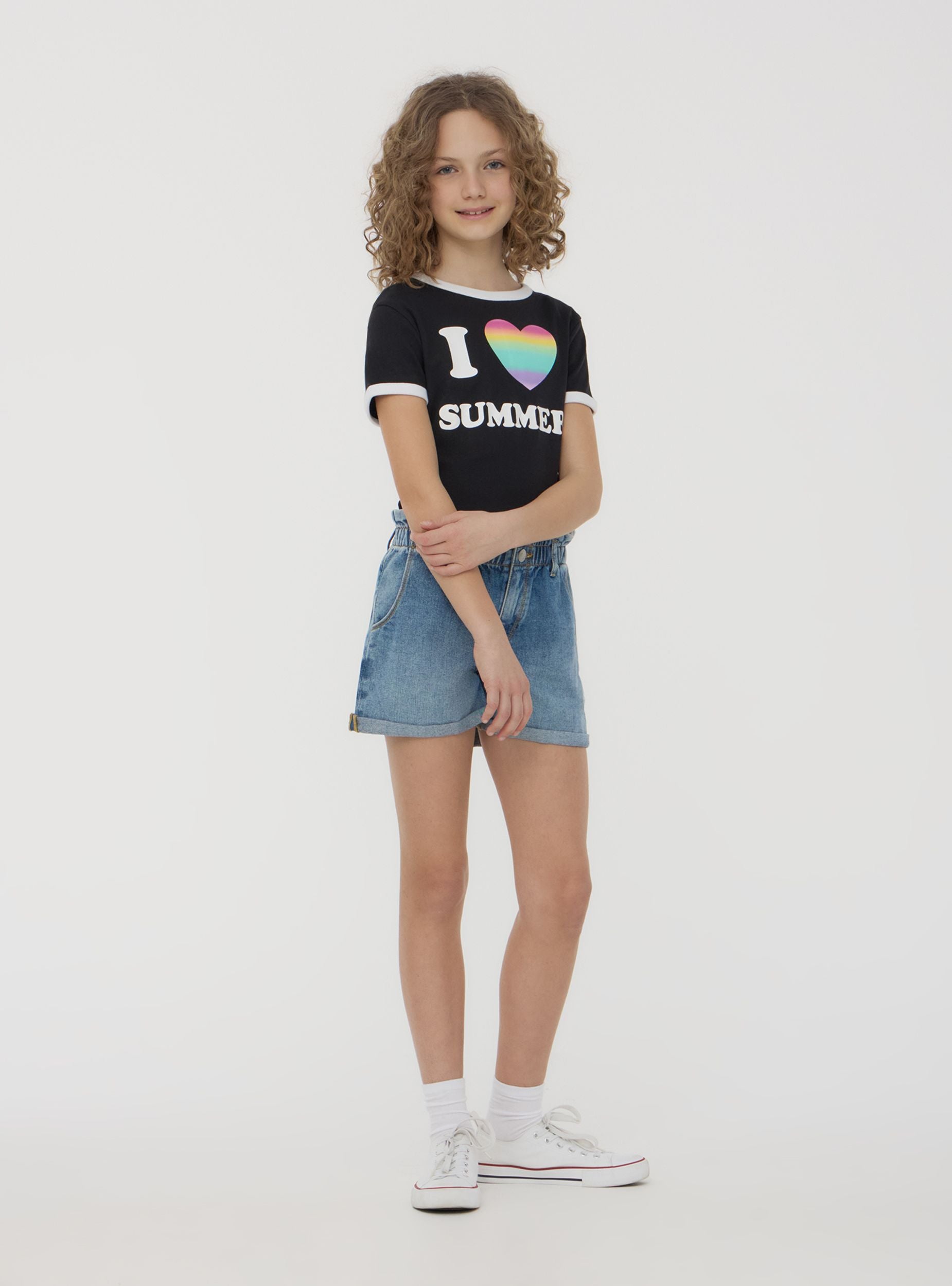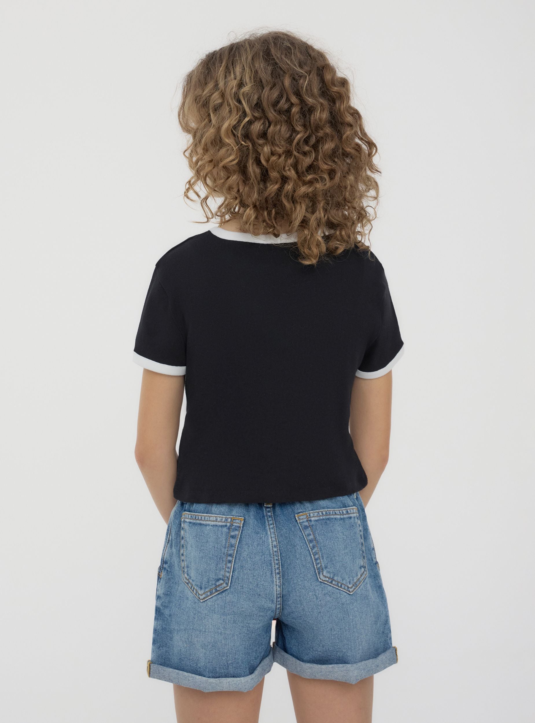Majica za djevojčice s kratkim rukavima, okruglim izrezom i kontrastnim rubovima, savršena za ležeran i živahni izgled. Zabavan uzorak dodaje dašak originalnosti, čineći je idealnom za slobodno vrijeme i dane igre. Lako se kombinira s šortsevima, trapericama ili suknjama, to je svestran komad koji dodaje dašak boje i osobnosti outfitu.Detalji