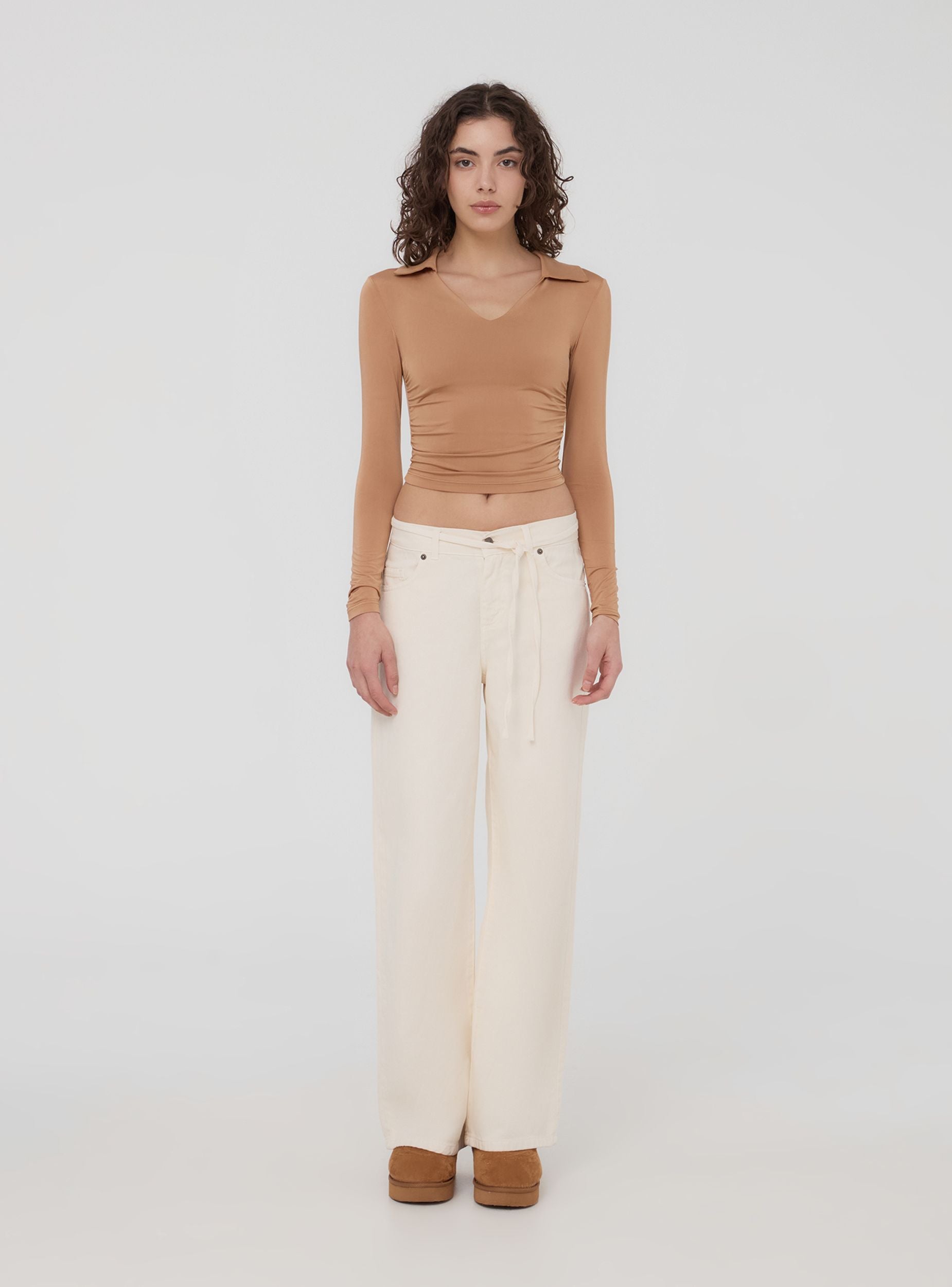 Ženski hlače suvremenog stila s super širokim krojem, savršeni za one koji traže široku i udobnu siluetu. Opremljene su integriranim remenom koji ističe struk. Idealne za dovršavanje casual i urbanih outfita, spajaju praktičnost i dizajn za moderan i svestran izgled.
