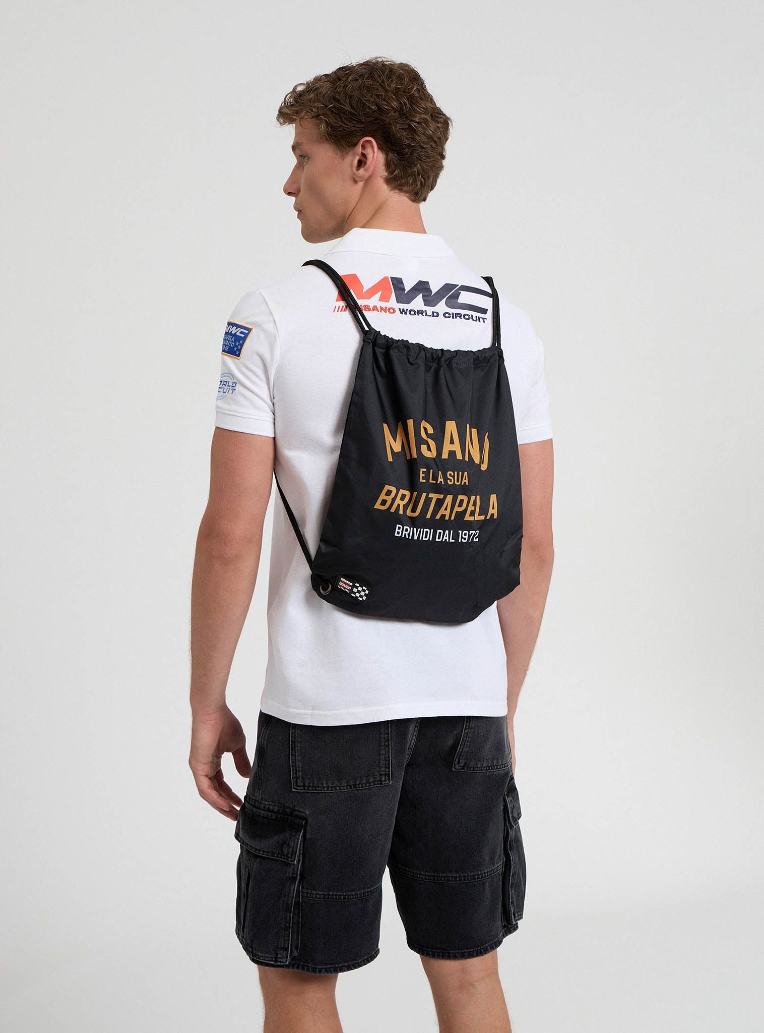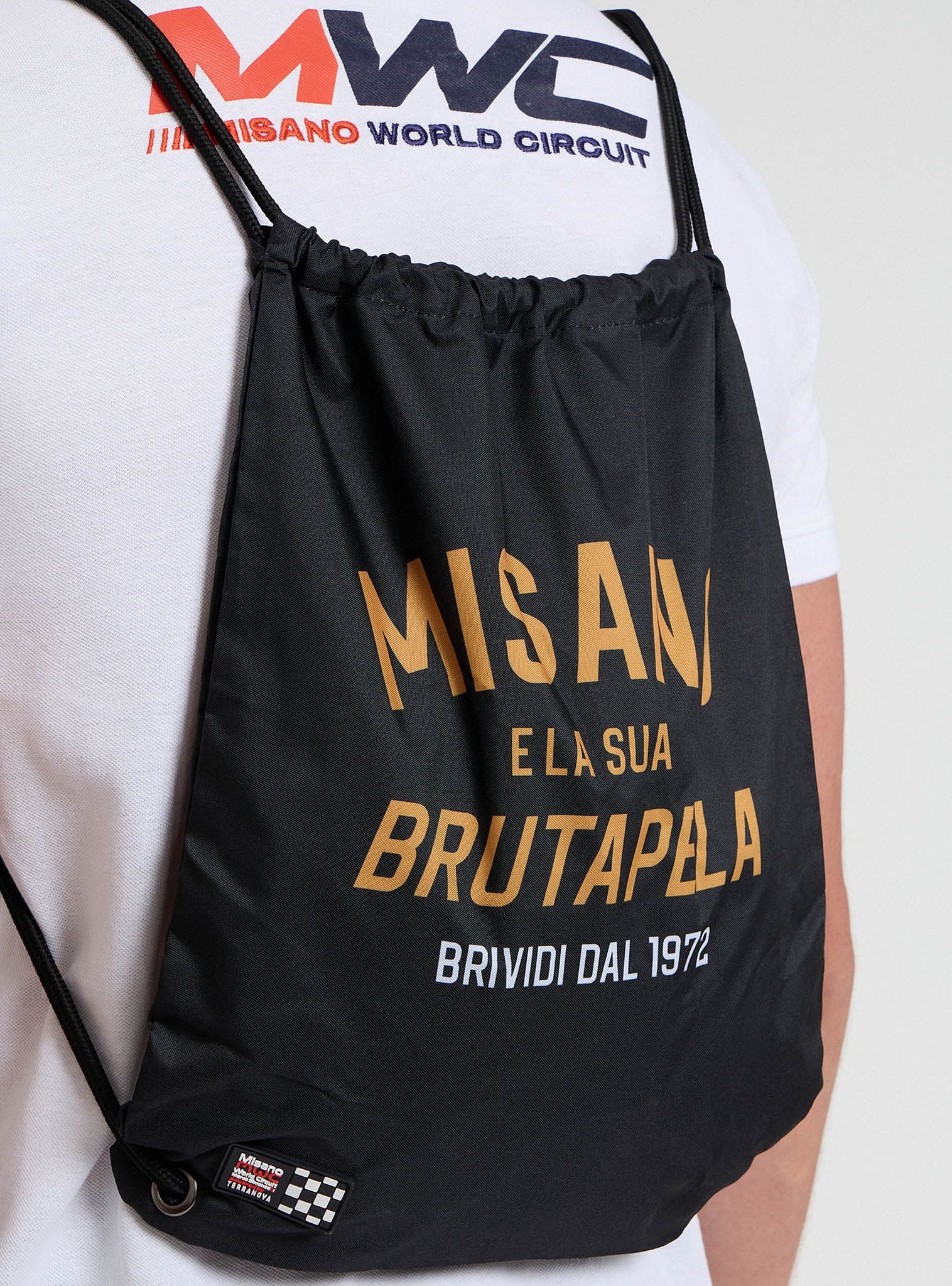 Ruksak s vrećicom s natpisom i logotipom Misano World Circuit. Dimenzije: Visina 43cm, Dužina 35cm.Detalji
