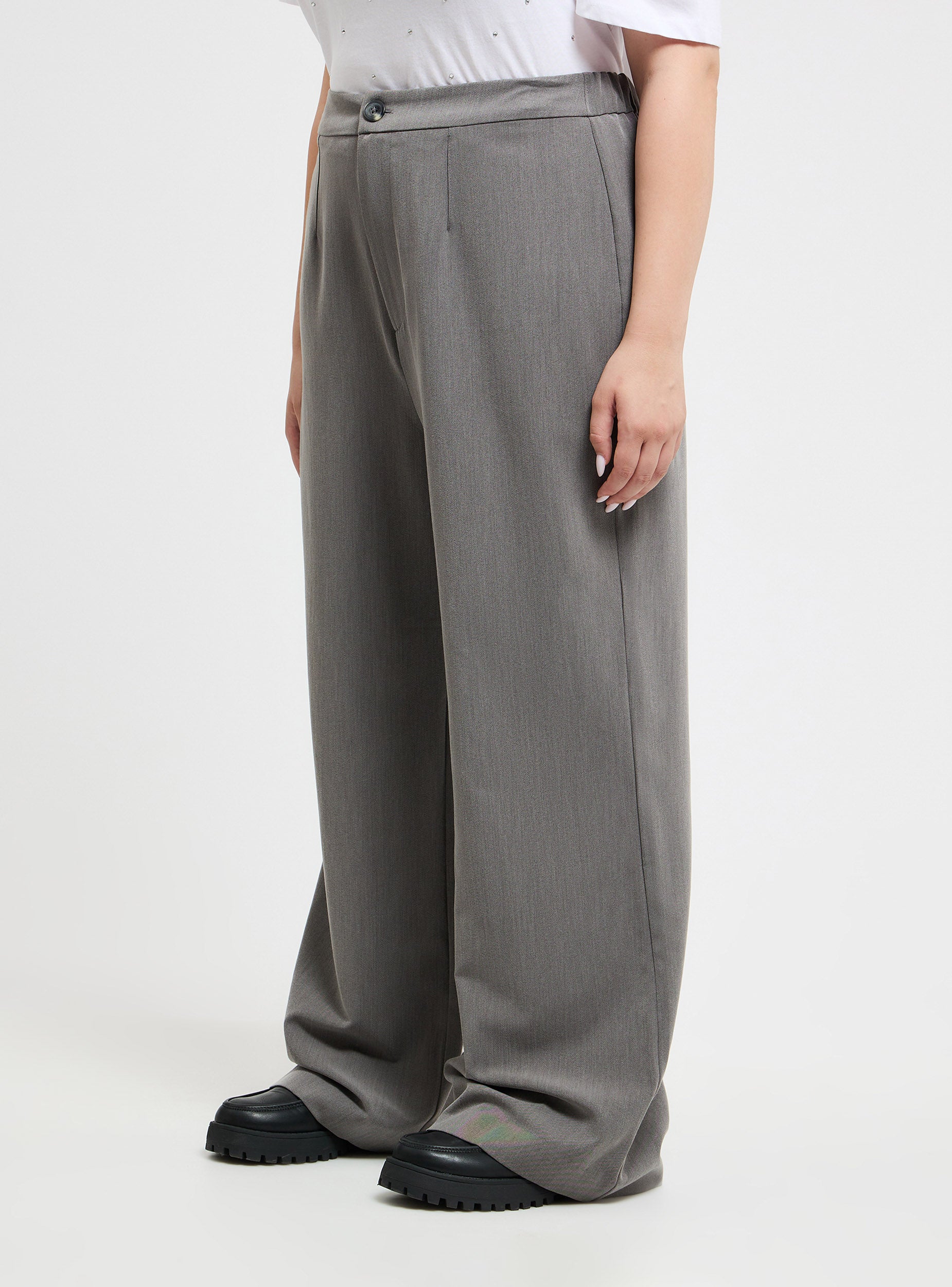 Pantaloni lunghi da donna a gamba ampia. Elastico dietro in vita, pinces frontali. Tessuto melange, linea Curvy.