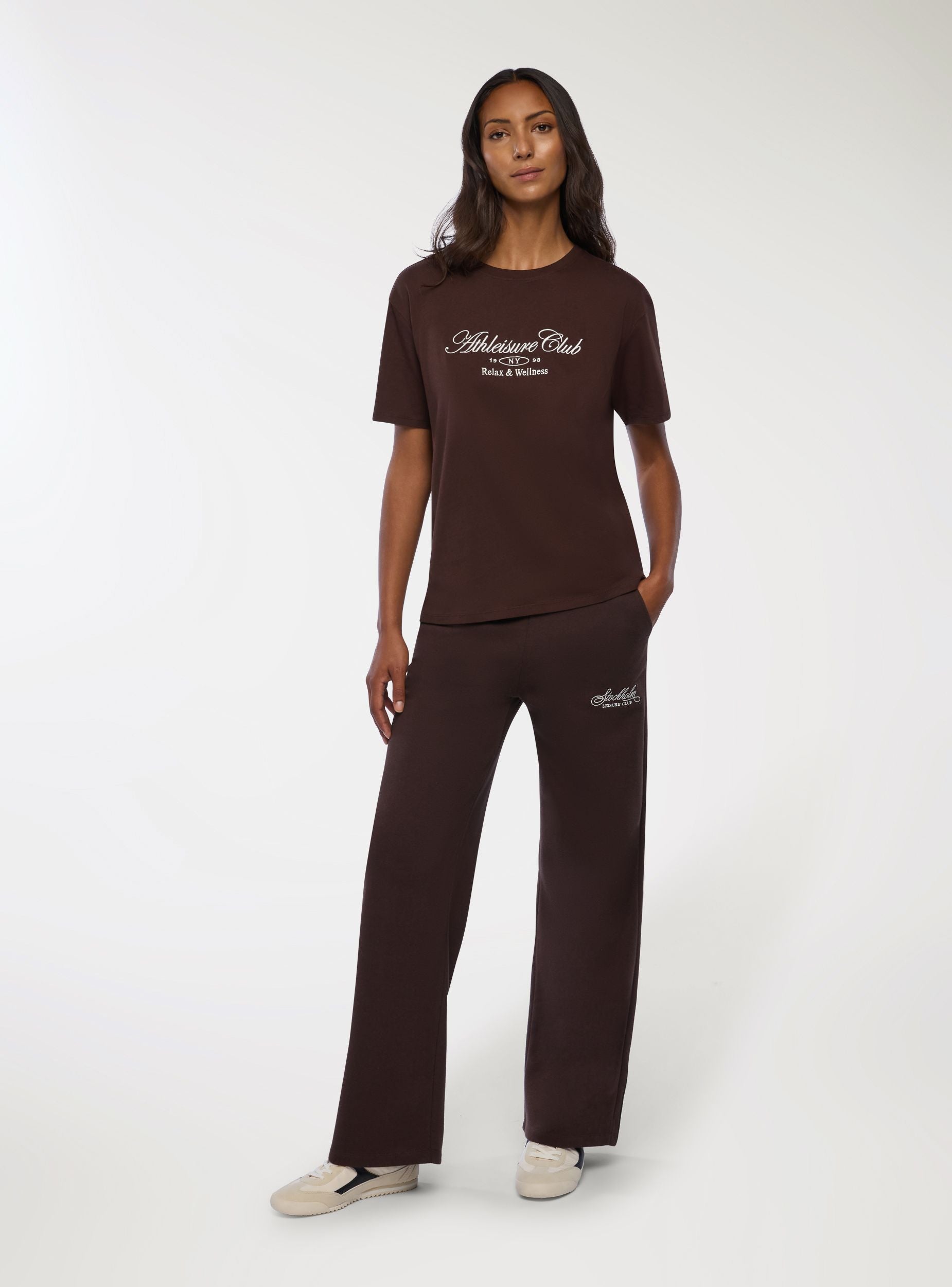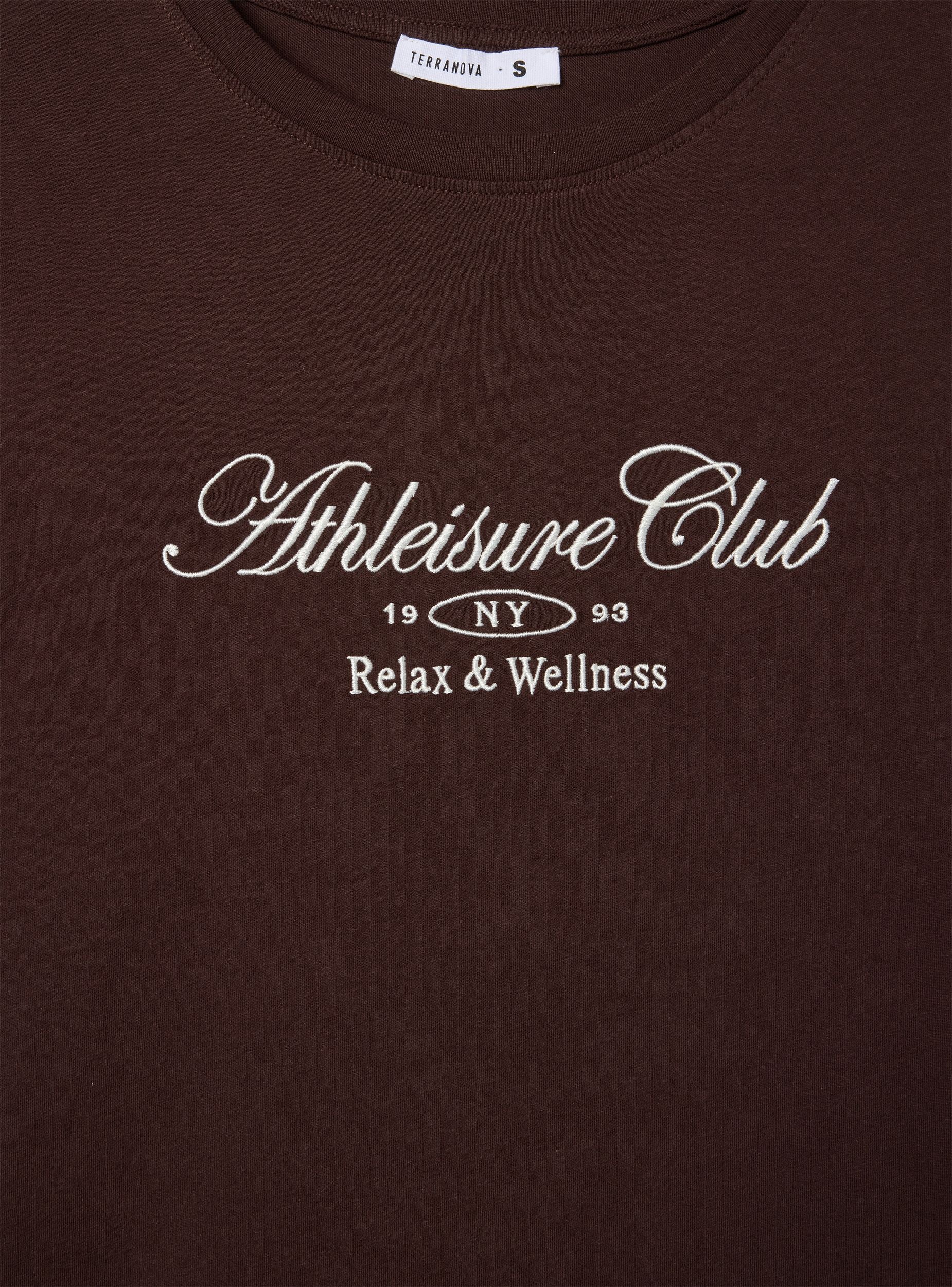 Ženska majica s kratkim rukavima i okruglim izrezom, karakterizirana ukrasnim natpisima sprijeda. Idealna za ležeran i svestran izgled, savršeno se slaže s trapericama ili sportskim hlačama za slobodno vrijeme. Širok kroj i moderan dizajn čine je prikladnom za različite prilike.Detalji