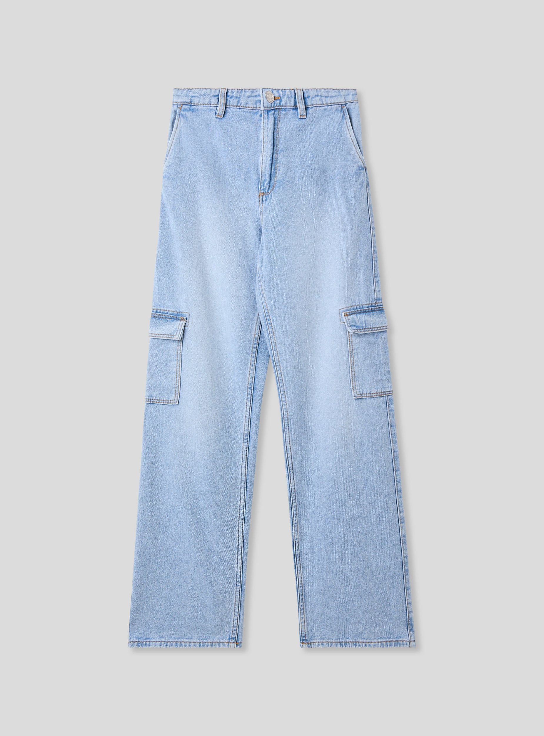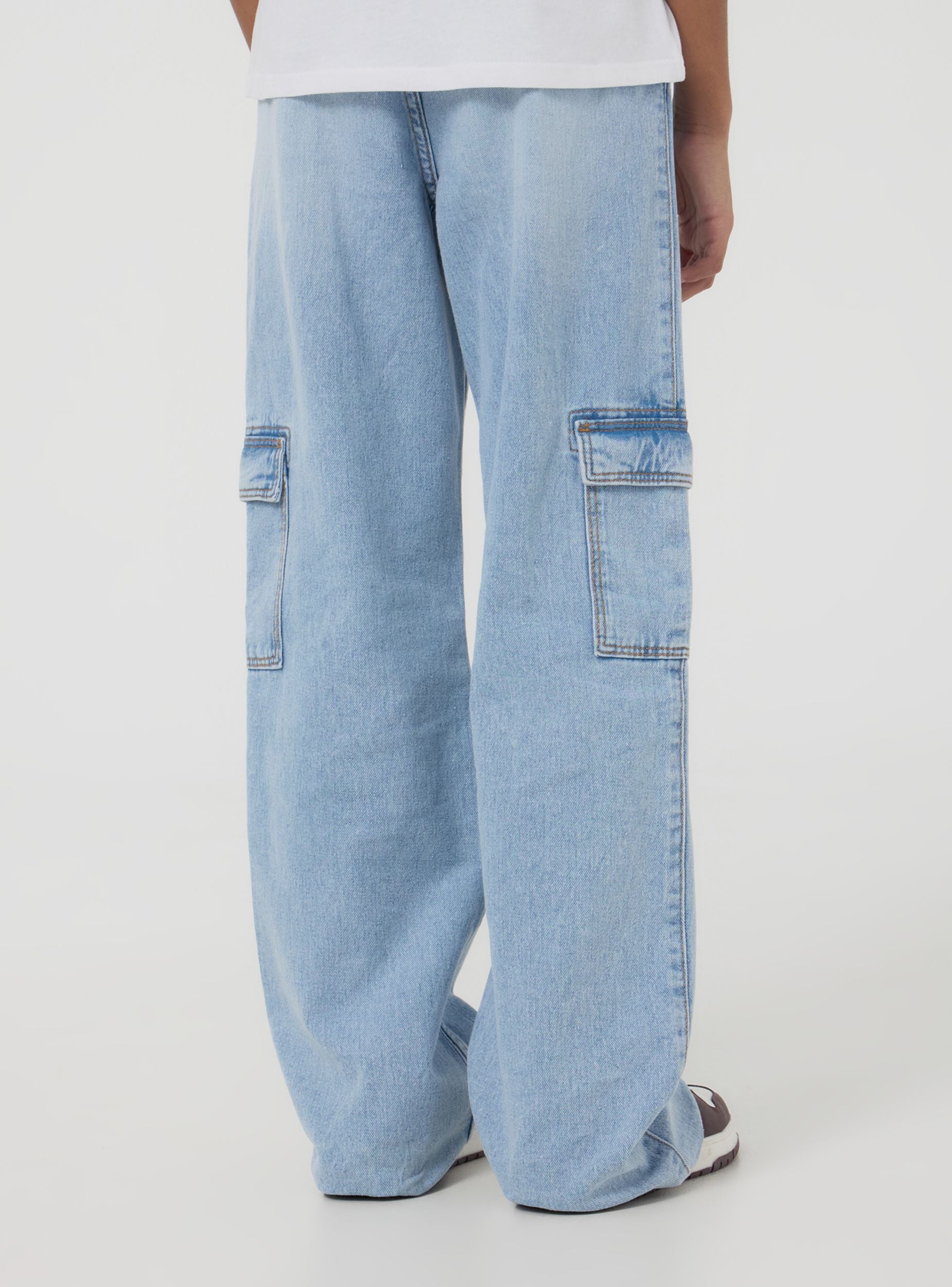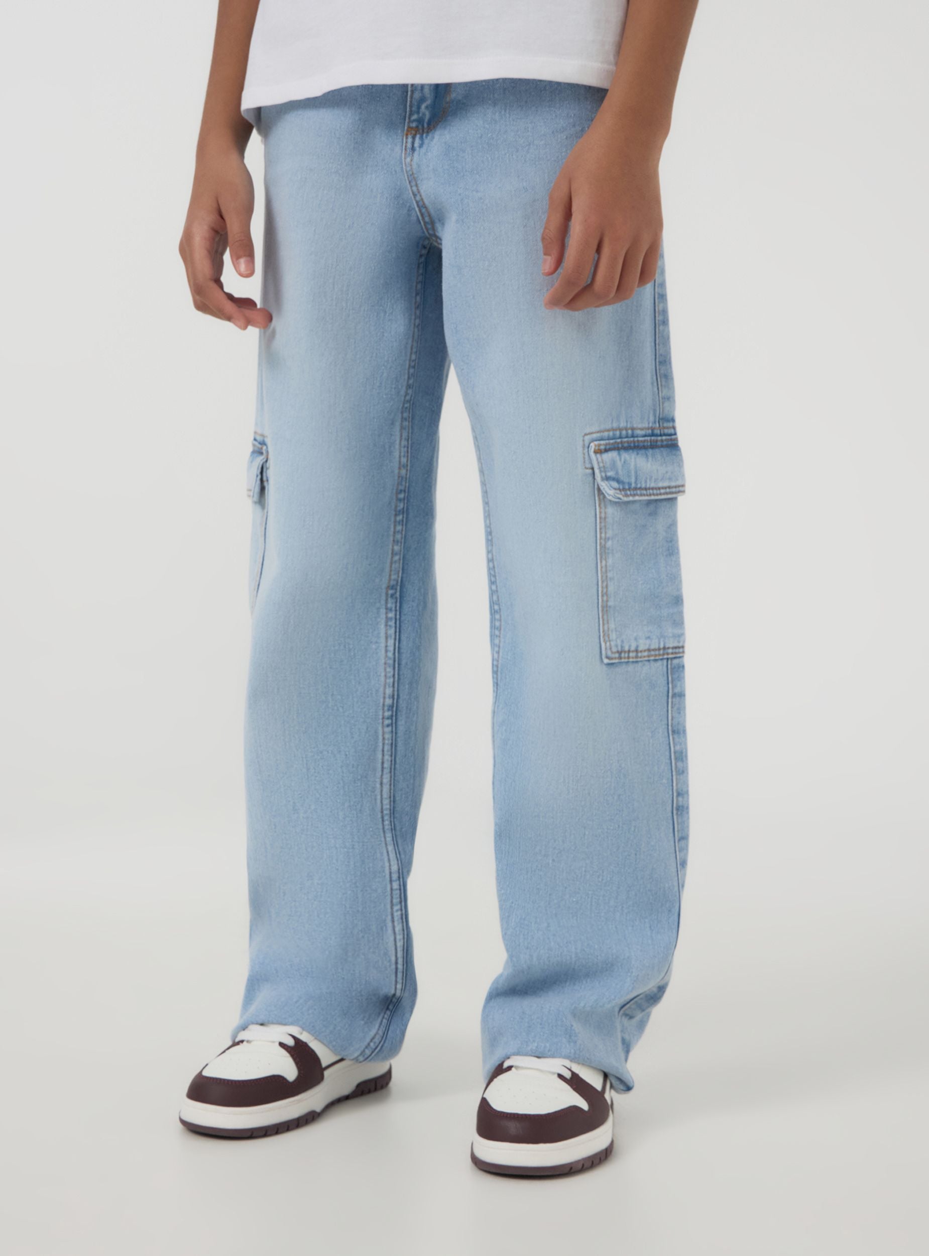 Dječji wide leg cargo traperice, savršene za ležeran i trendi izgled. Opremljene su petljama u struku, zatvaranjem na gumb i patentni zatvarač, spajaju stil i praktičnost za svestran outfit. Cargo džepovi dodaju dozu odvažnosti, idealni za dinamične dane. Savršene su za kombiniranje s majicama i tenisicama za slobodno vrijeme ili s oversized duksericom za urbani i moderni izgled.Detalji