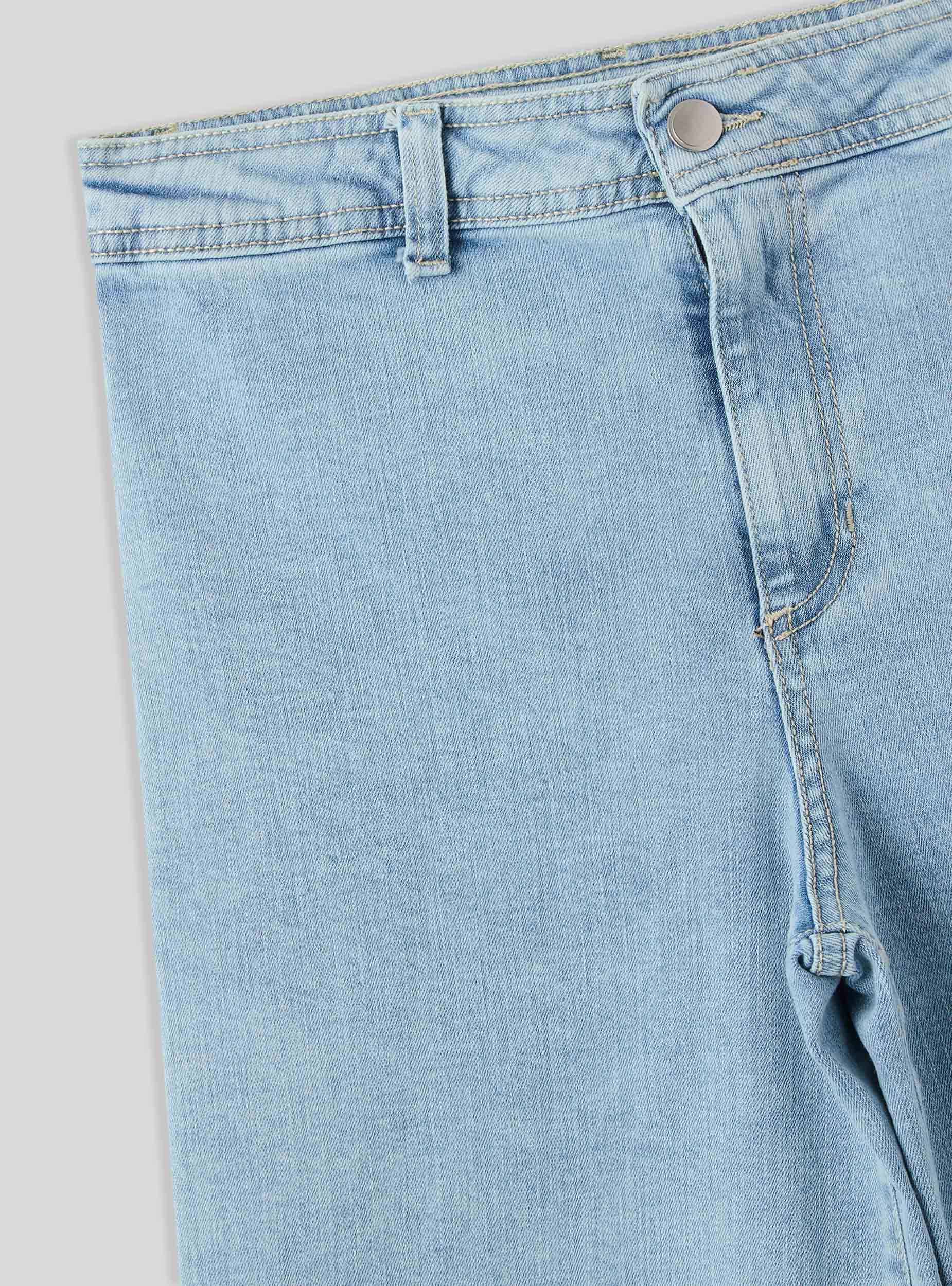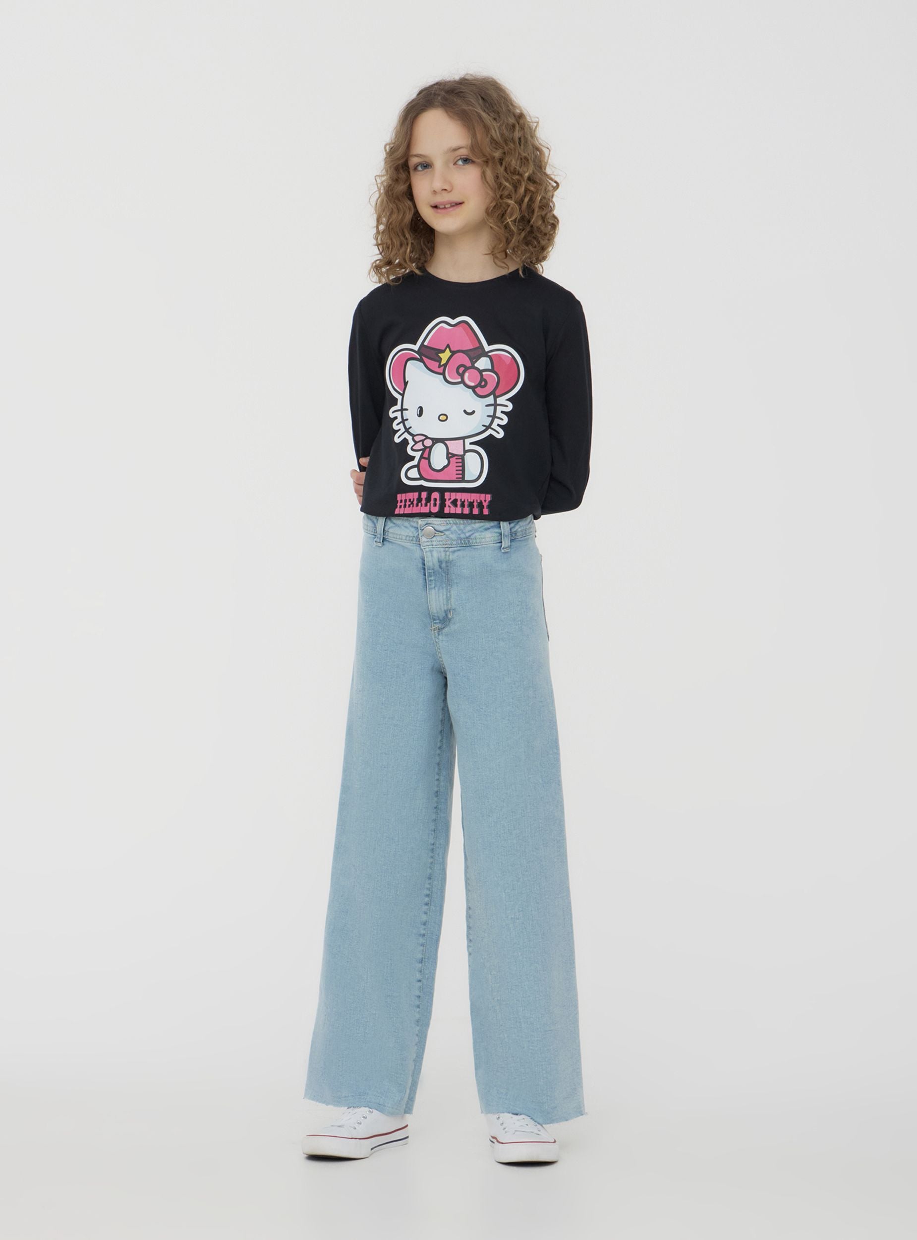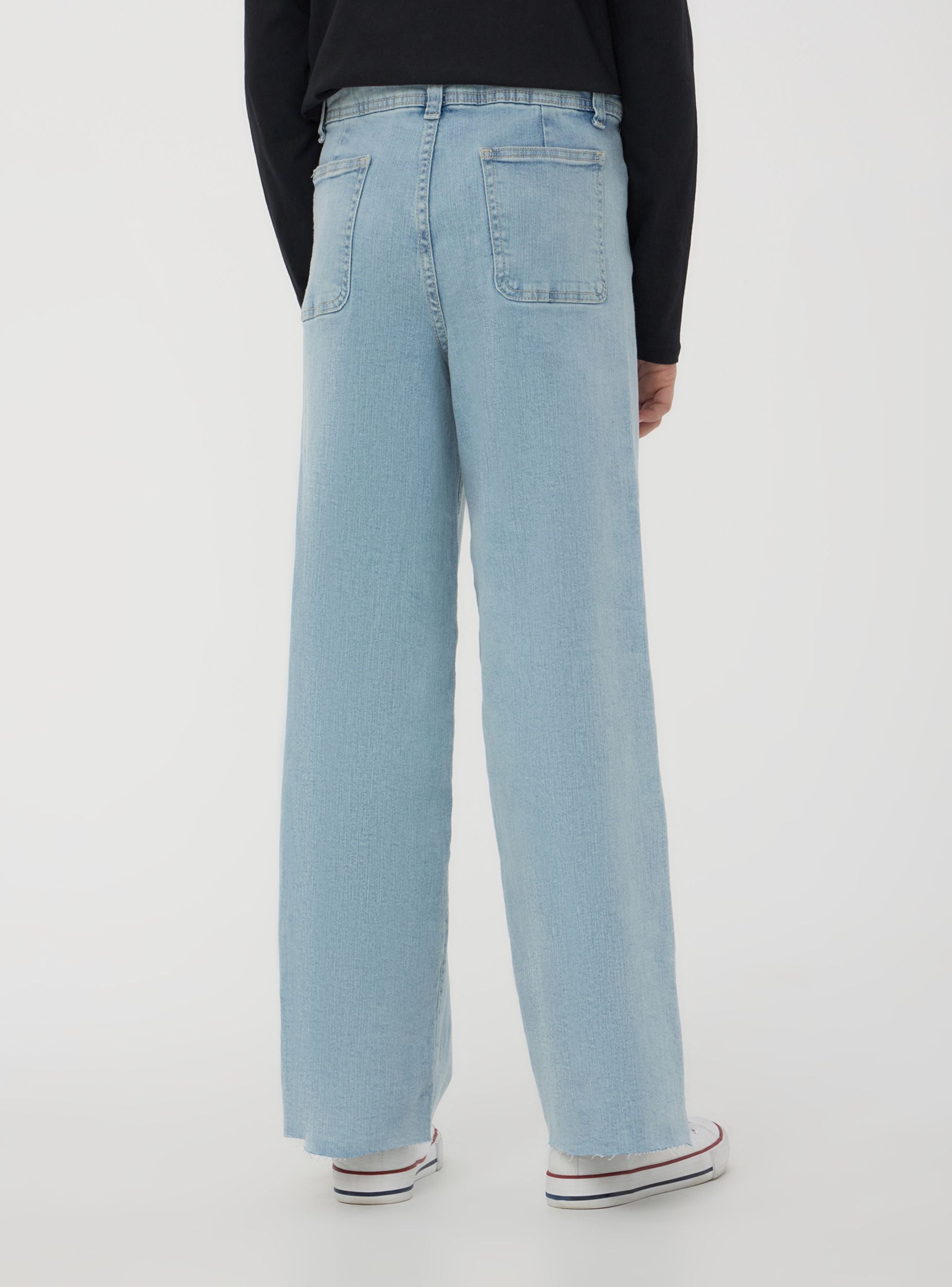 Dječje traperice širokog kroja, savršene za moderan i udoban izgled. Svijetlo pranje denima dodaje dašak svježine, idealno za tople sezone. Zaključavanje na dugme i petlje na struku omogućuju lako kombiniranje s remenima i uskim majicama za uravnotežen outfit. Nosite ih s tenisicama i grafičkom majicom za ležeran izgled, ili s mekanim puloverom za sofisticiraniji dodir.Detalji