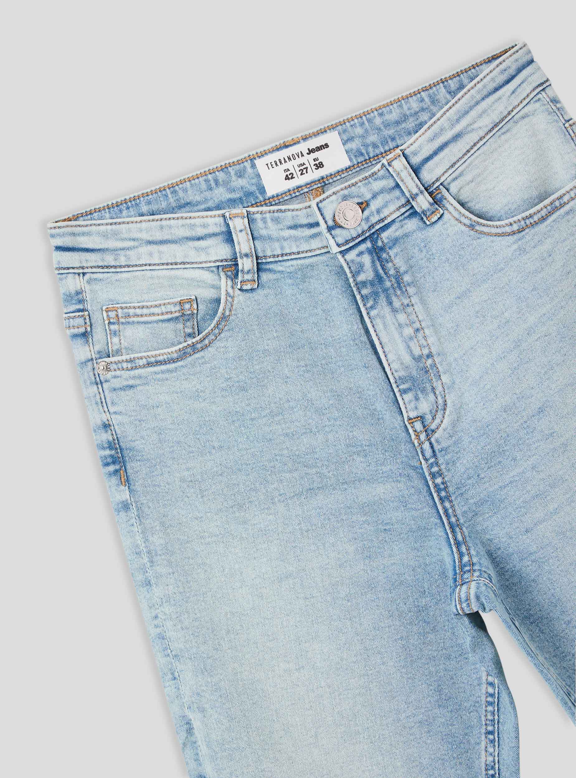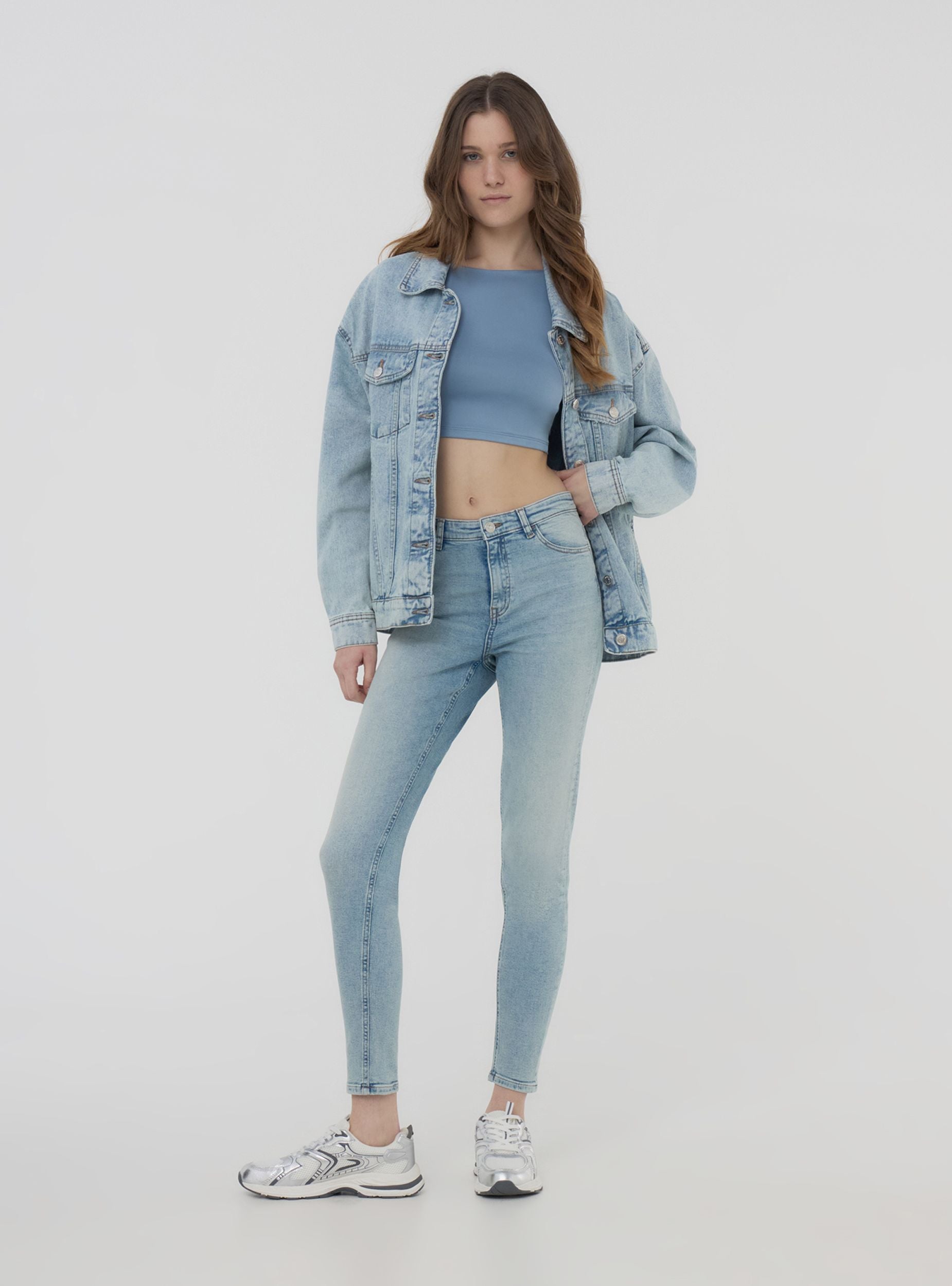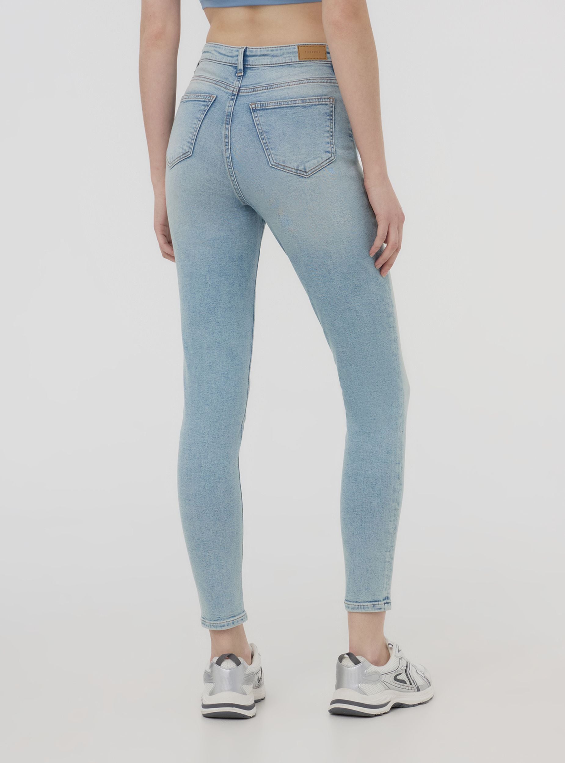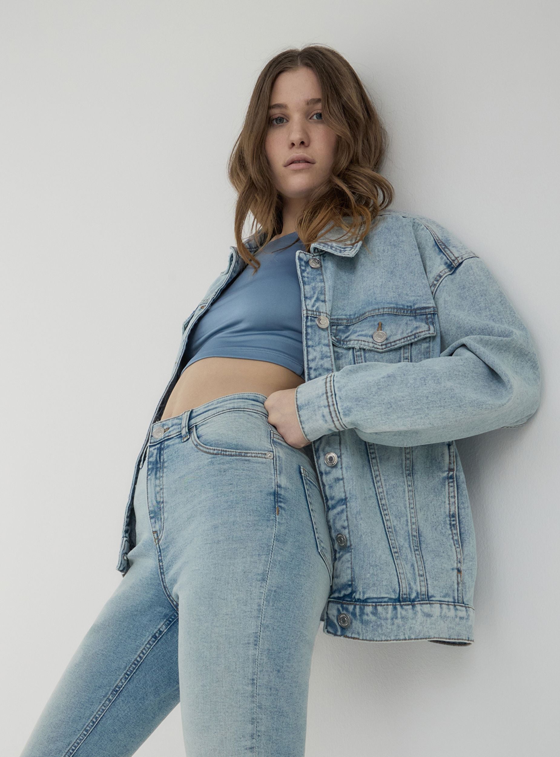 Ženske traperice, s jedinstvenim dizajnom i uskim krojem, savršene za isticanje siluete. Svijetlo pranje daje modernu notu, dok petlje na struku omogućuju personalizaciju izgleda s remenom. Opremljene s pet funkcionalnih džepova i zatvaranjem na gumb i patentni zatvarač, spajaju praktičnost i stil za svaku priliku.Detalji