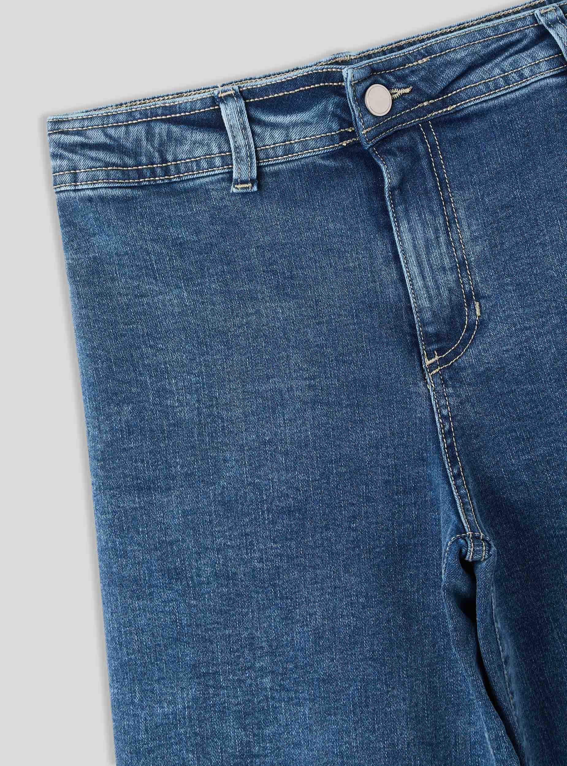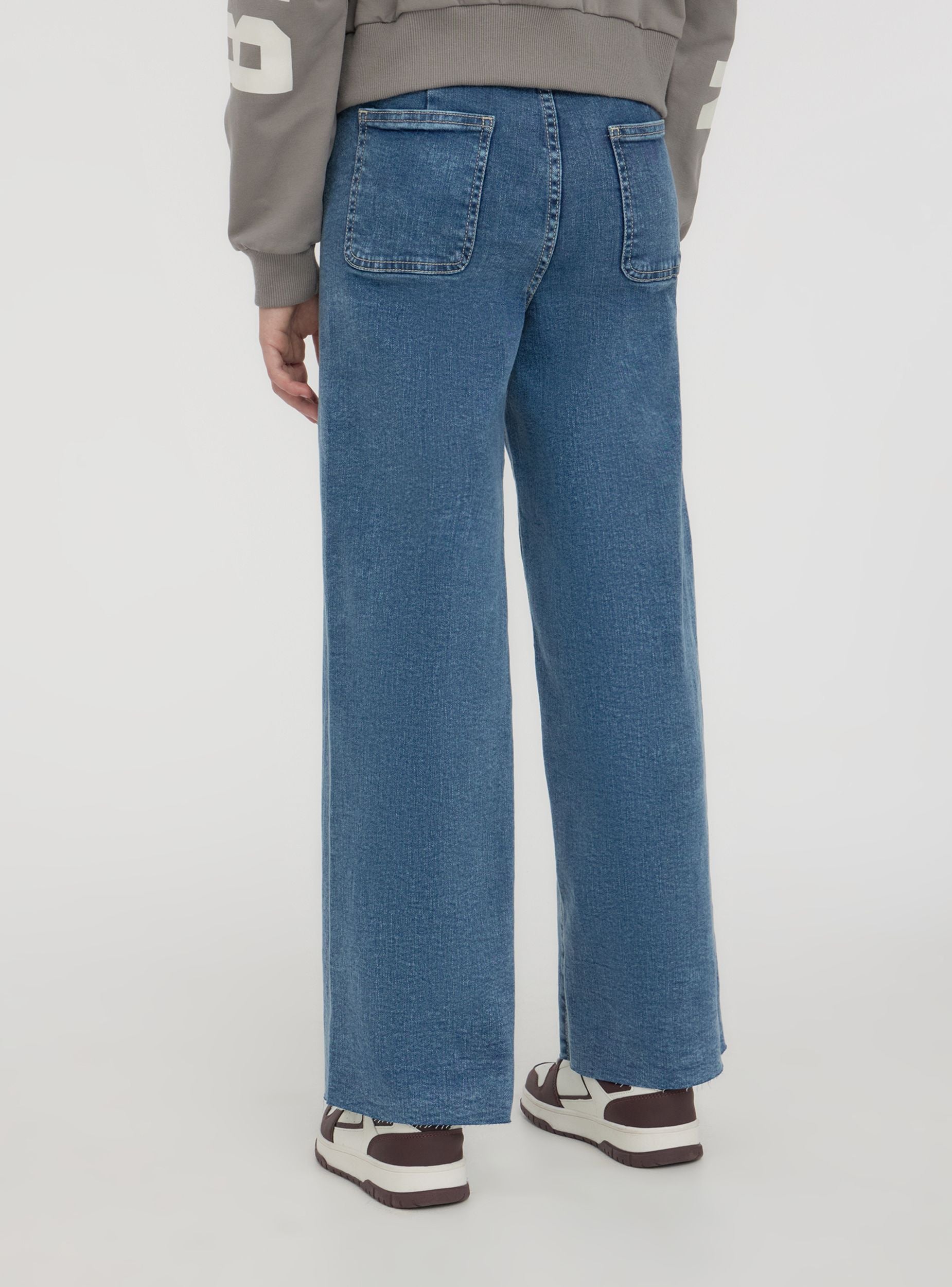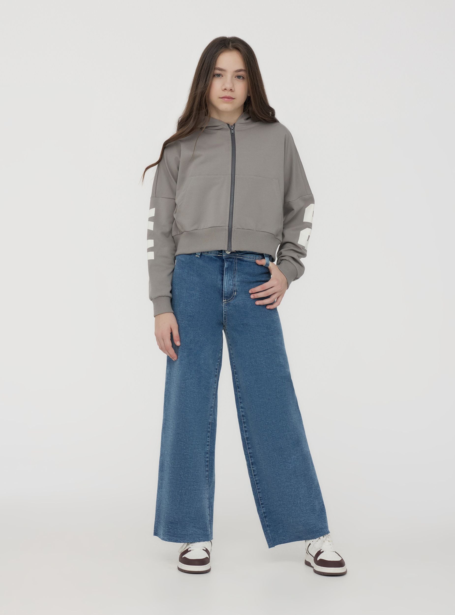 Dječje traperice širokog kroja, savršene za suvremeni i udoban izgled. Srednje pranje denima čini ih svestranim i pogodnim za razne kombinacije, od majica s printom do oversized dukserica. Opremljene su petljama za remen i zatvaranjem na gumb, osiguravajući udobno i praktično pristajanje. Idealne za slobodno vrijeme i školske dane, donose moderan i trendi stil.Detalji