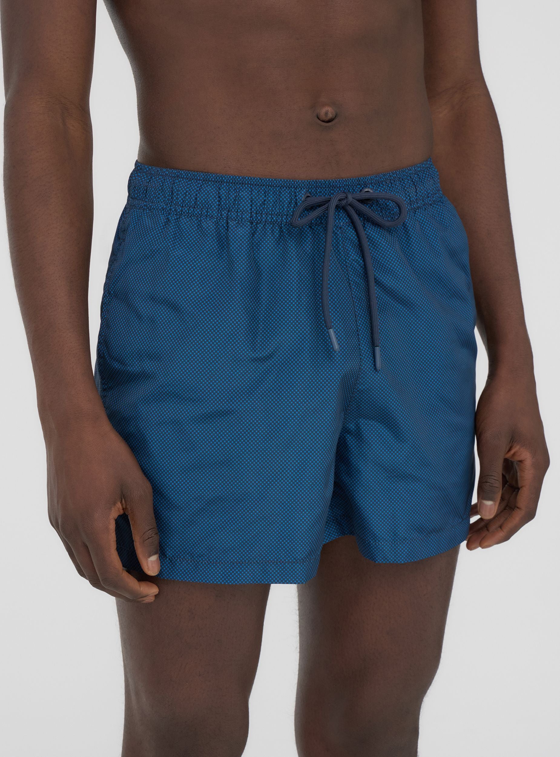 Costume da uomo in stile bermuda con coulisse regolabile, perfetto per il mare e le giornate in piscina. La microfantasia geometrica aggiunge un tocco di personalità, rendendolo ideale per abbinamenti con t-shirt leggere o camicie di lino. Dotato di pratiche tasche laterali e una tasca posteriore con chiusura in velcro, offre comfort e funzionalità. Un must-have per un look estivo curato e versatile.