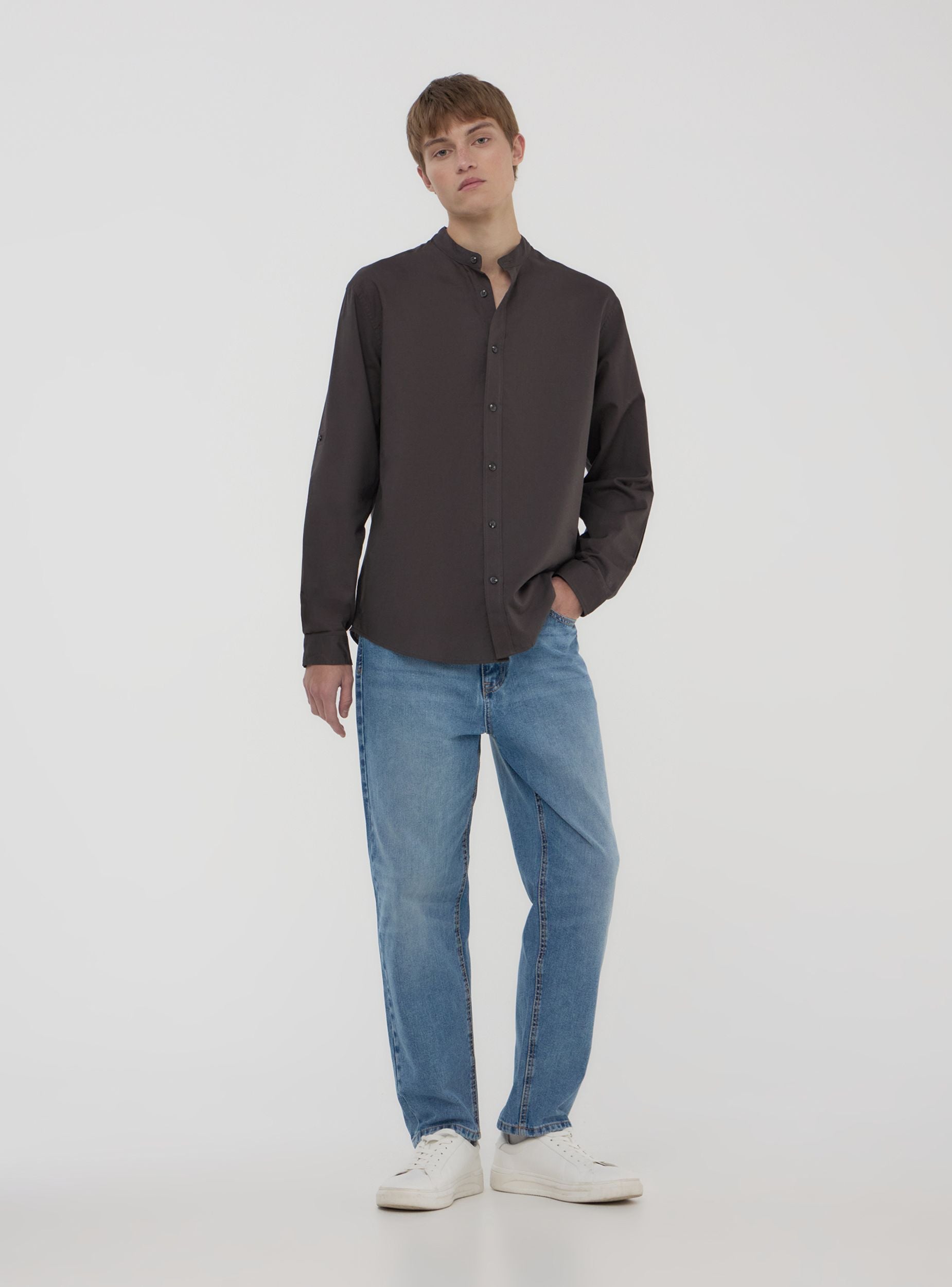 Camicia da uomo in misto lino, perfetta per le giornate estive grazie alla sua leggerezza e traspirabilità. Questo modello si distingue per il colletto alla coreana, un dettaglio che dona un tocco di modernità al design. Le maniche lunghe sono rifinite con polsini regolabili, mentre la chiusura frontale con bottoni aggiunge praticità e stile. Ideale per un look casual, ma curato nei dettagli, da indossare in molteplici occasioni.Dettagli