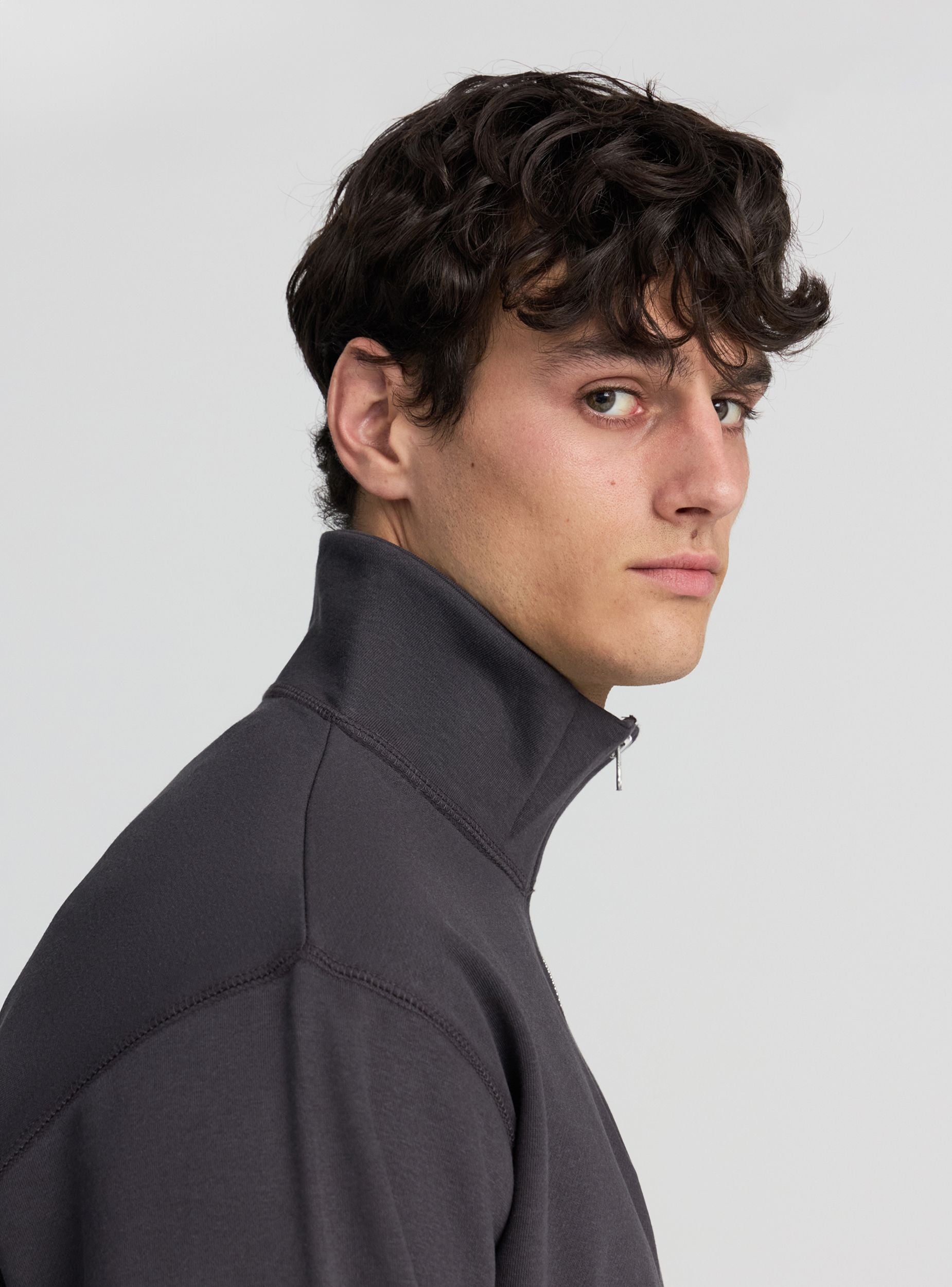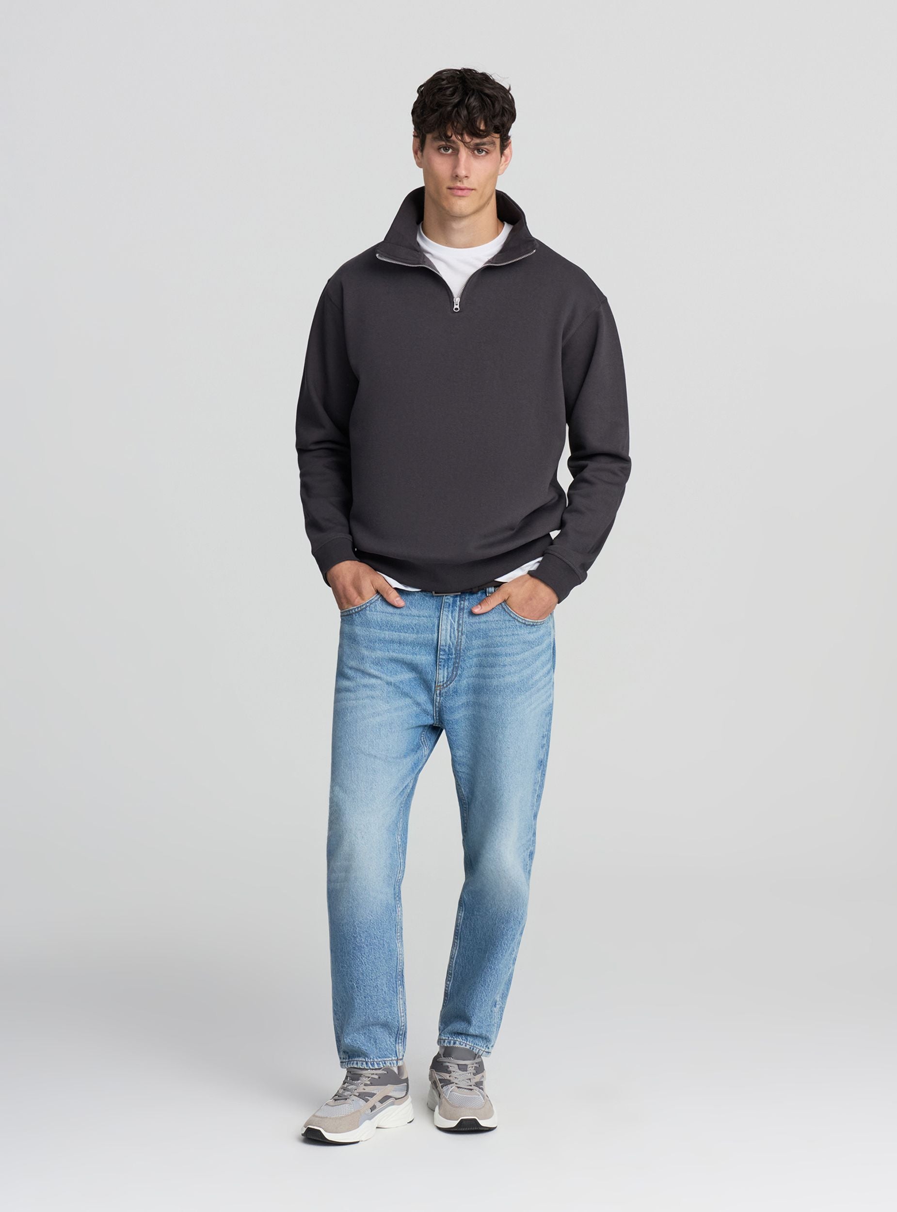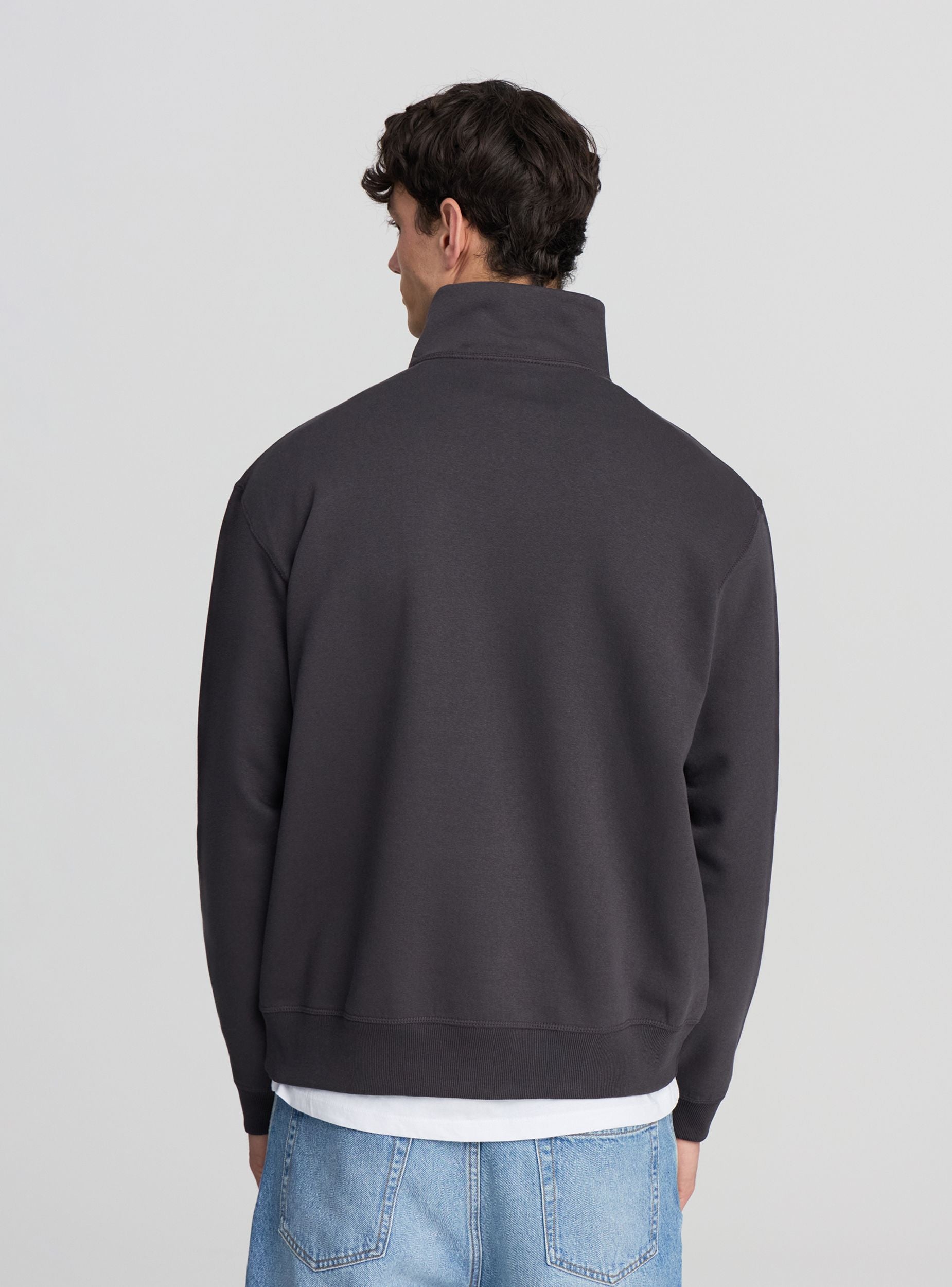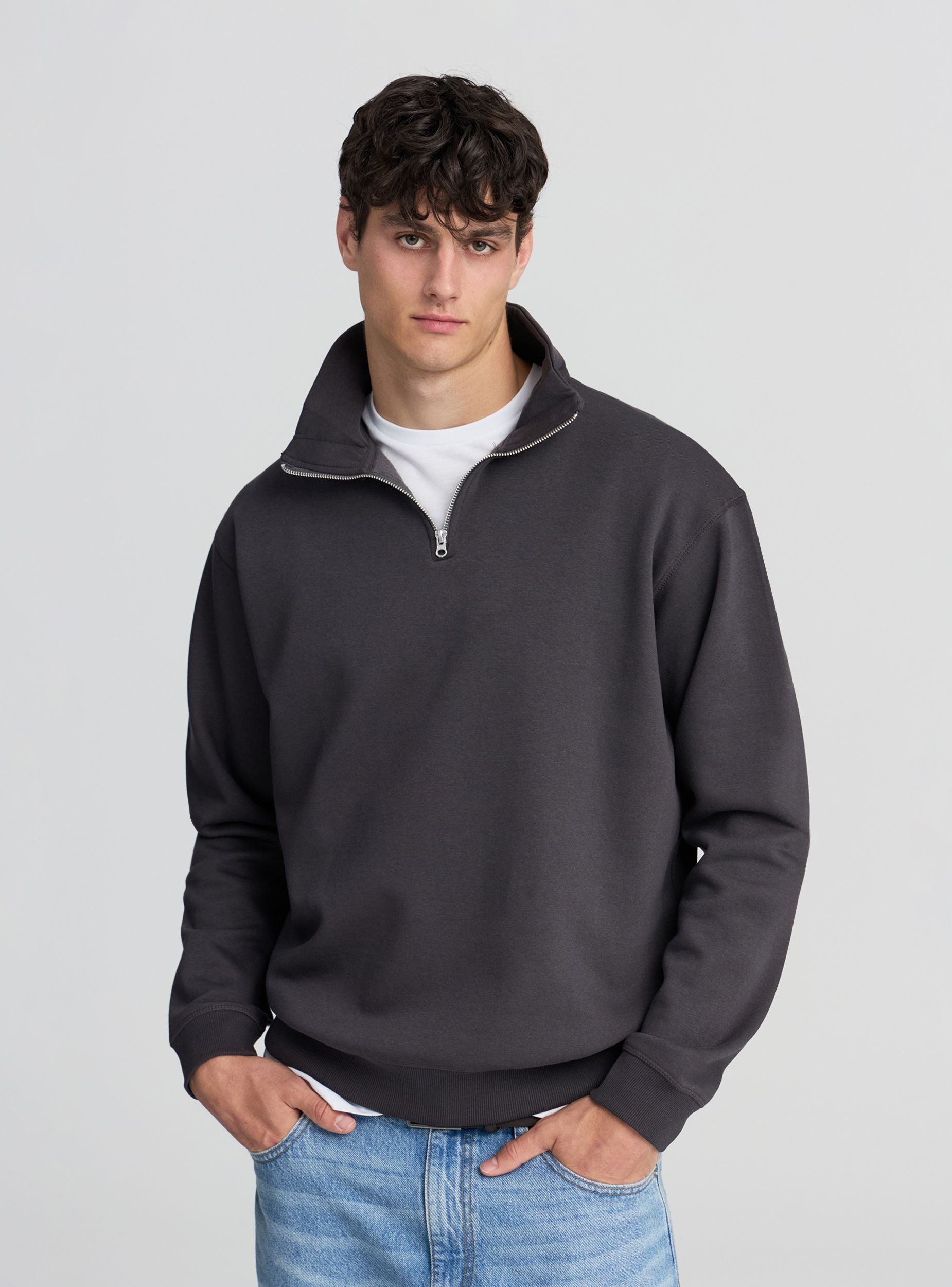 Felpa pesante da uomo ideale per un look casual e versatile. Presenta un design a tinta unita con collo alto e zip corta sul davanti, perfetta per essere indossata sia aperta che chiusa. Le maniche lunghe e i polsini a costine garantiscono comfort e vestibilità regolare. Ottima da abbinare a jeans o pantaloni sportivi per il tempo libero o le uscite informali.