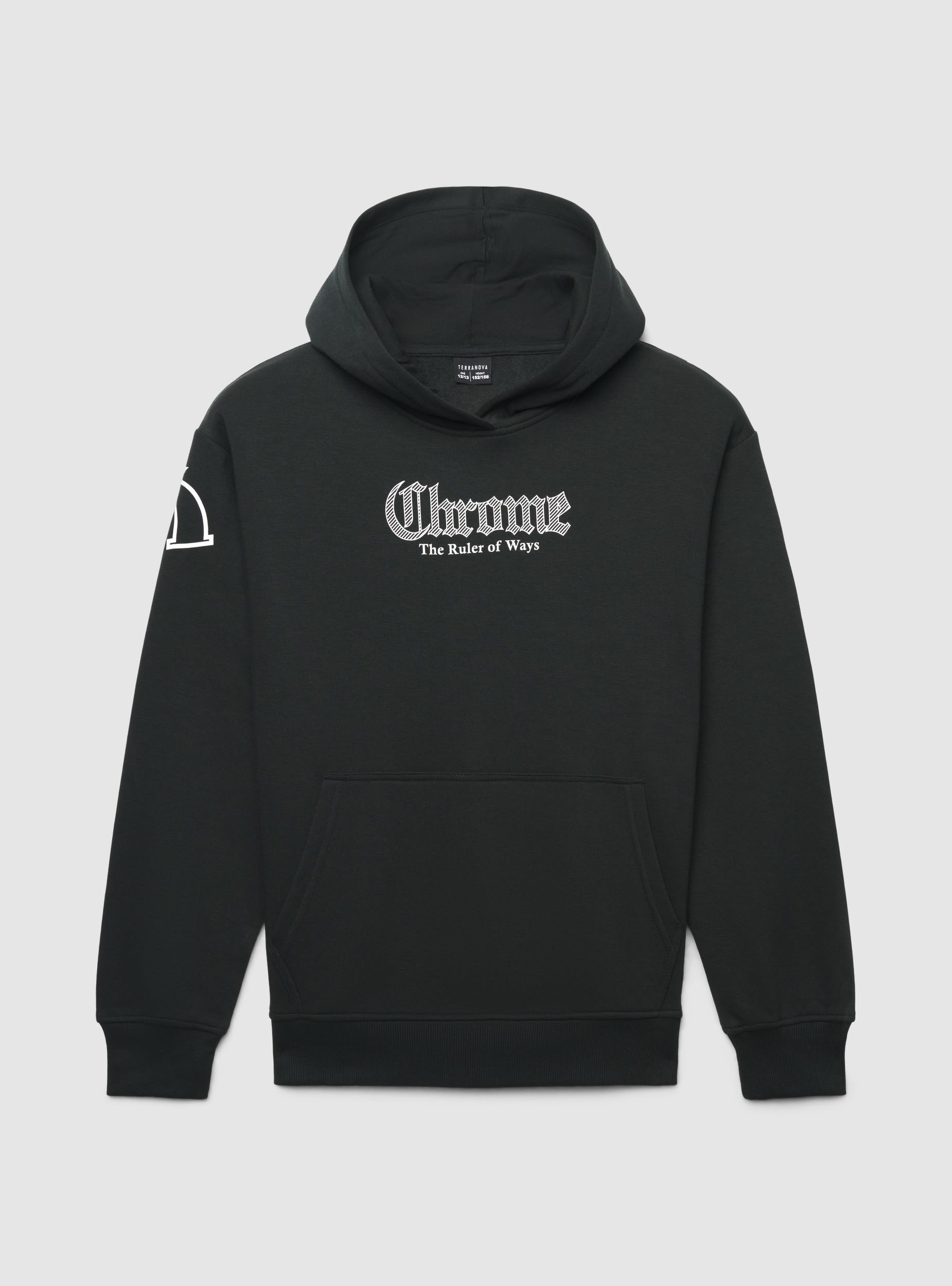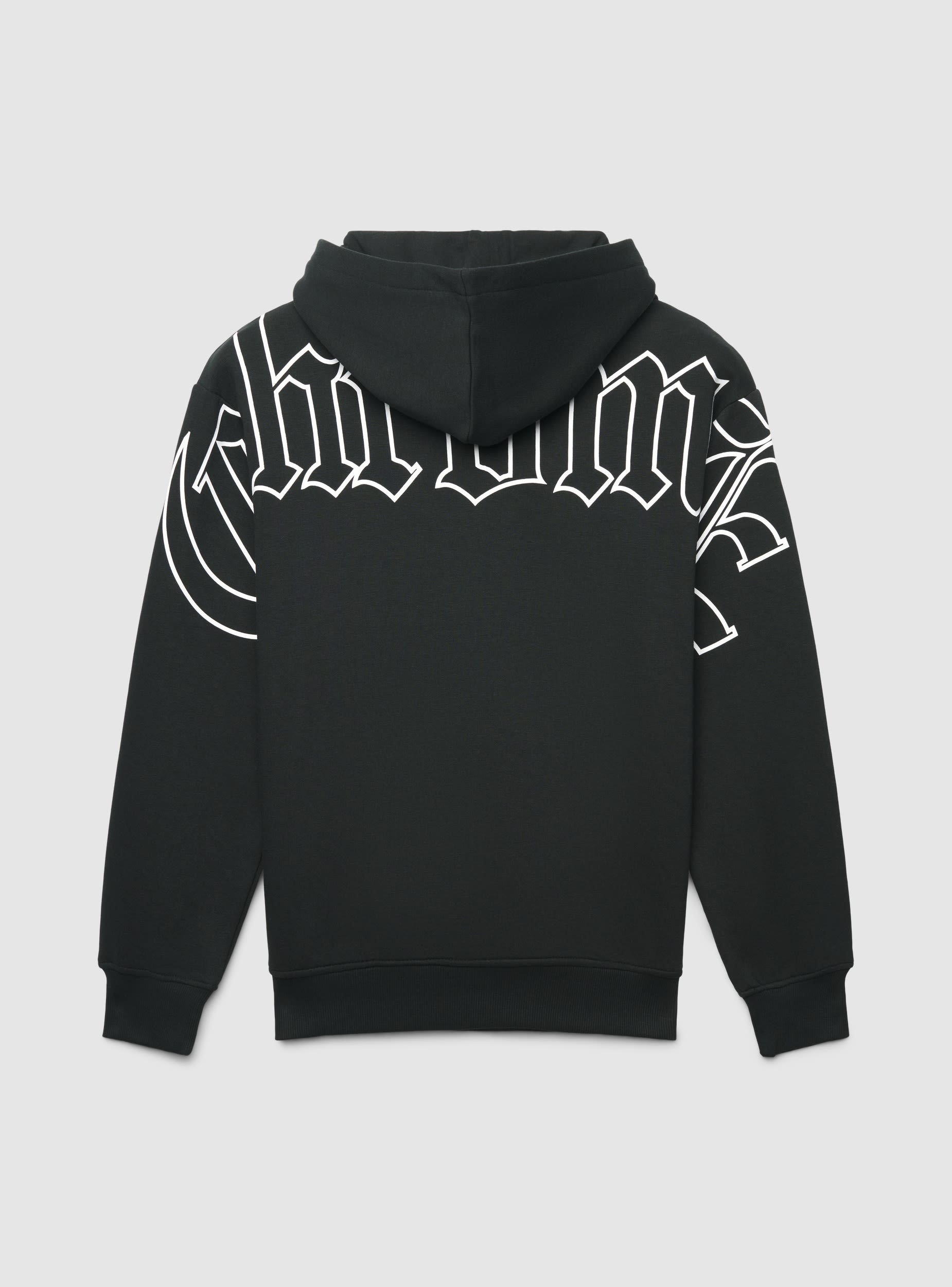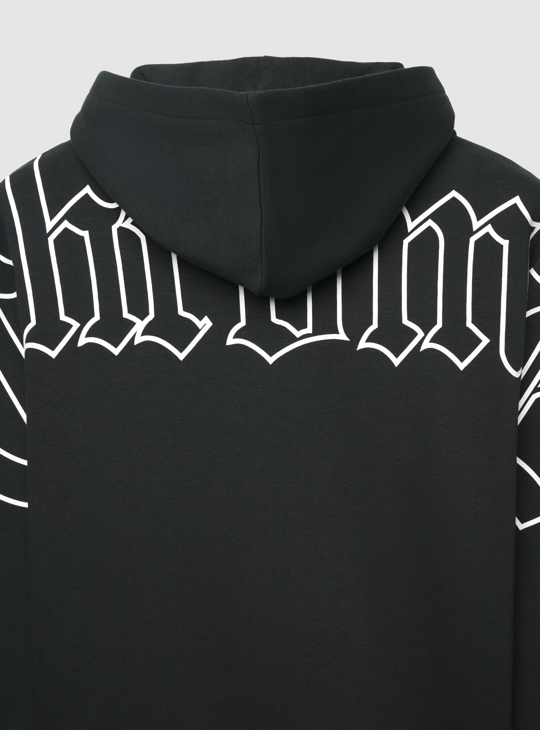Felpa pesante da bambino con cappuccio, ideale per un look casual e moderno. Presenta una stampa gotica sul fronte e sul retro, con dettagli grafici sulle maniche. Dotata di tasca a marsupio per praticità e comfort. Perfetta per abbinamenti con jeans o pantaloni sportivi, adatta a giornate di svago o attività all'aperto. Un capo versatile che unisce stile e funzionalità.